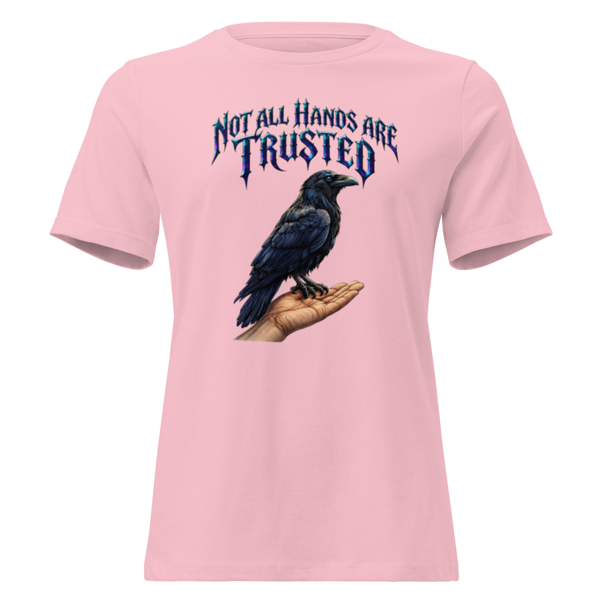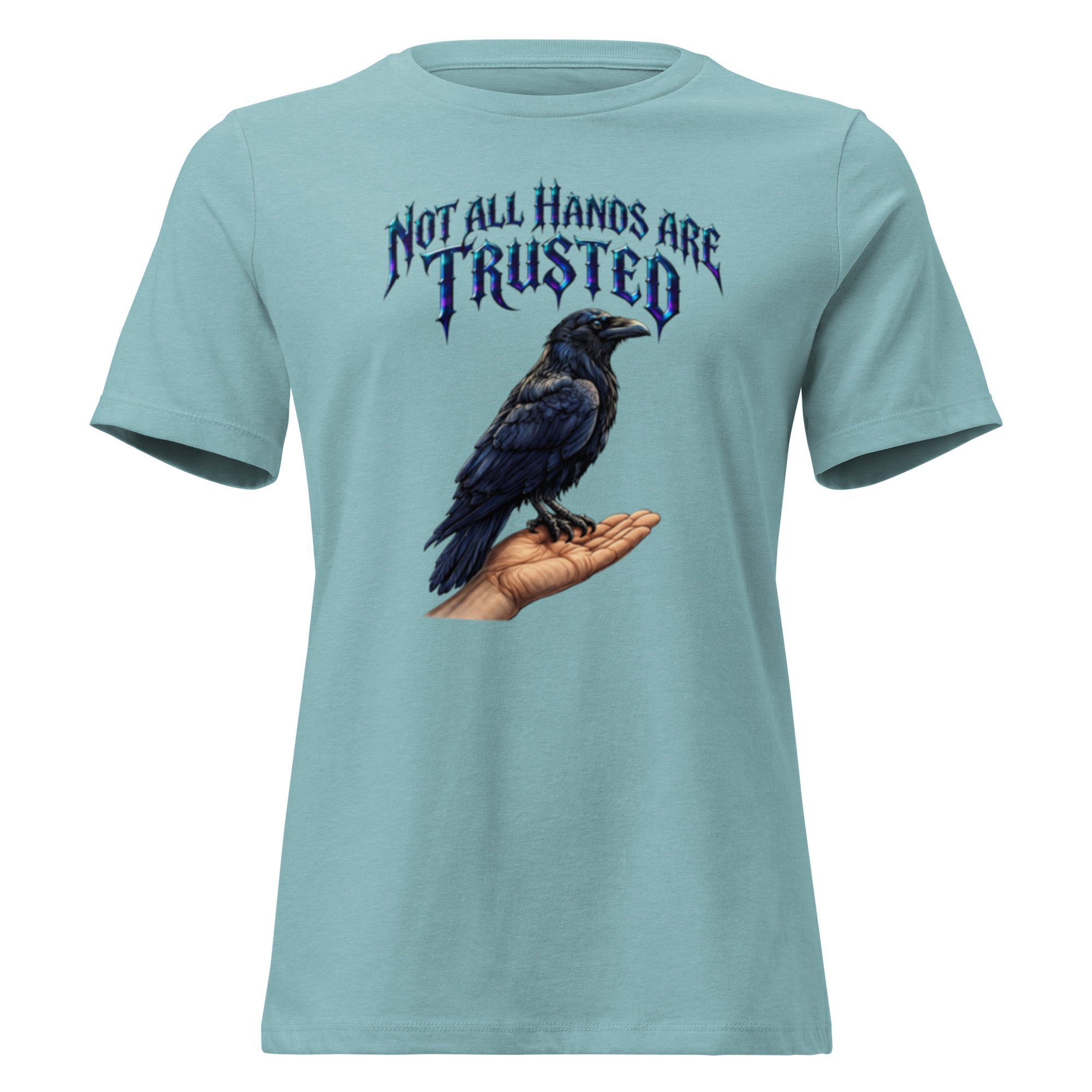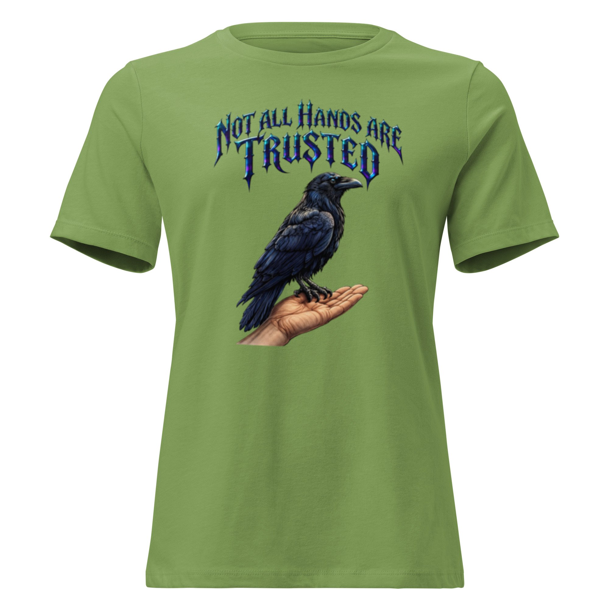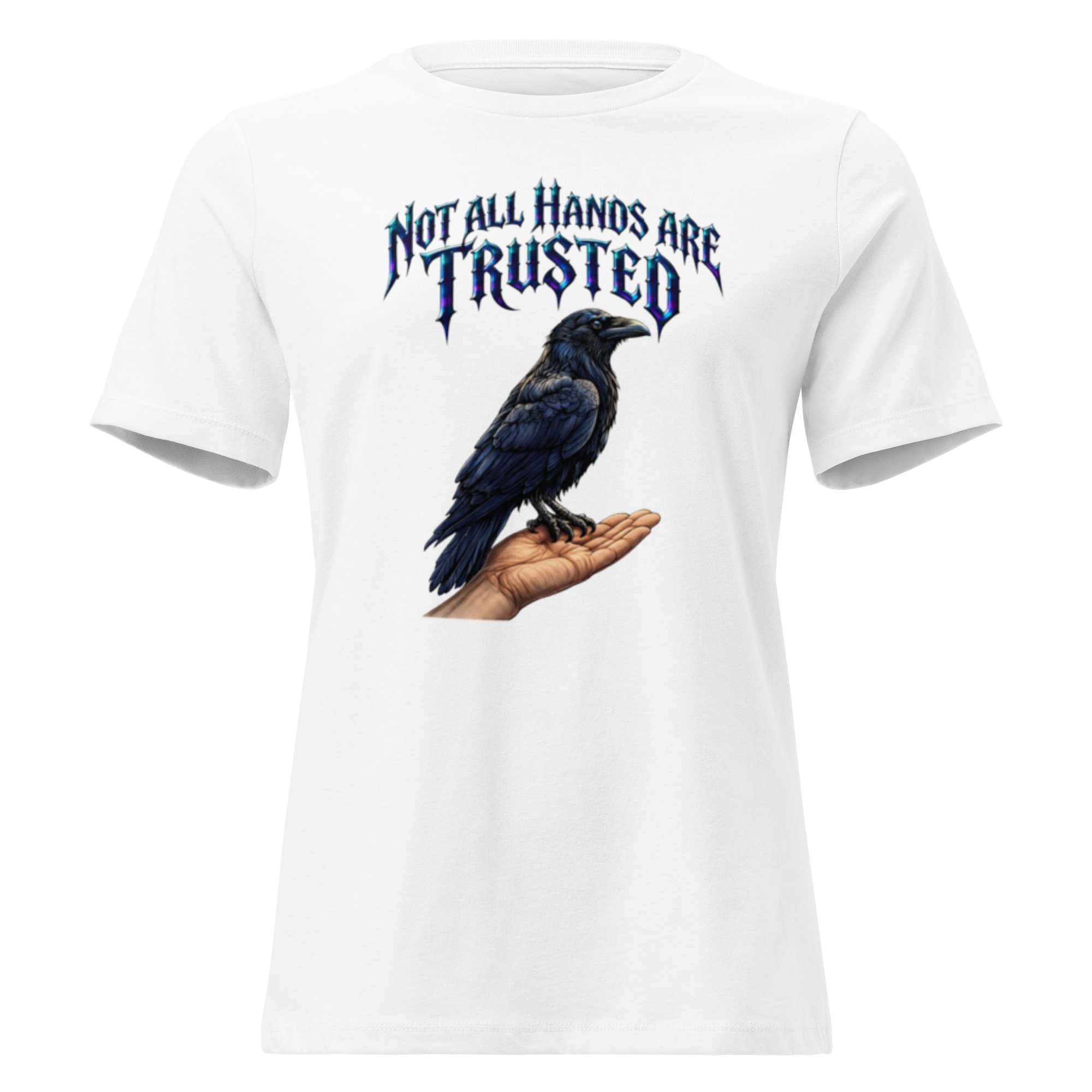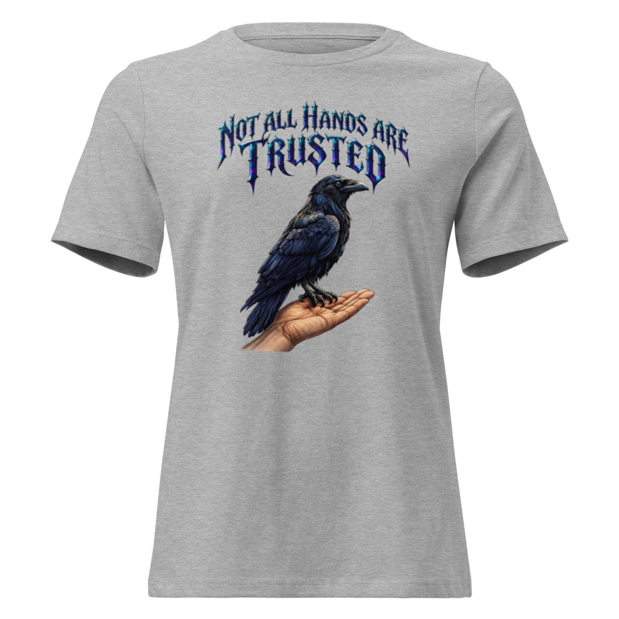Women's Relaxed T-Trust Your Instincts Raven Graphic Tee – Bold Gothic Raven & Hand Design