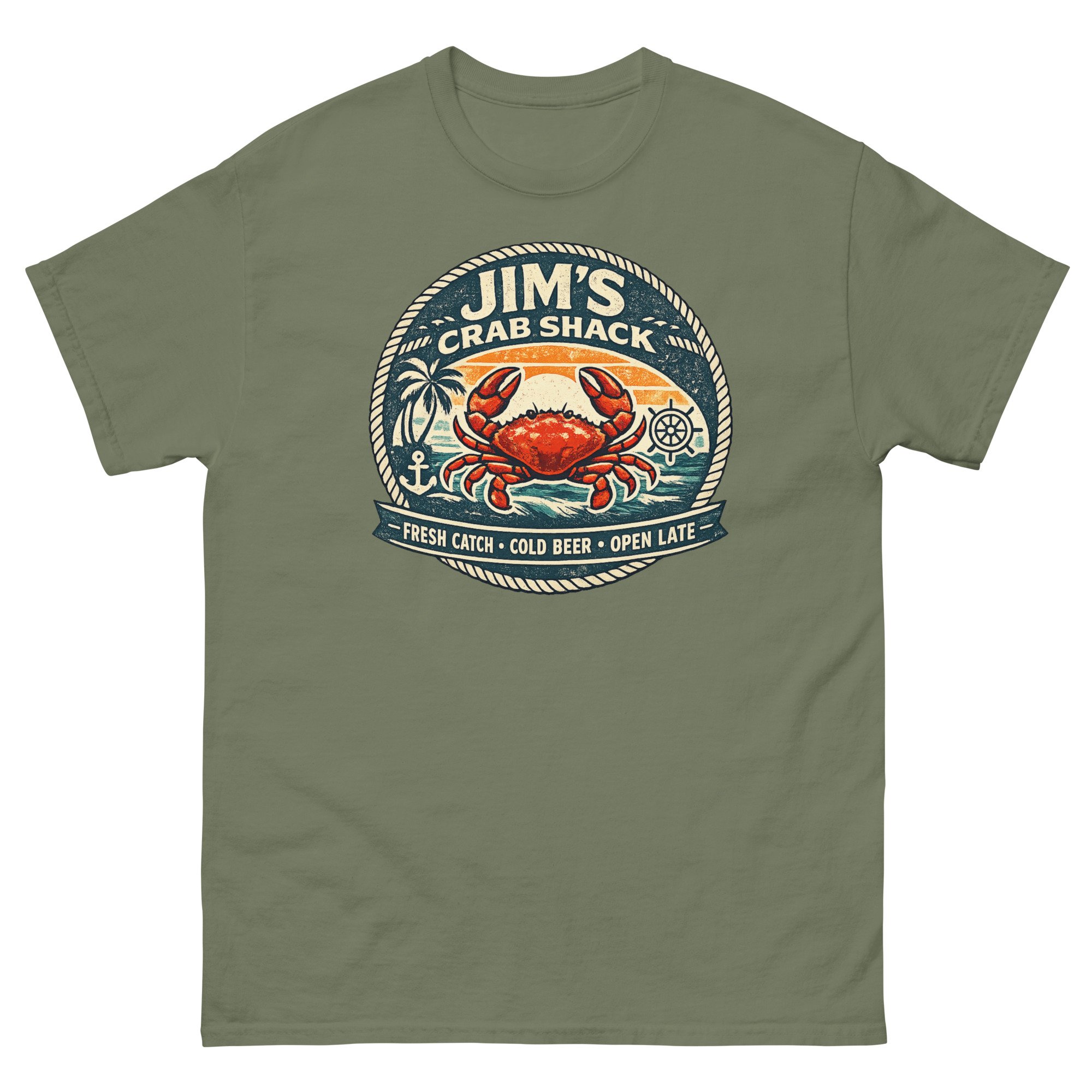 Jim's Crab Shack Unisex T-Shirt Vintage Coastal Seafood Graphic Tee