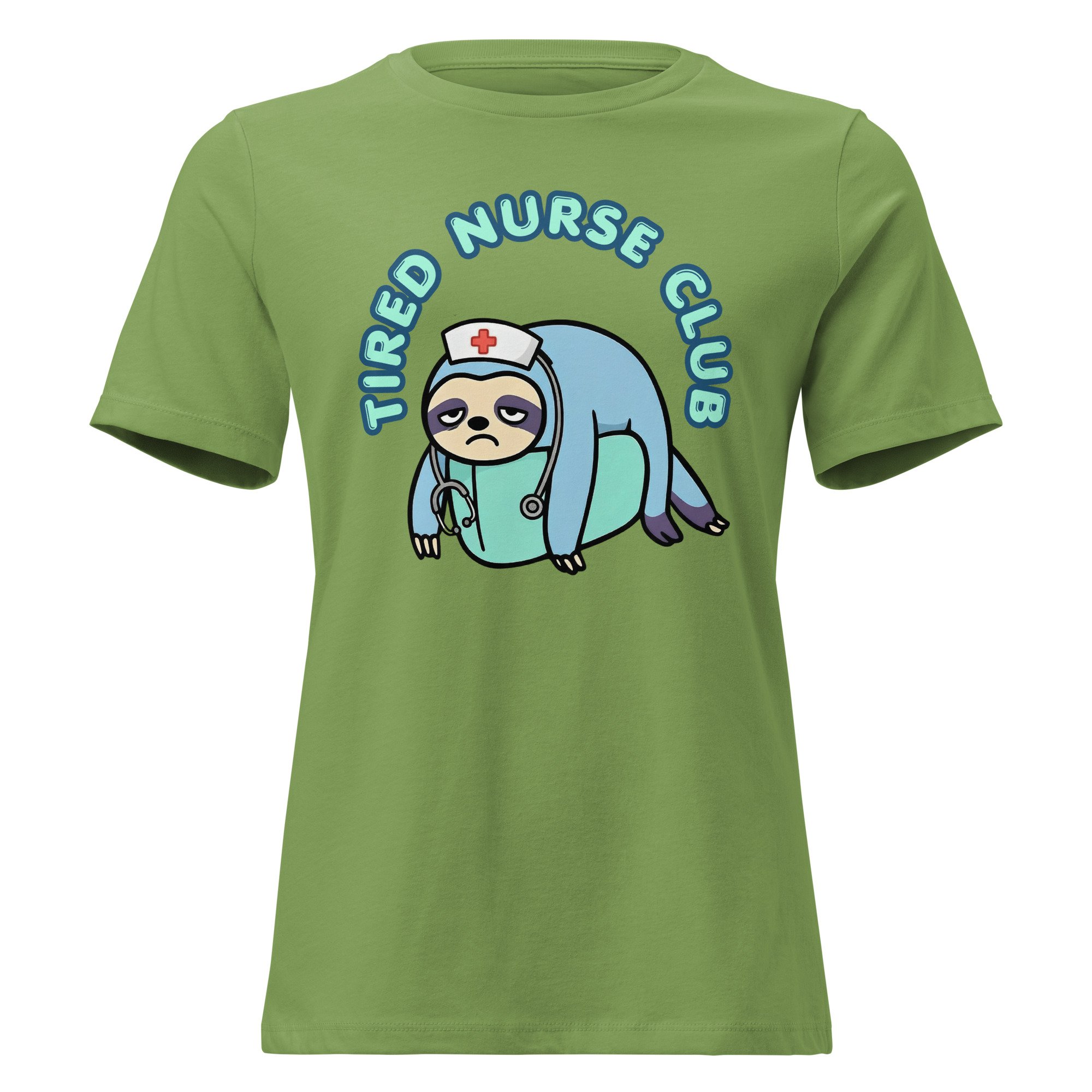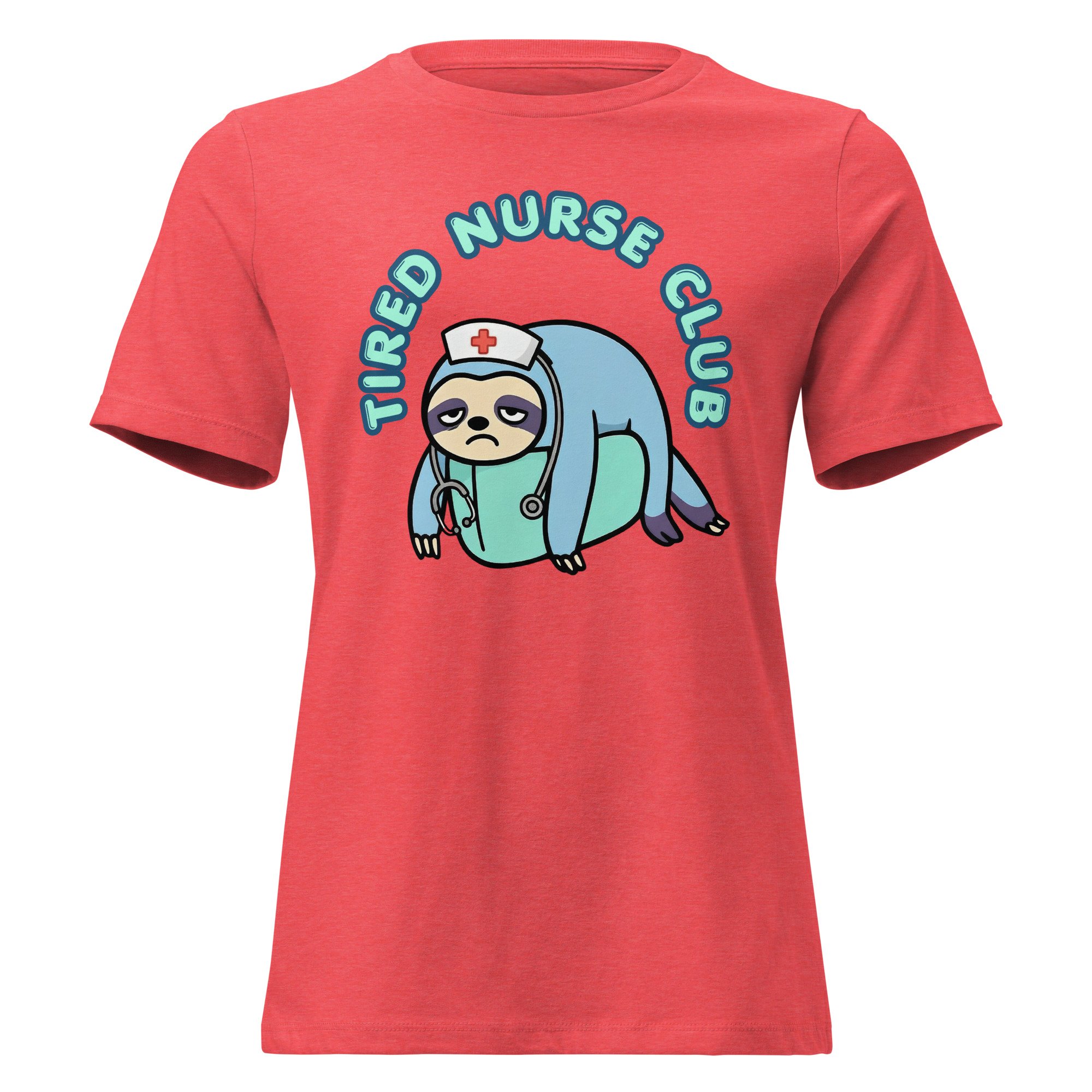 Tired Nurse Club Women’s T-Shirt – Funny Nurse Life Cute Nurse Humor Tee, Exhausted Sloth Tee