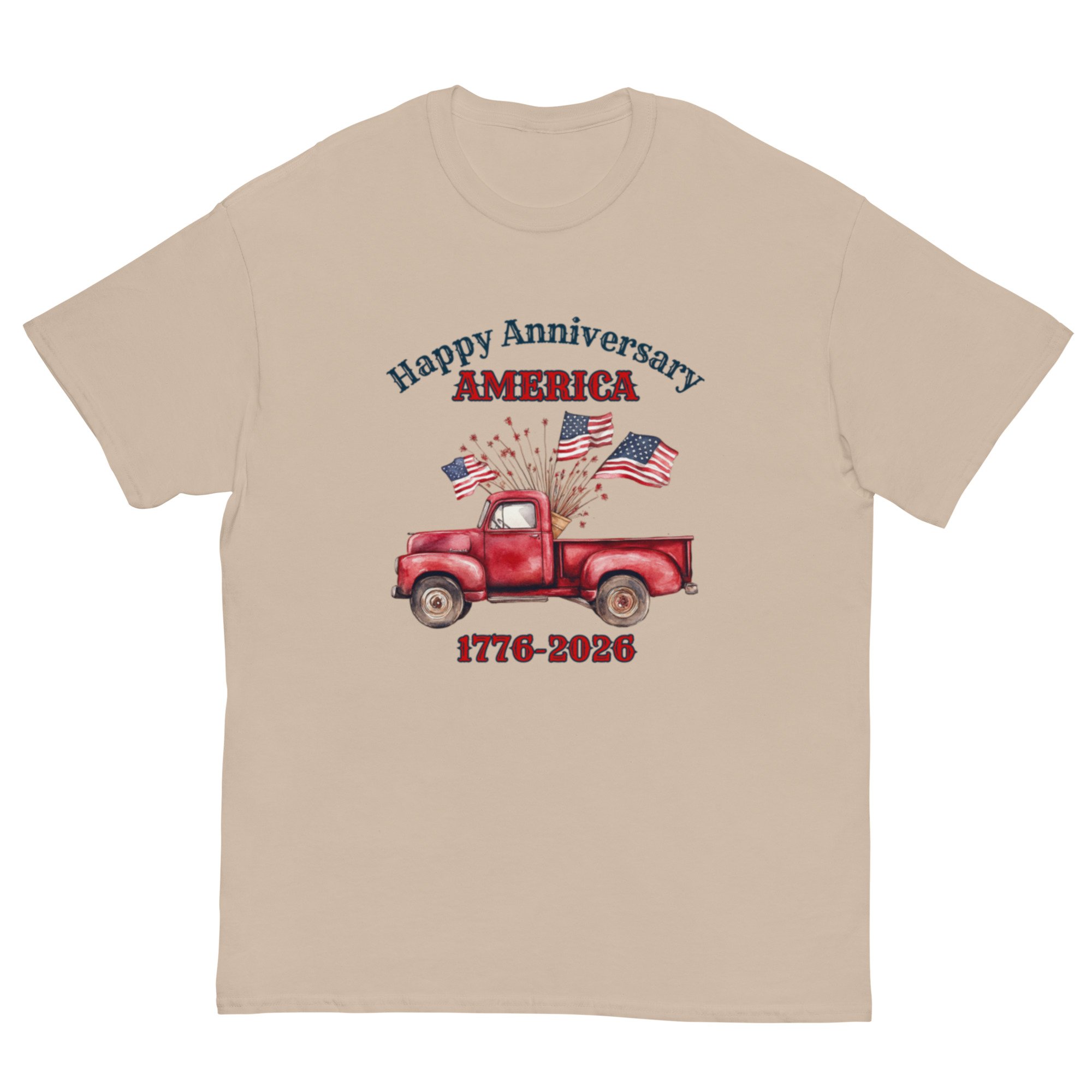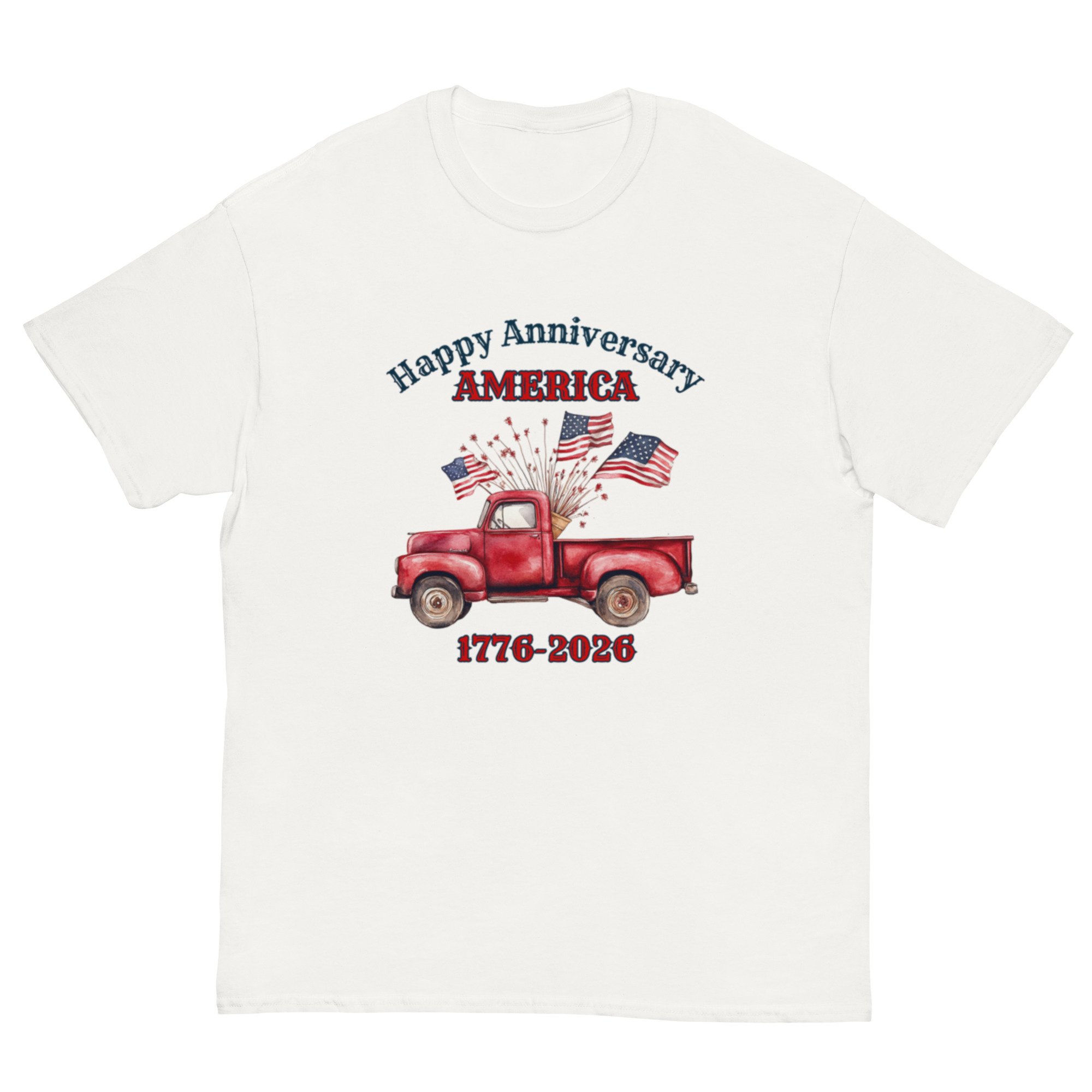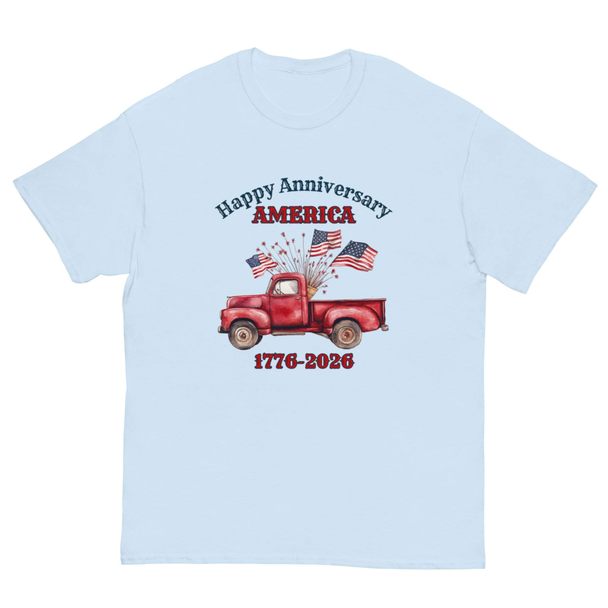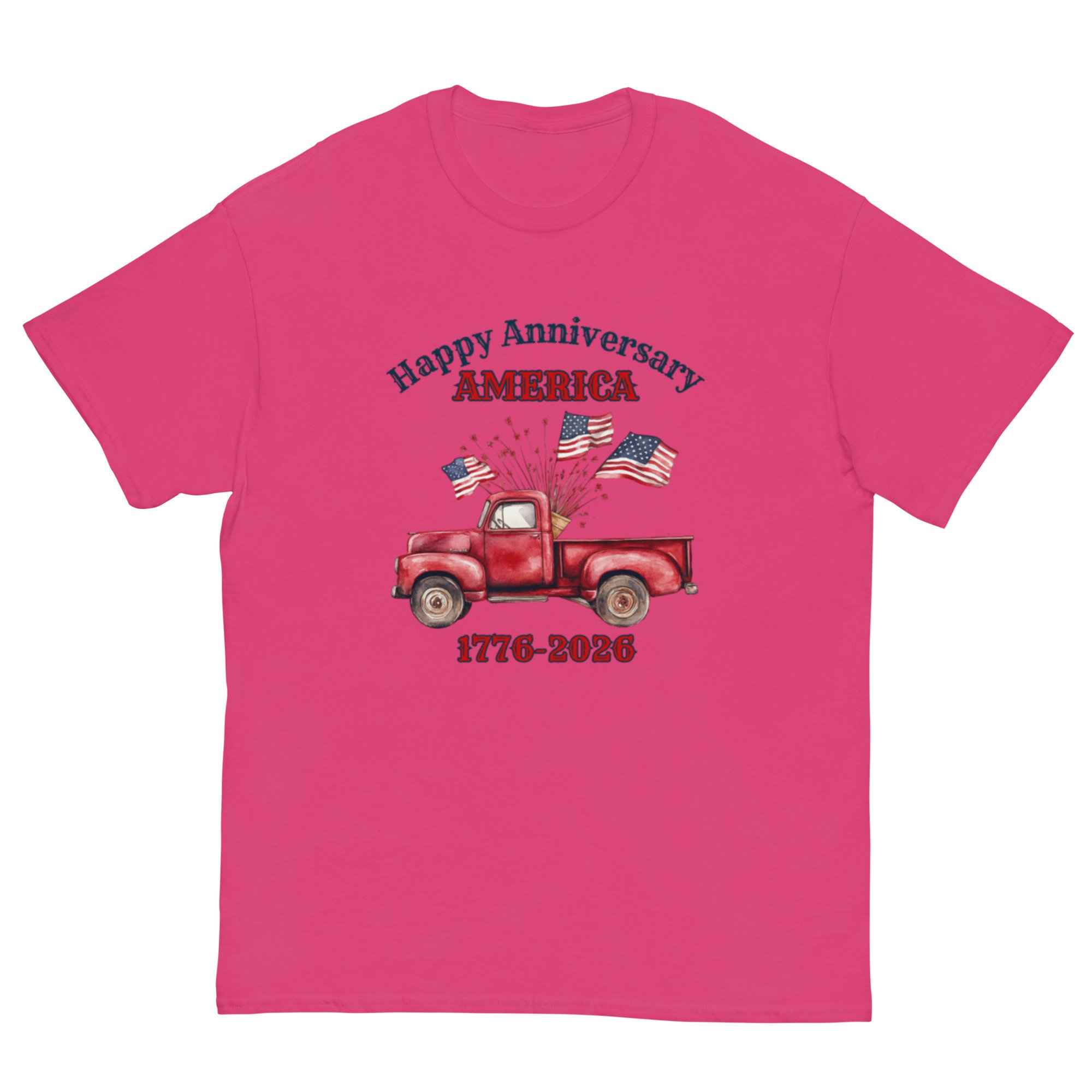 Unisex classic tee, Happy 250th Anniversary America 1776–2026 Patriotic Vintage Truck Tee Shirt