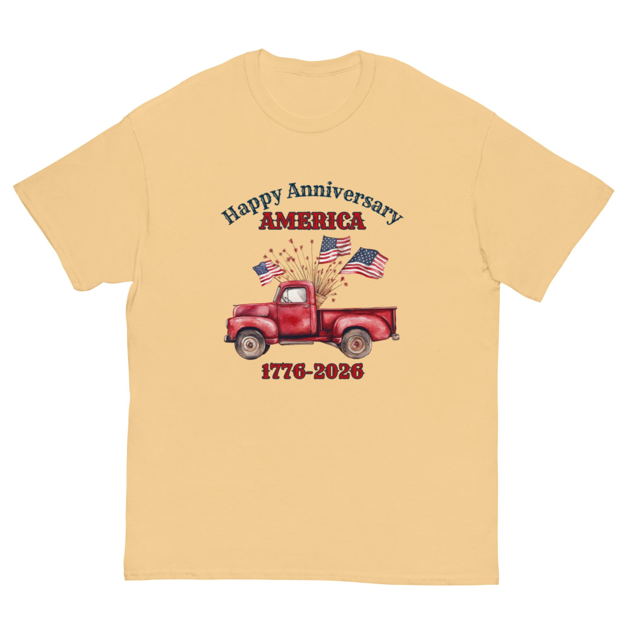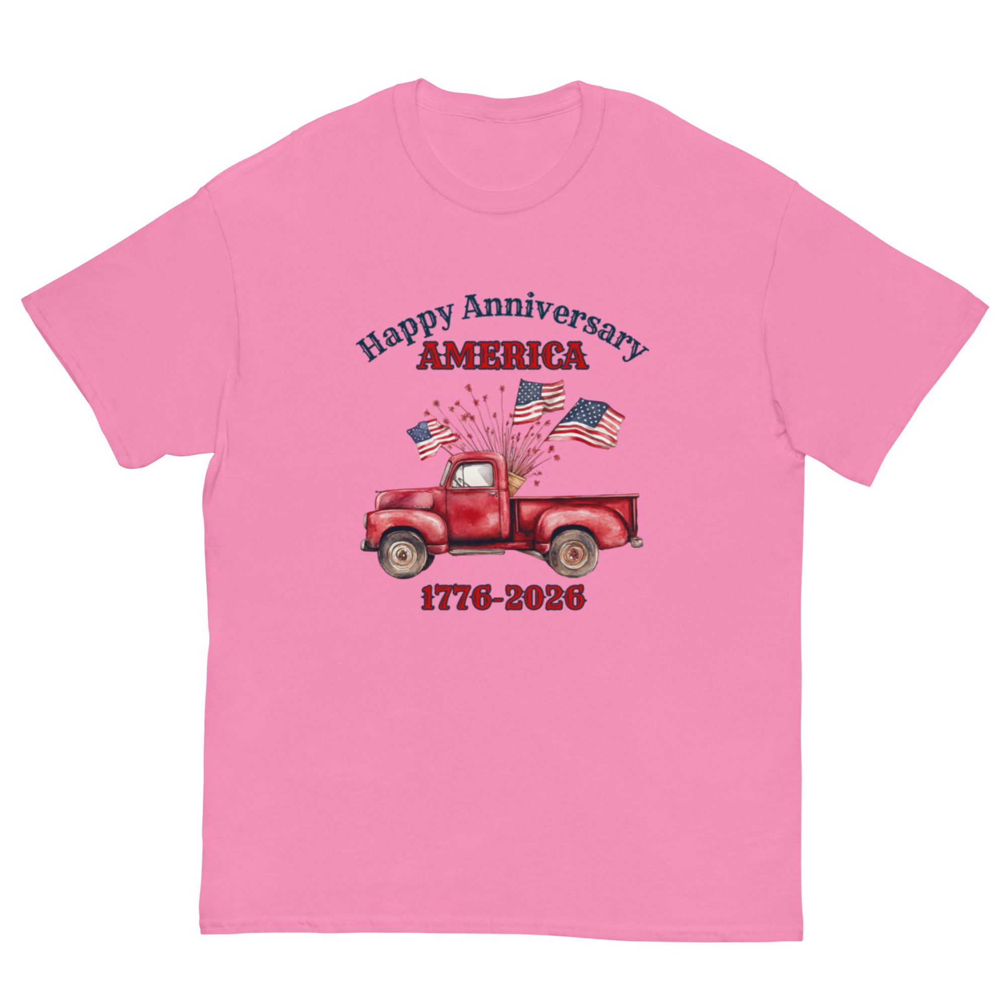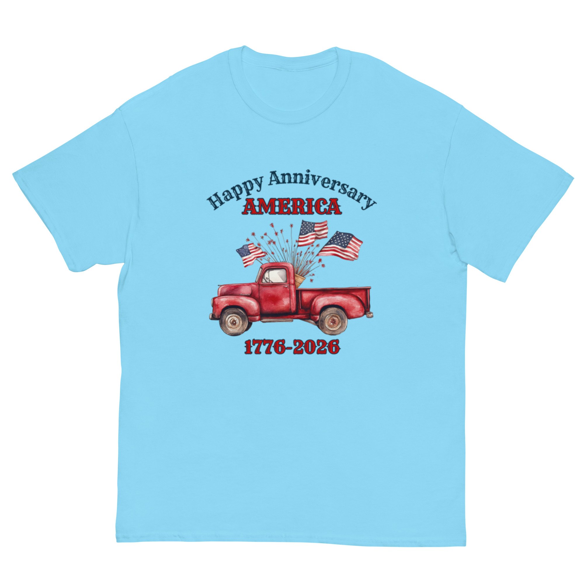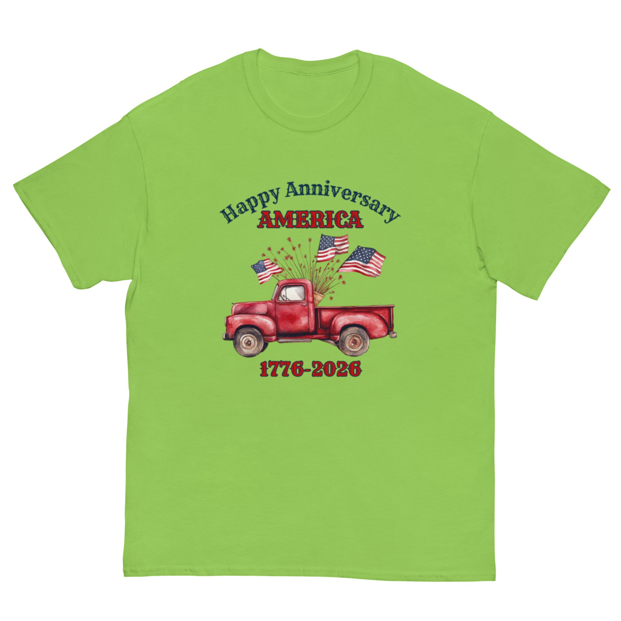 Unisex classic tee, Happy 250th Anniversary America 1776–2026 Patriotic Vintage Truck Tee Shirt