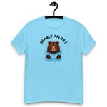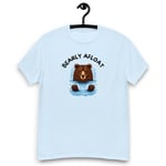 Bearly Afloat features a relaxed bear floating in the water with a playful pun that brings humor to laid-back outdoor moments. This graphic tee captures that carefree, easygoing feeling of just drifting through the day.