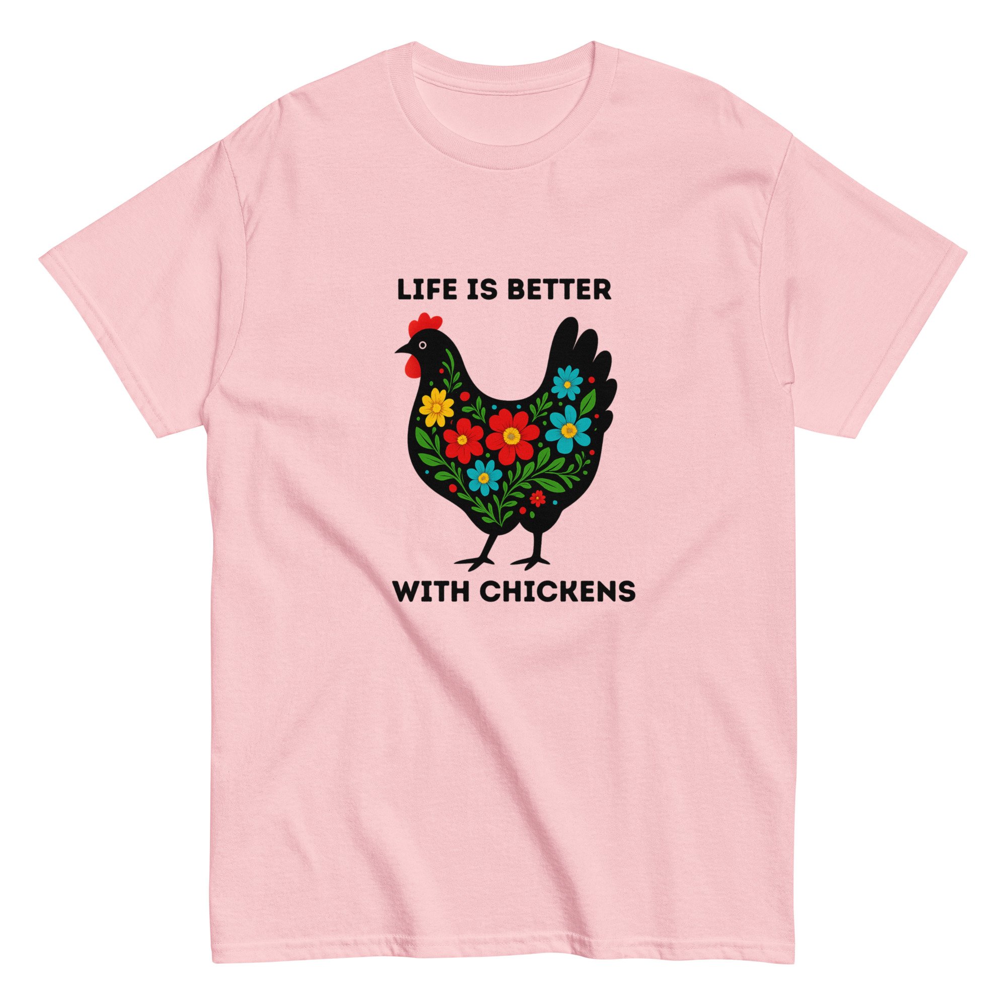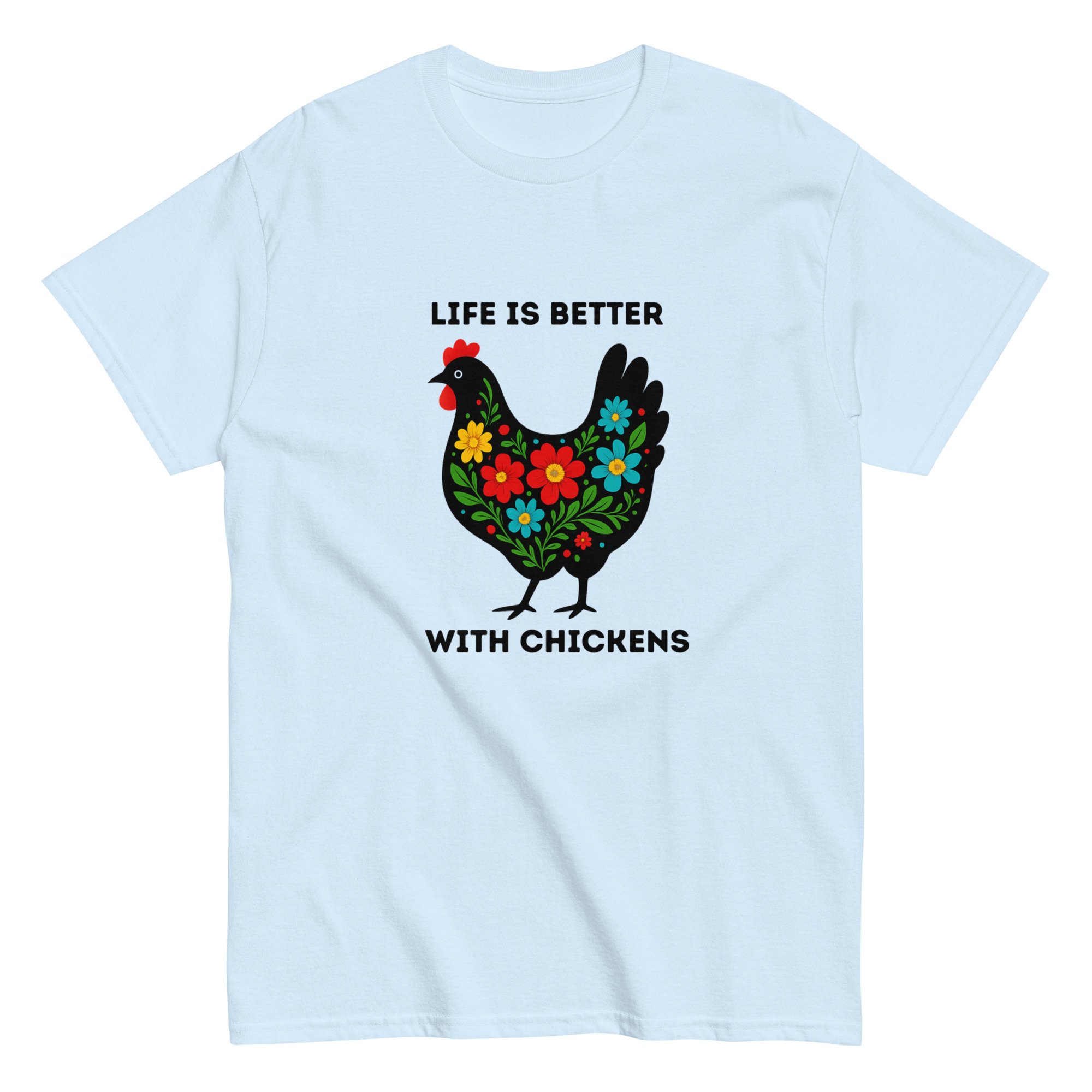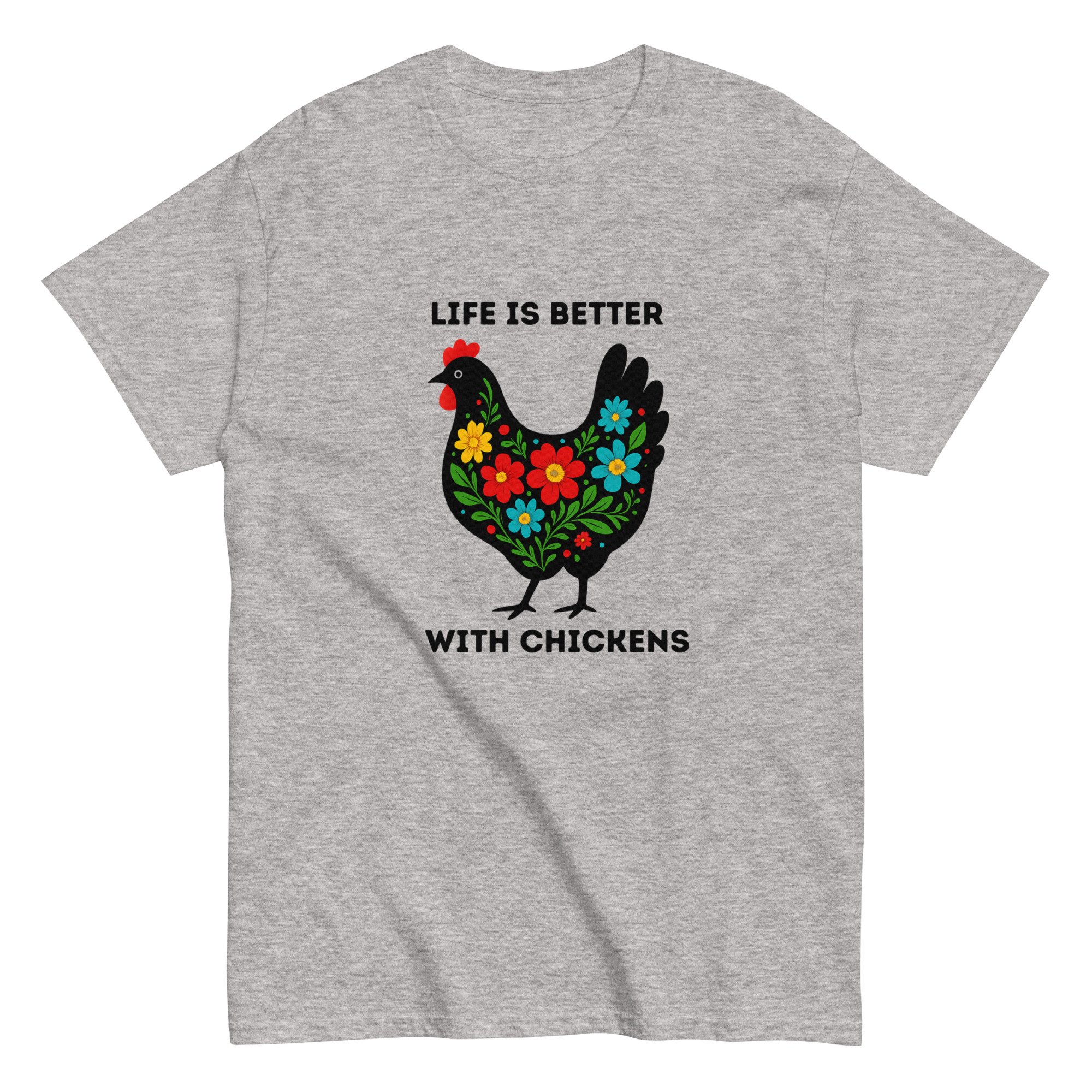 Unisex classic tee, Life Is Better With Chickens T-Shirt | Farm Life Floral Chicken Graphic Tee
