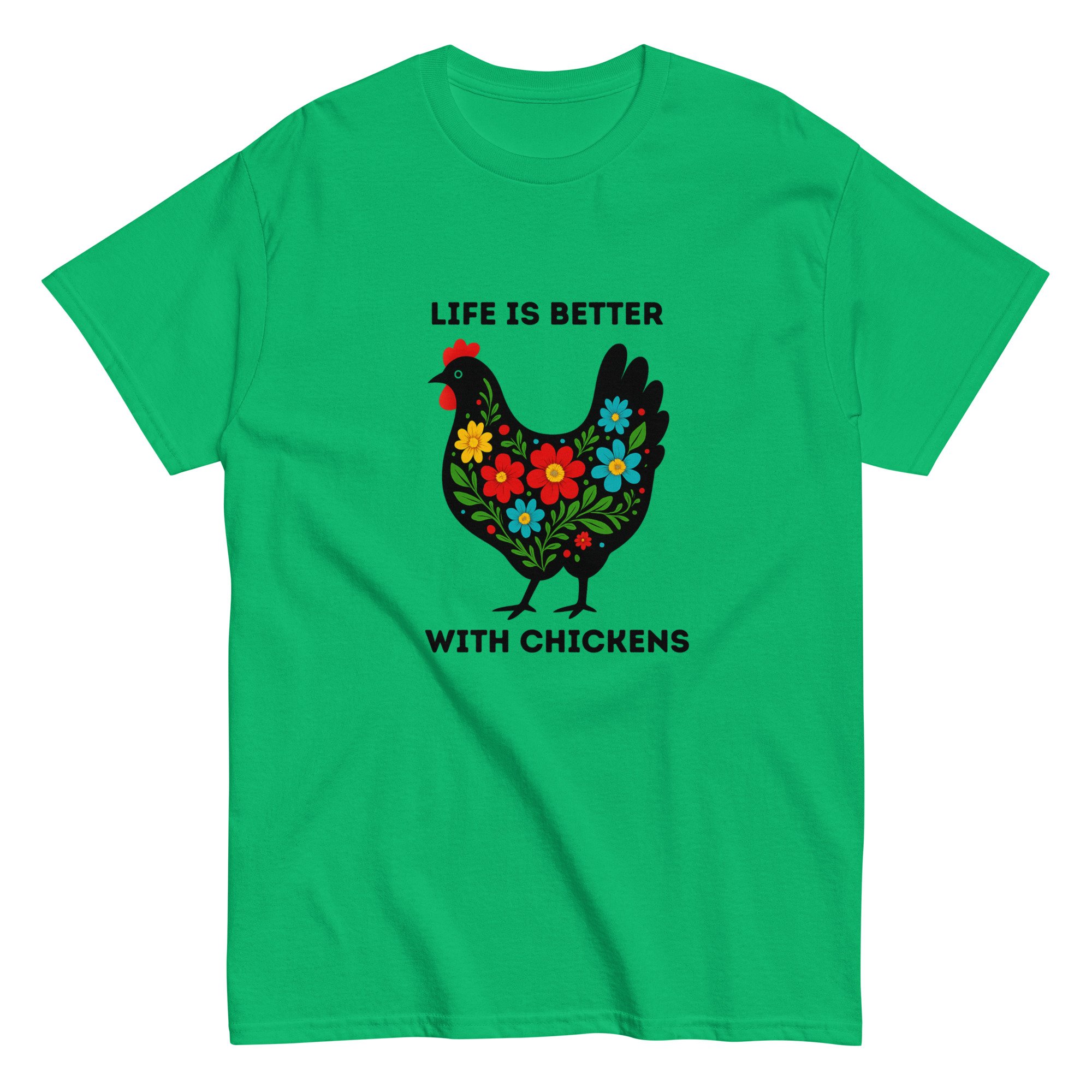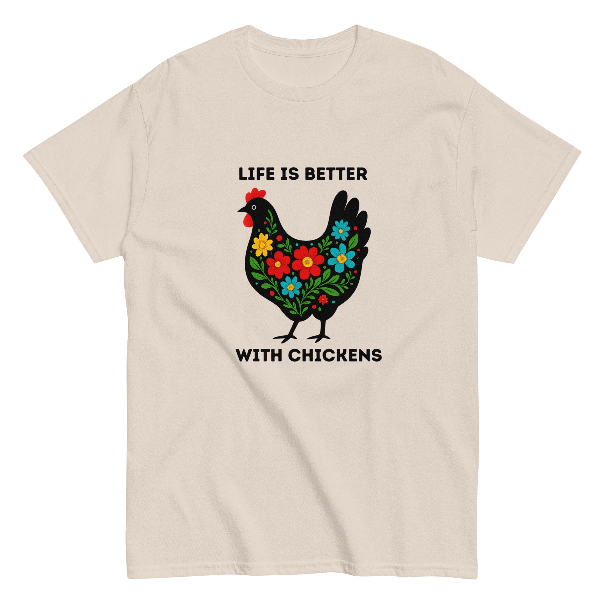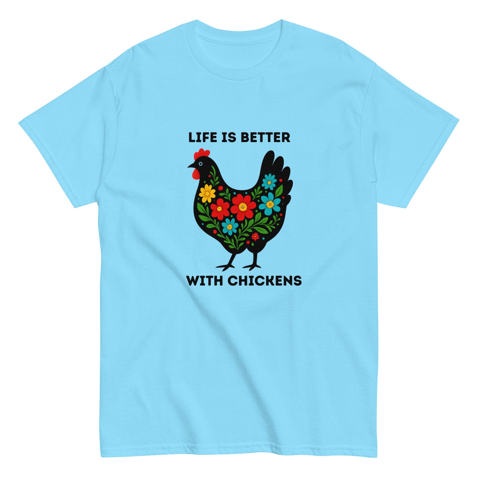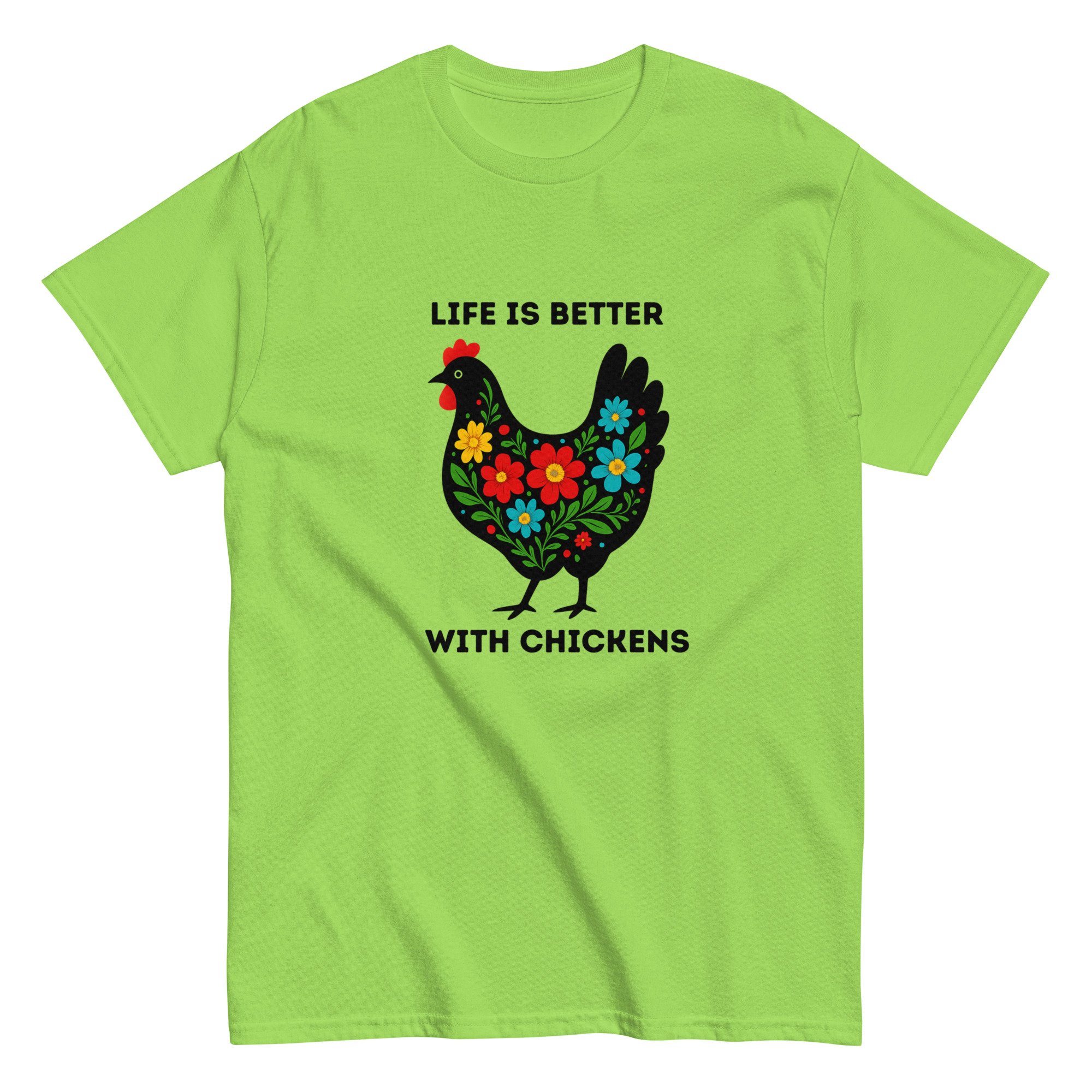Unisex classic tee, Life Is Better With Chickens T-Shirt | Farm Life Floral Chicken Graphic Tee