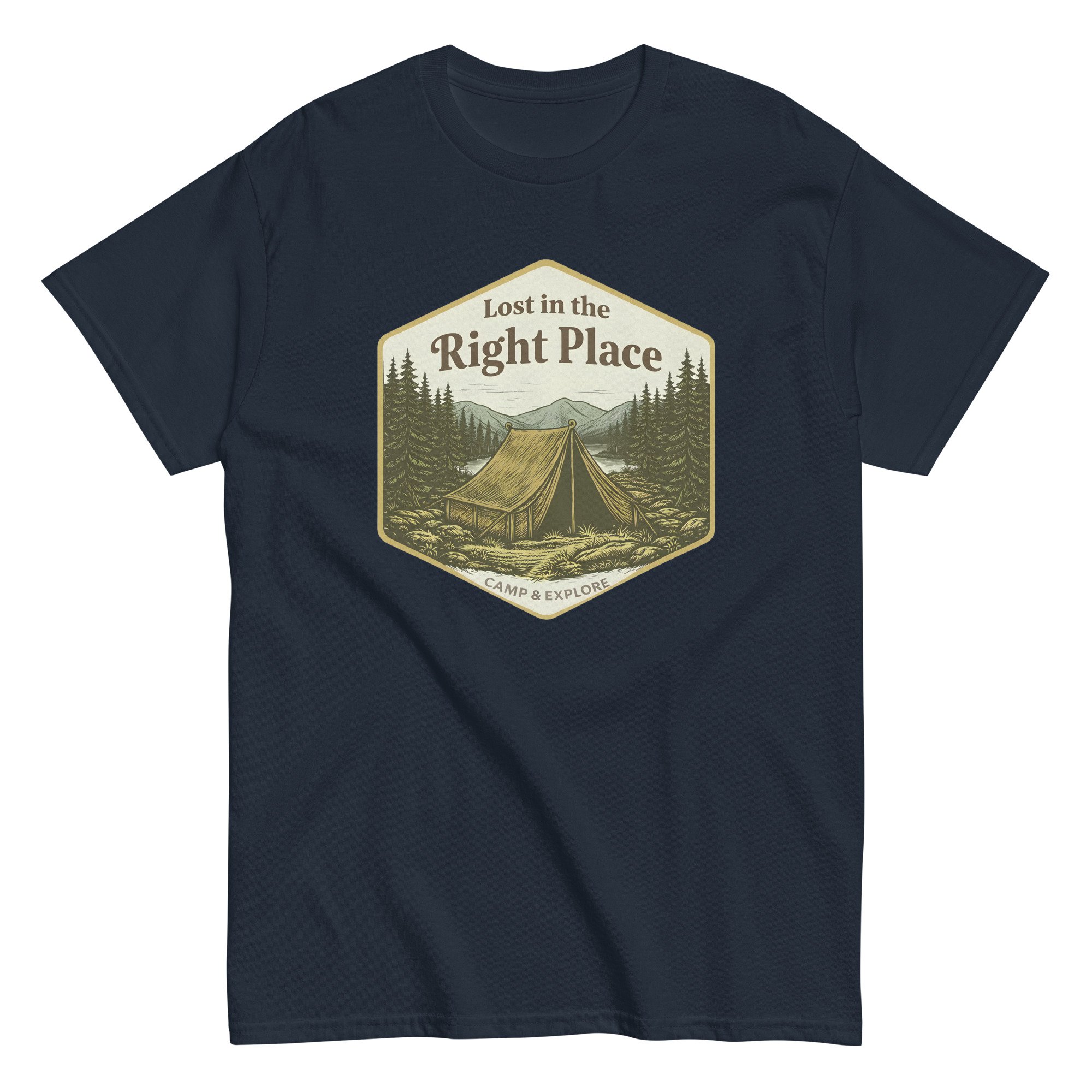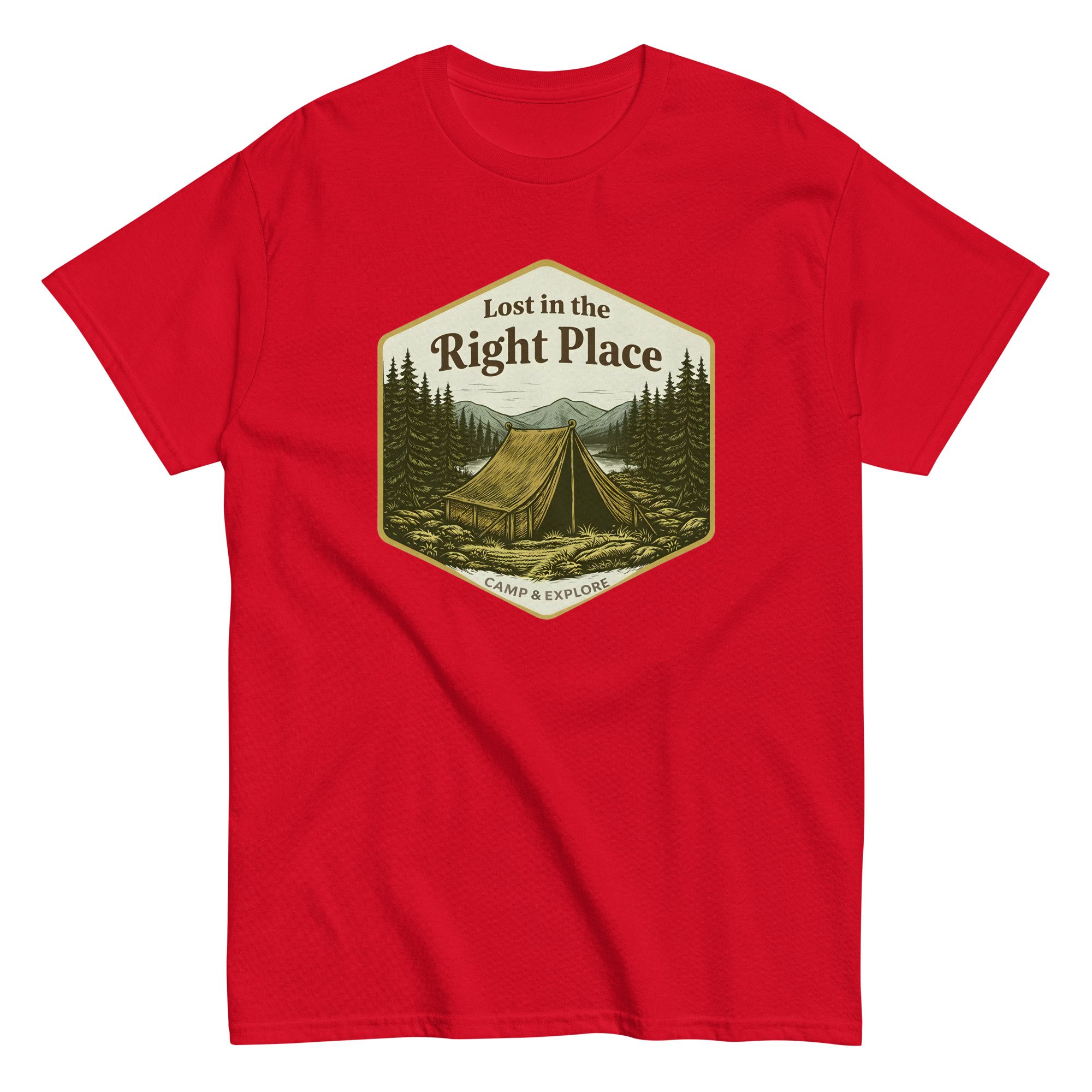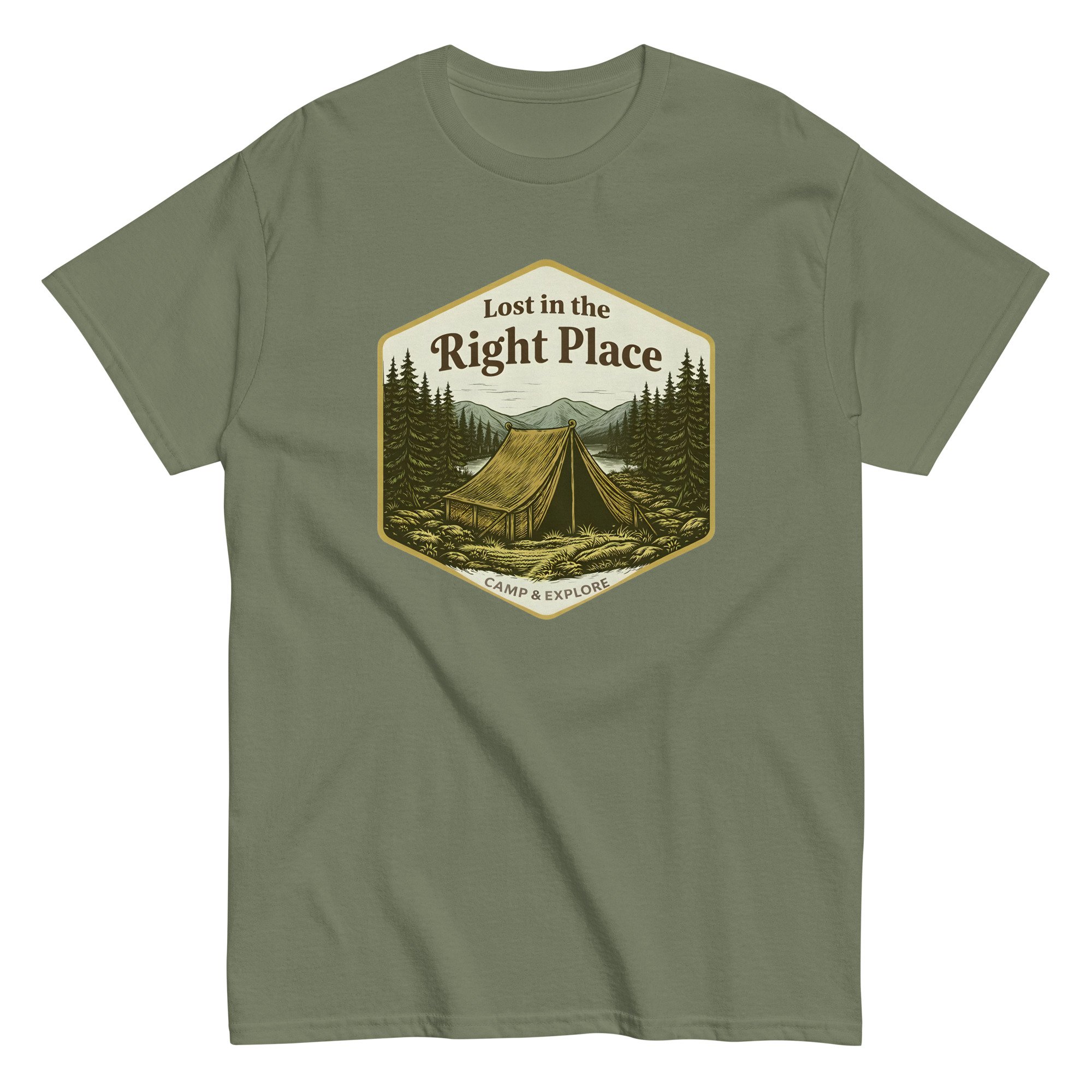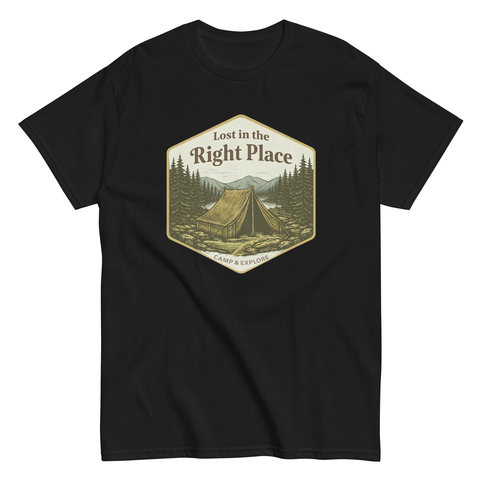 Unisex classic tee, Lost in the Right Place T-Shirt | Camping Explore Outdoor Graphic Tee