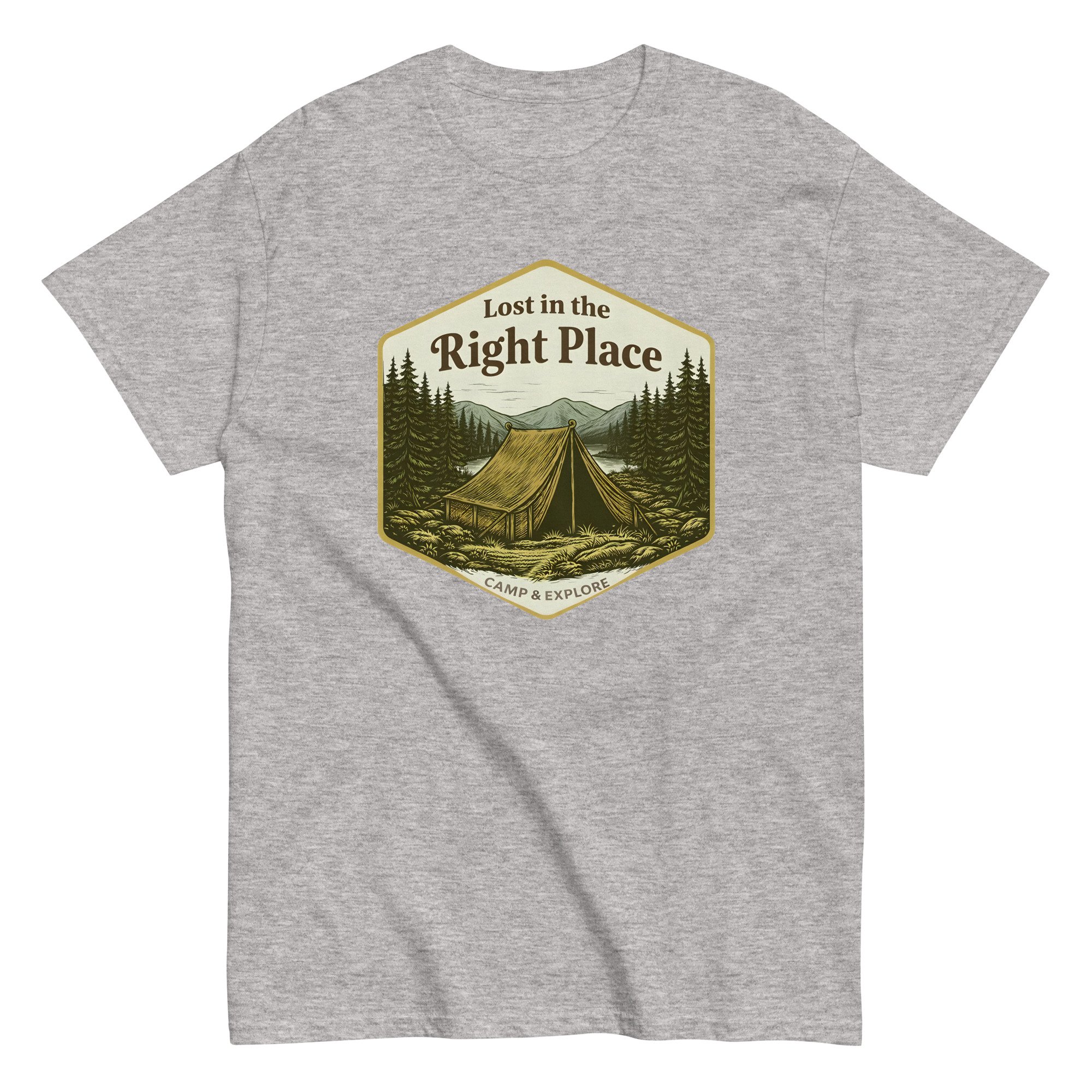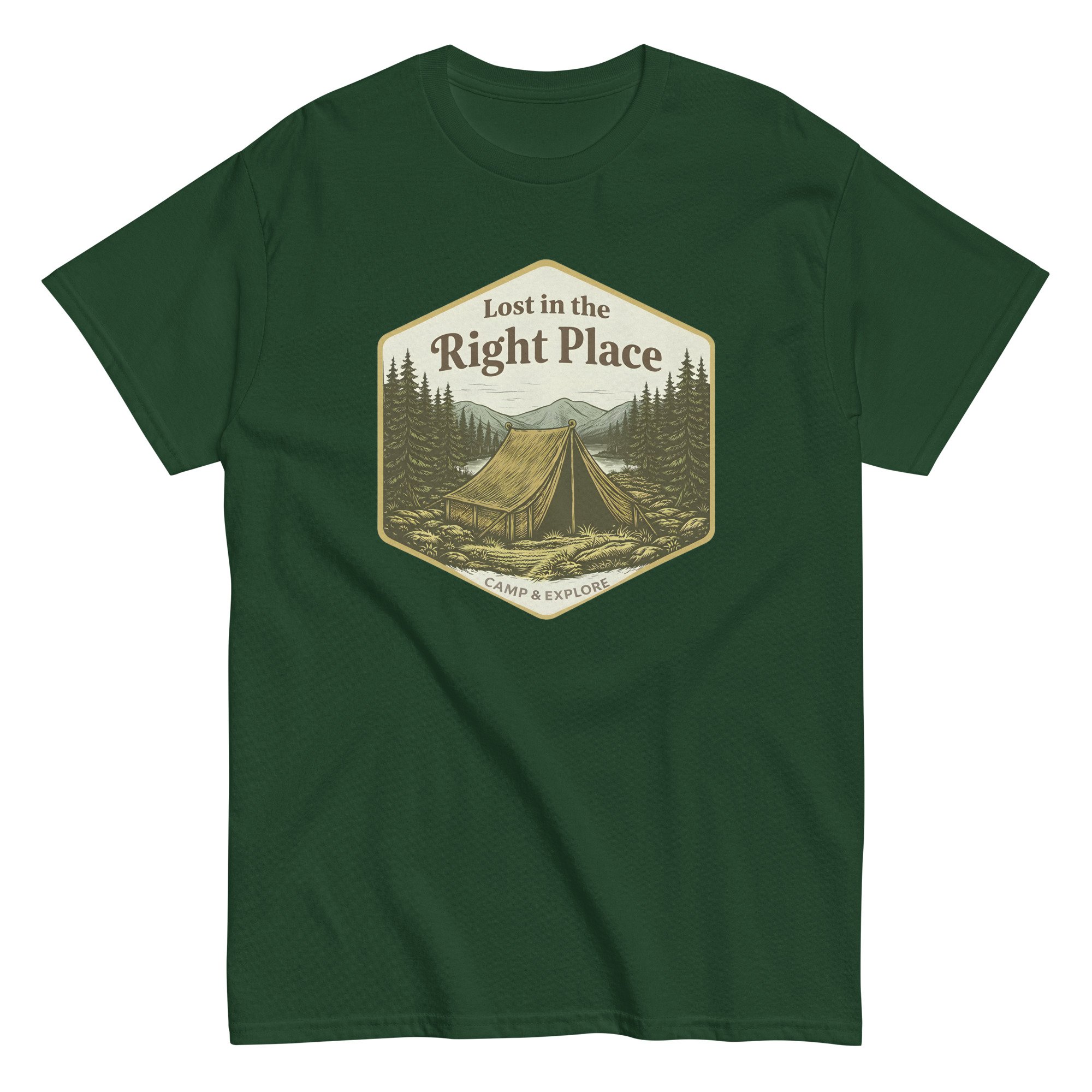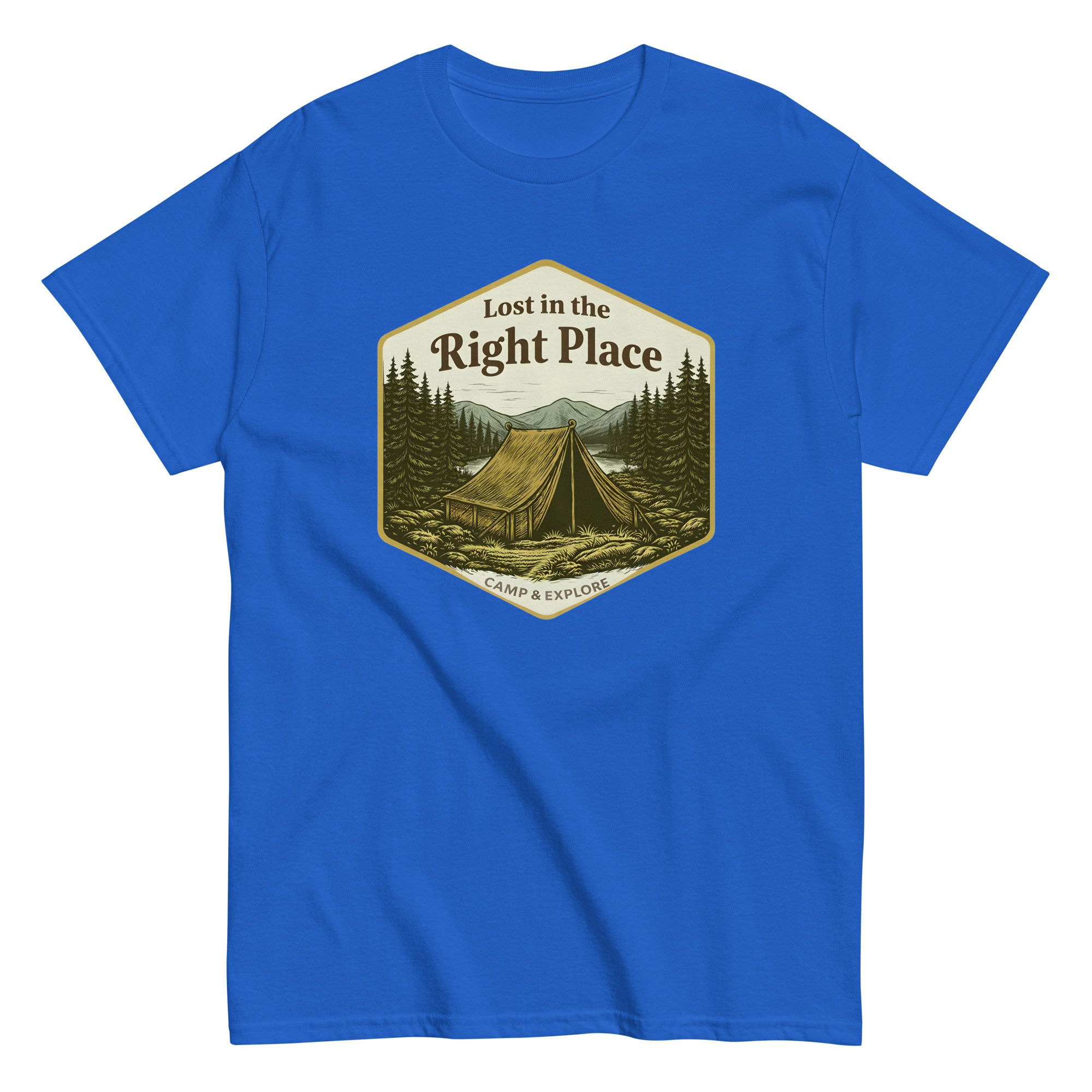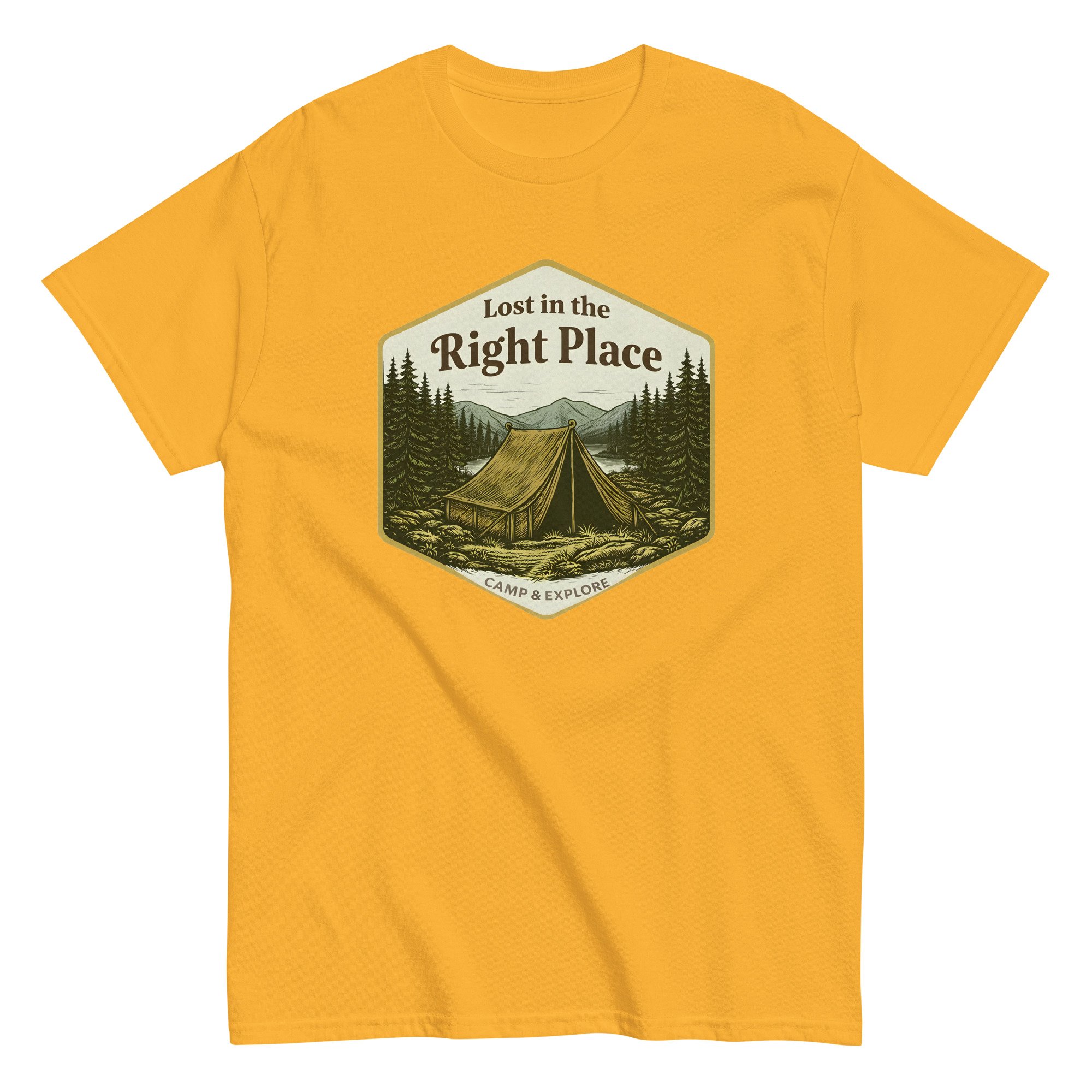 Unisex classic tee, Lost in the Right Place T-Shirt | Camping Explore Outdoor Graphic Tee