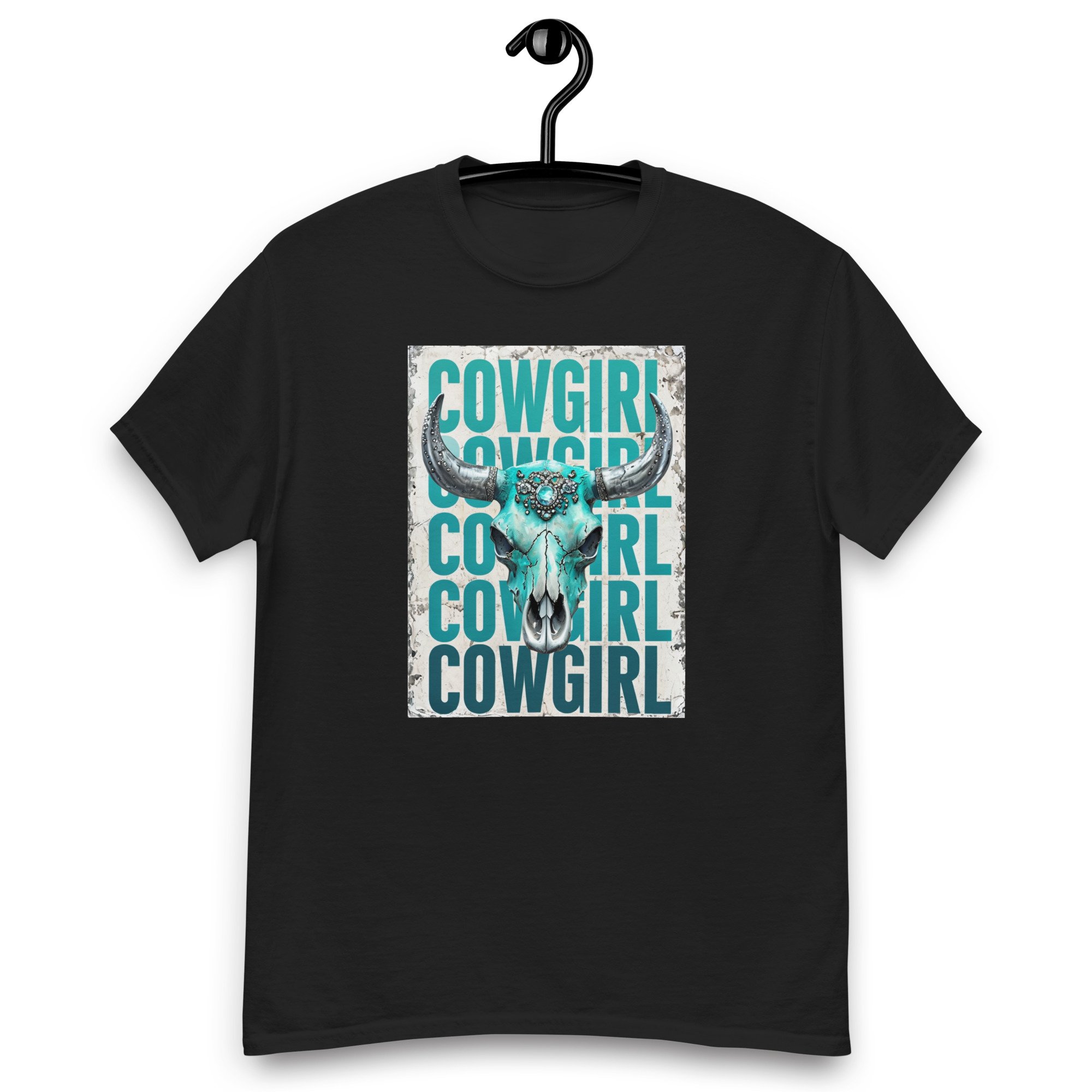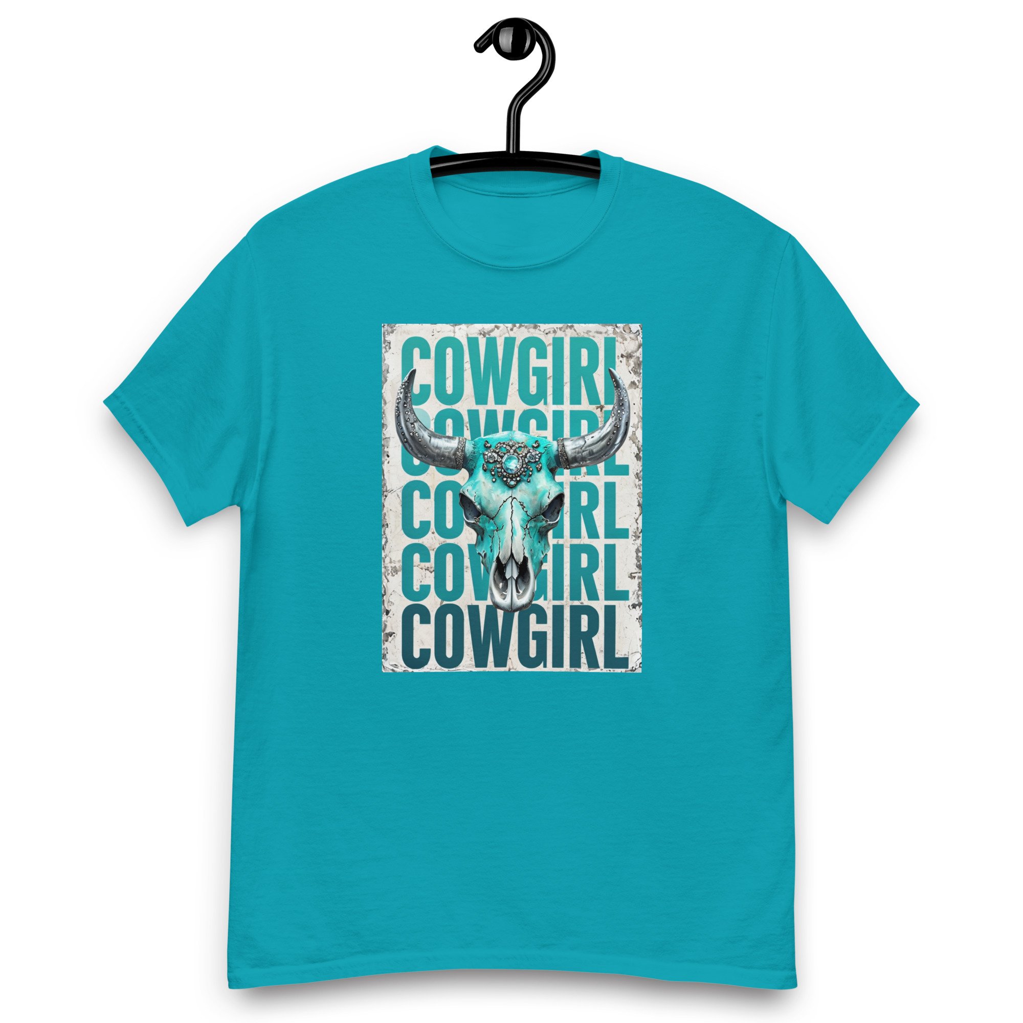 Cowgirl Western Skull T-Shirt – Turquoise Longhorn Graphic Tee