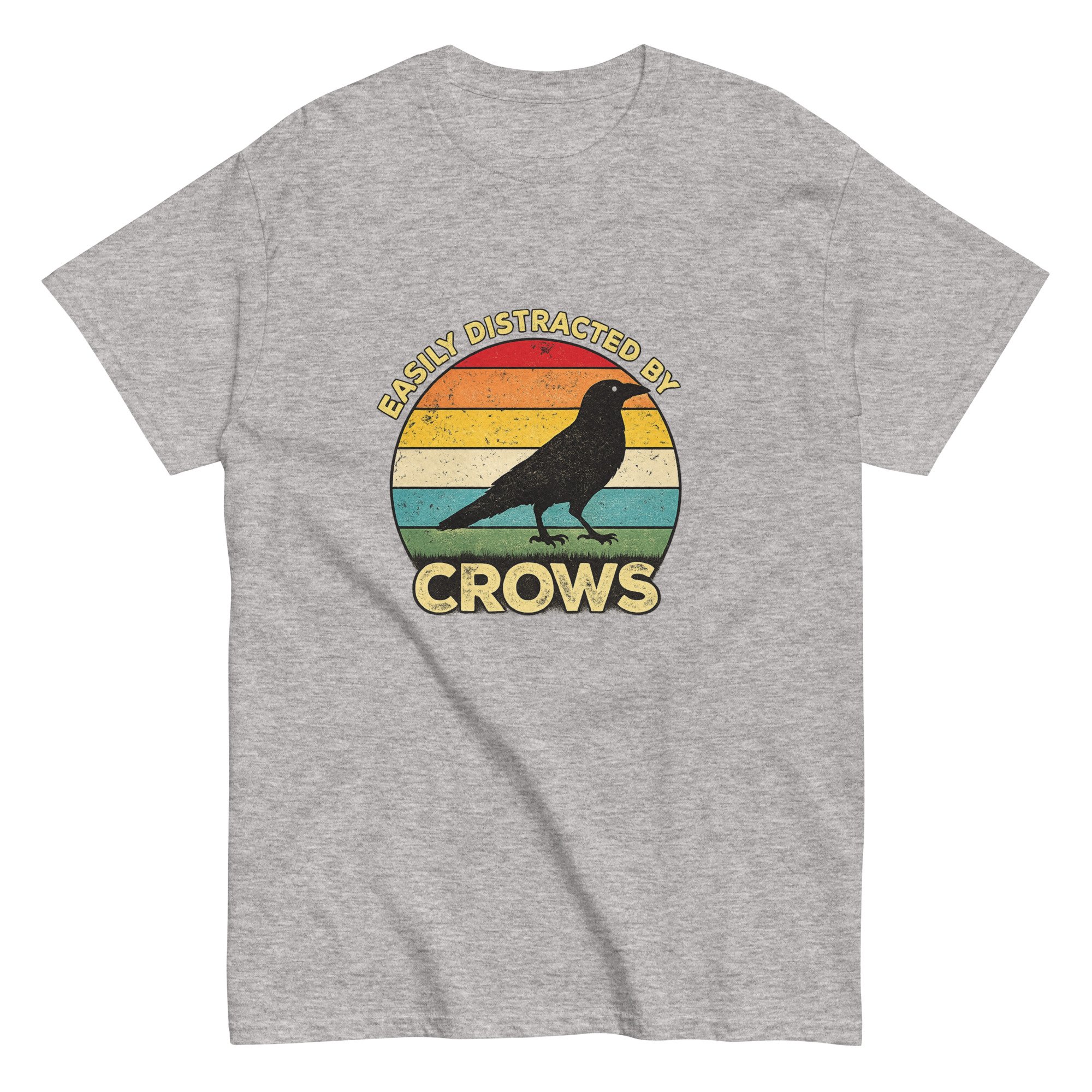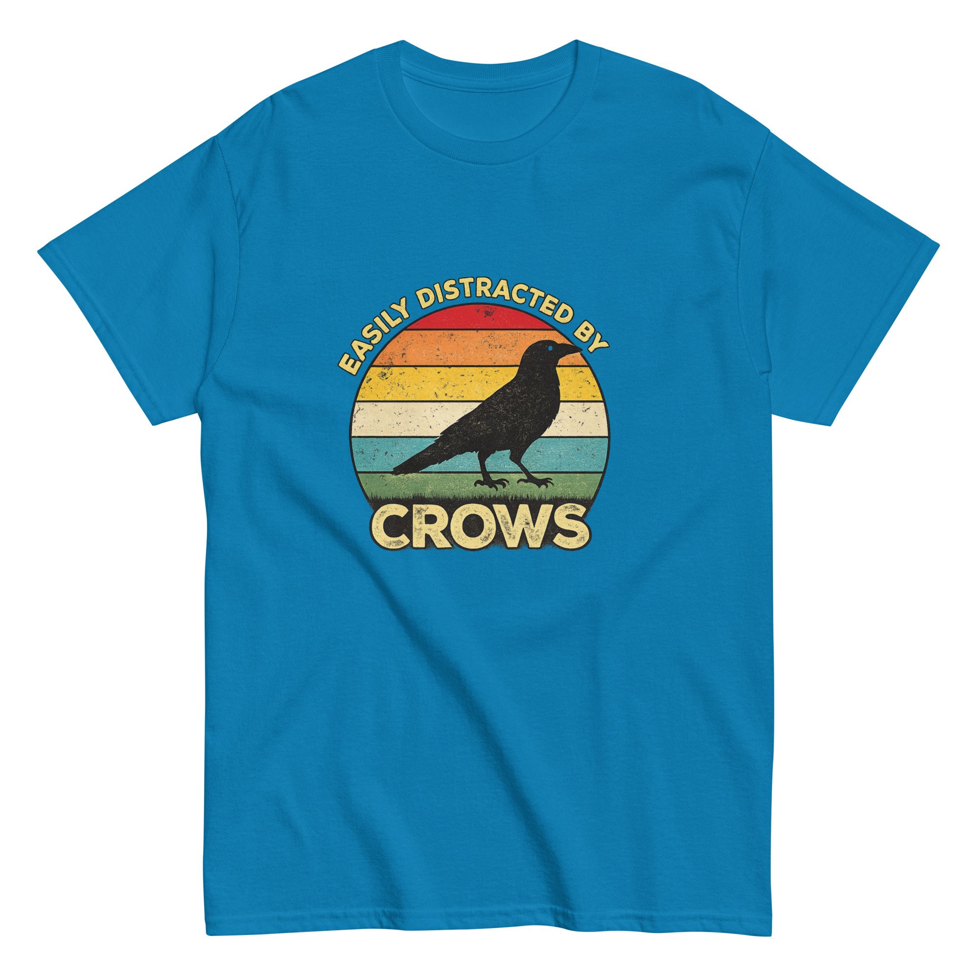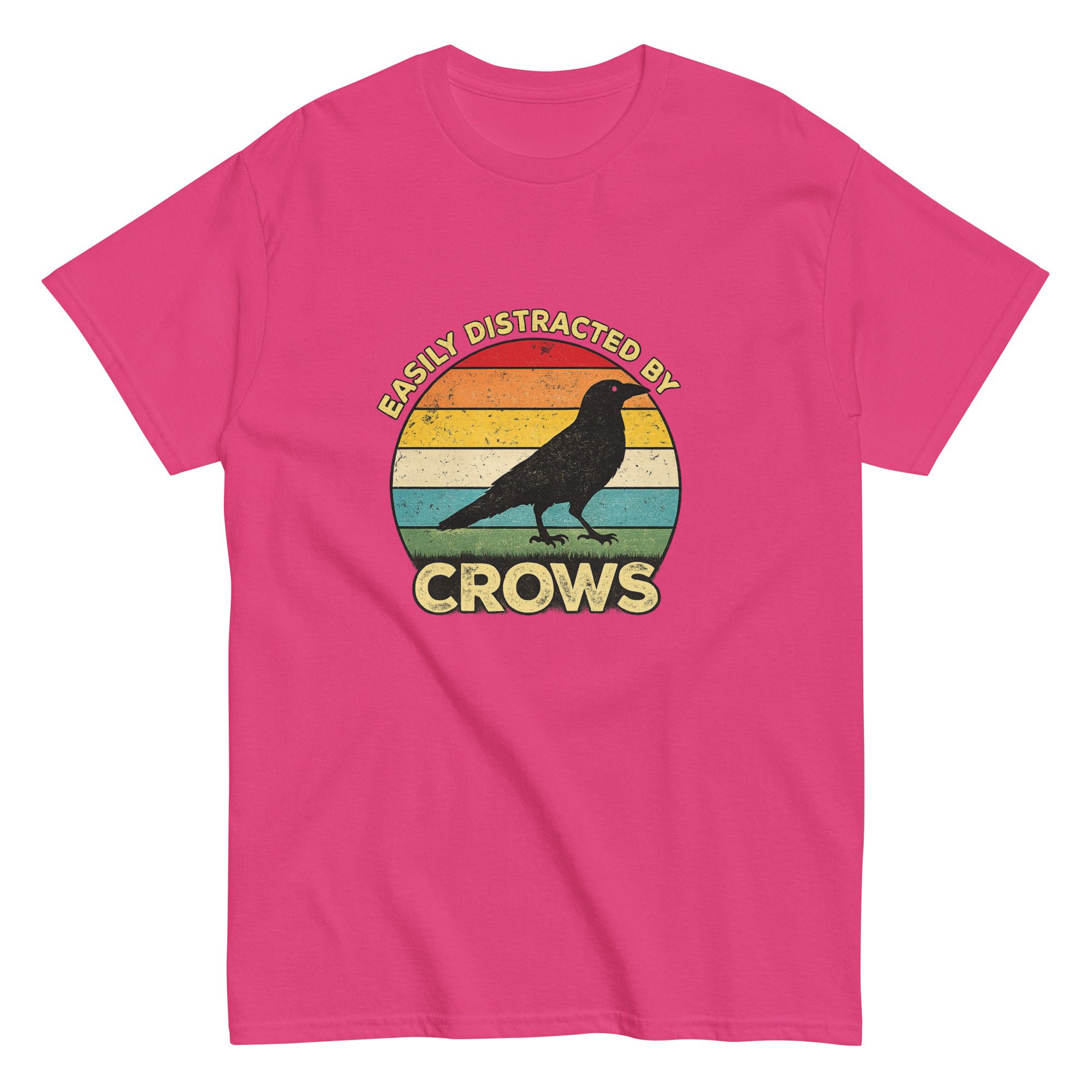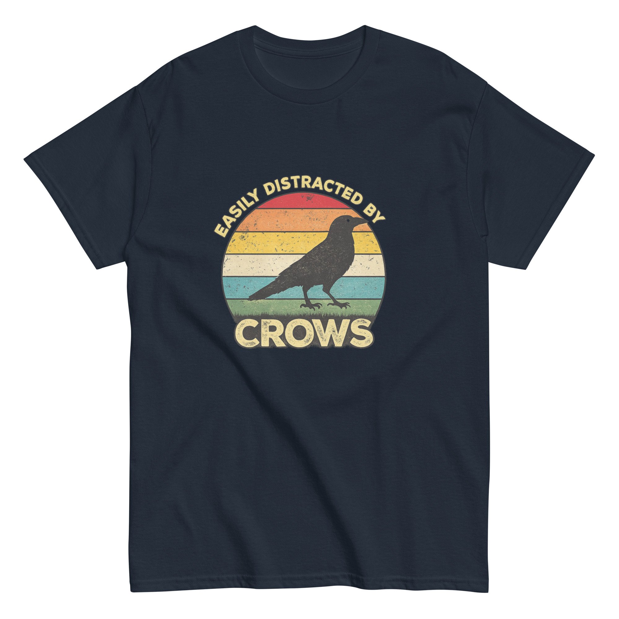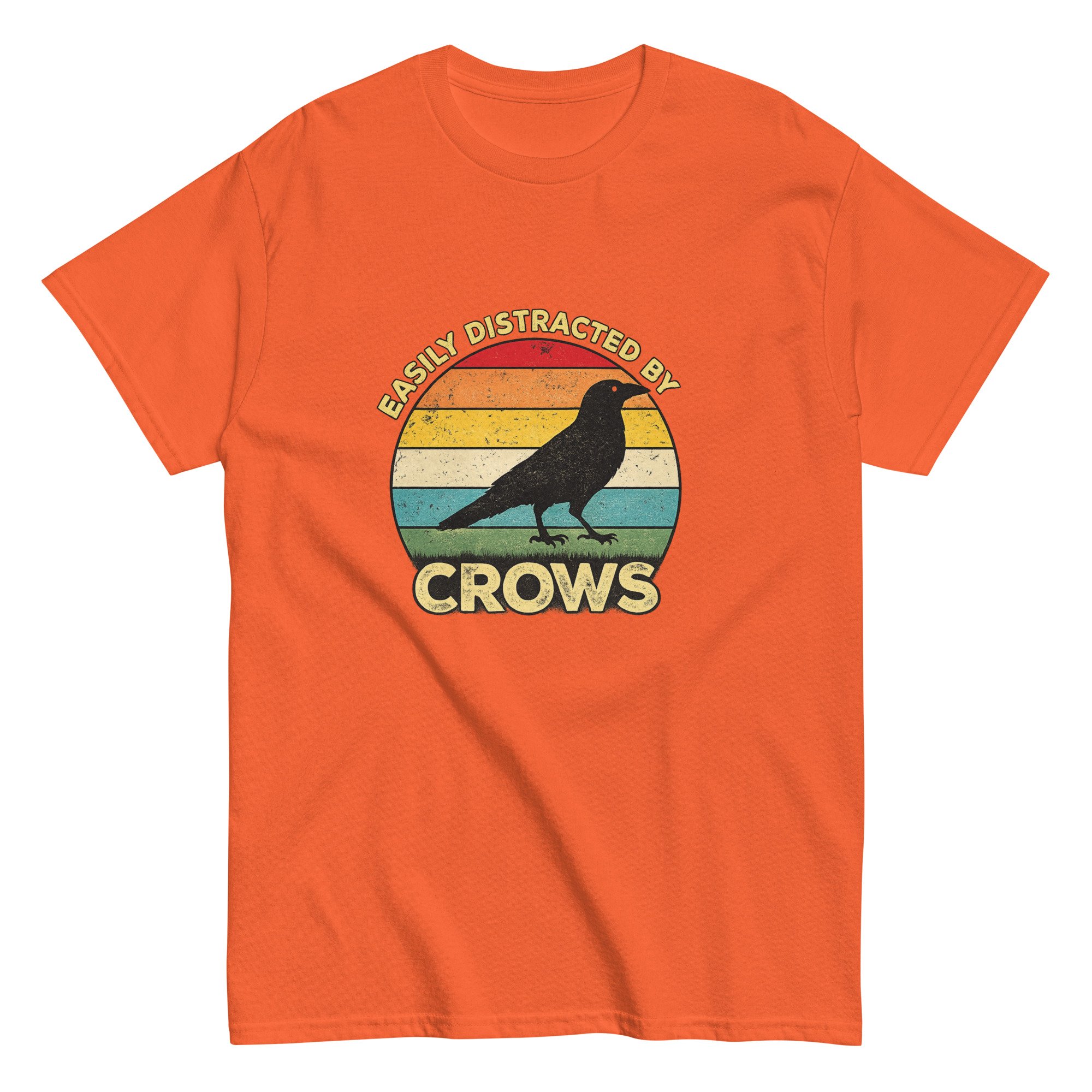 Funny Crow Lover Graphic Tee, Bird Watcher T-Shirt, Vintage Crow Sunset Shirt, Easily Distracted by Crows is a playful and relatable design for anyone who can’t help but stop and watch every crow they see. Featuring a bold crow silhouette set against a vintage-style sunset background, this design blends humor with a love of nature and wildlife. The retro color palette and clean composition create a standout look that feels both classic and expressive, making it perfect for everyday wear. Ideal for crow lovers, bird watchers, nature enthusiasts, and anyone drawn to the intelligence and mystery of these fascinating birds.