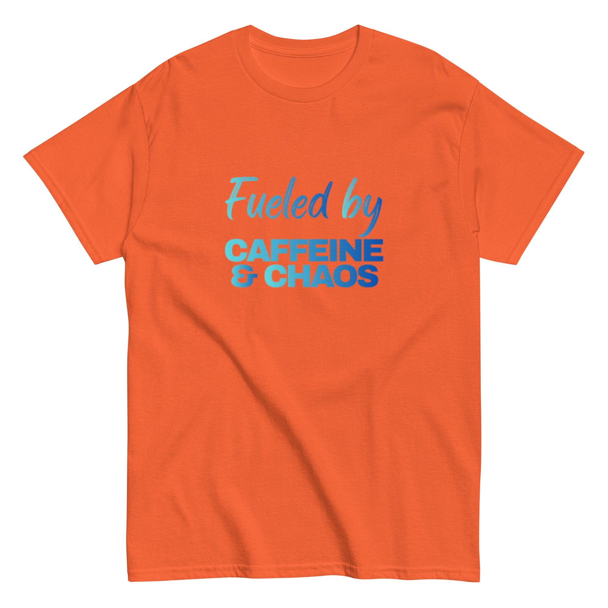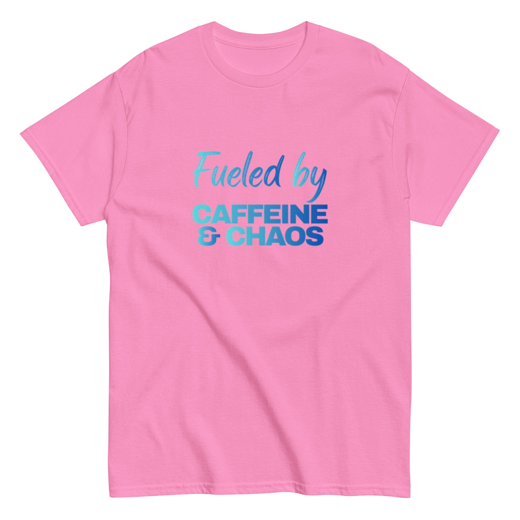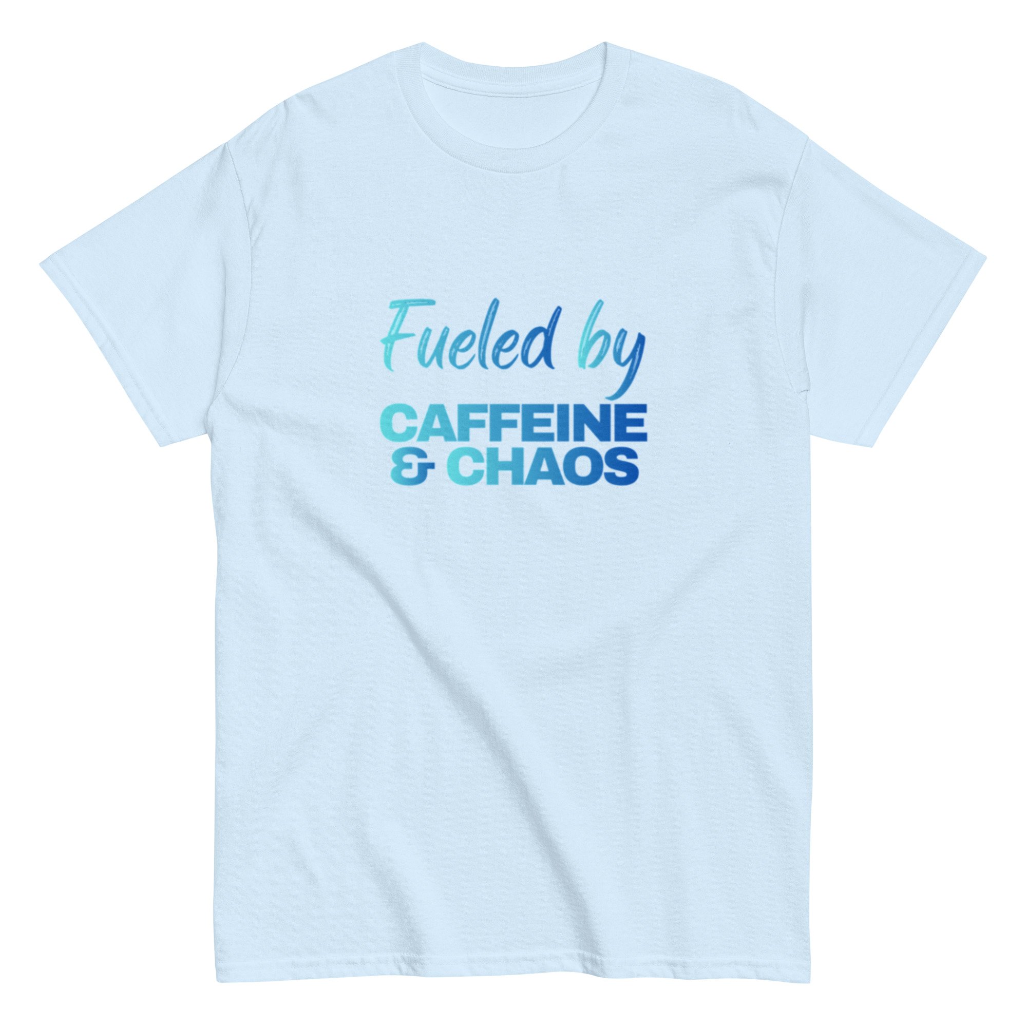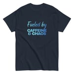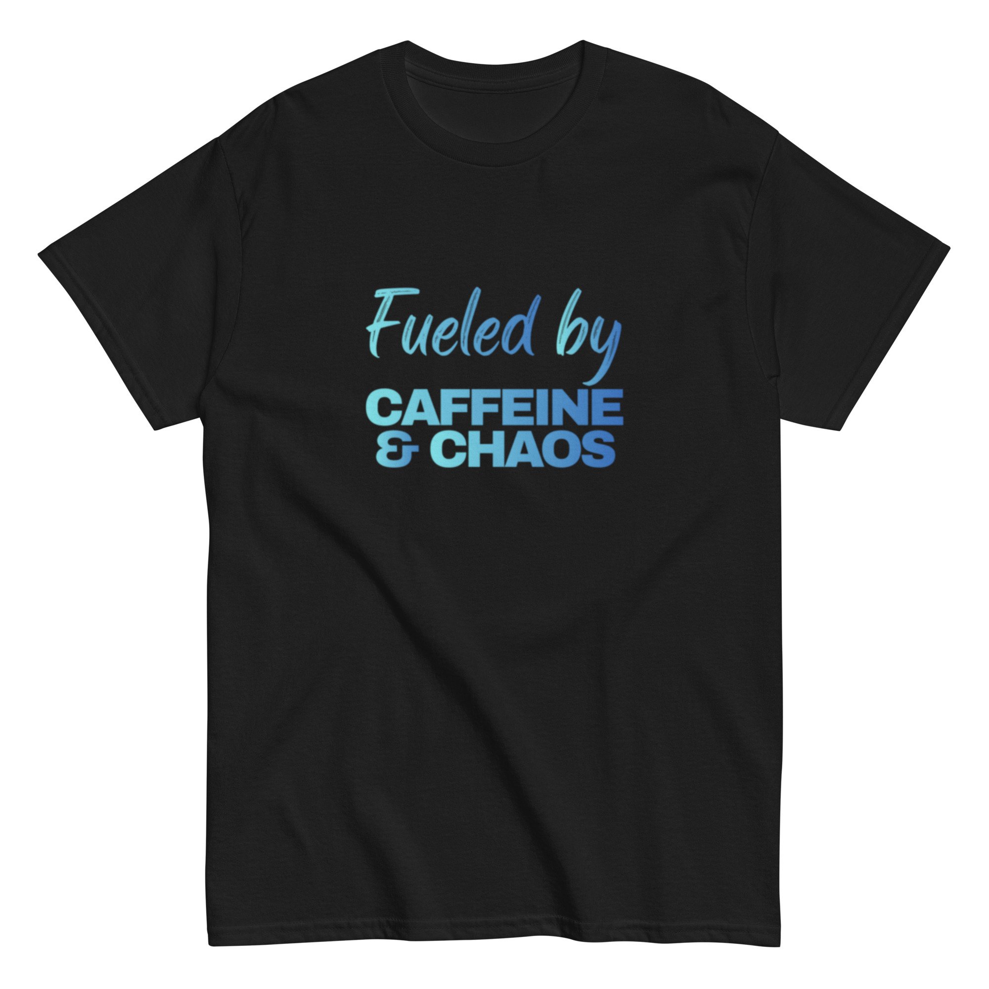 Unisex classic tee, Fueled by Caffeine & Chaos T-Shirt | Funny Coffee Lover Chaos Humor Graphic Tee