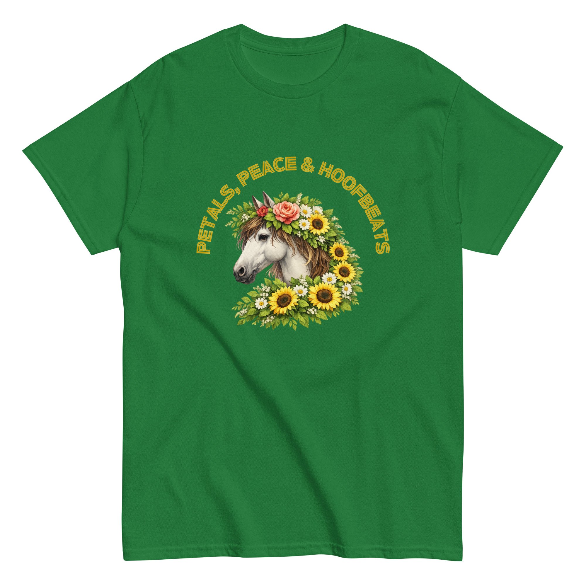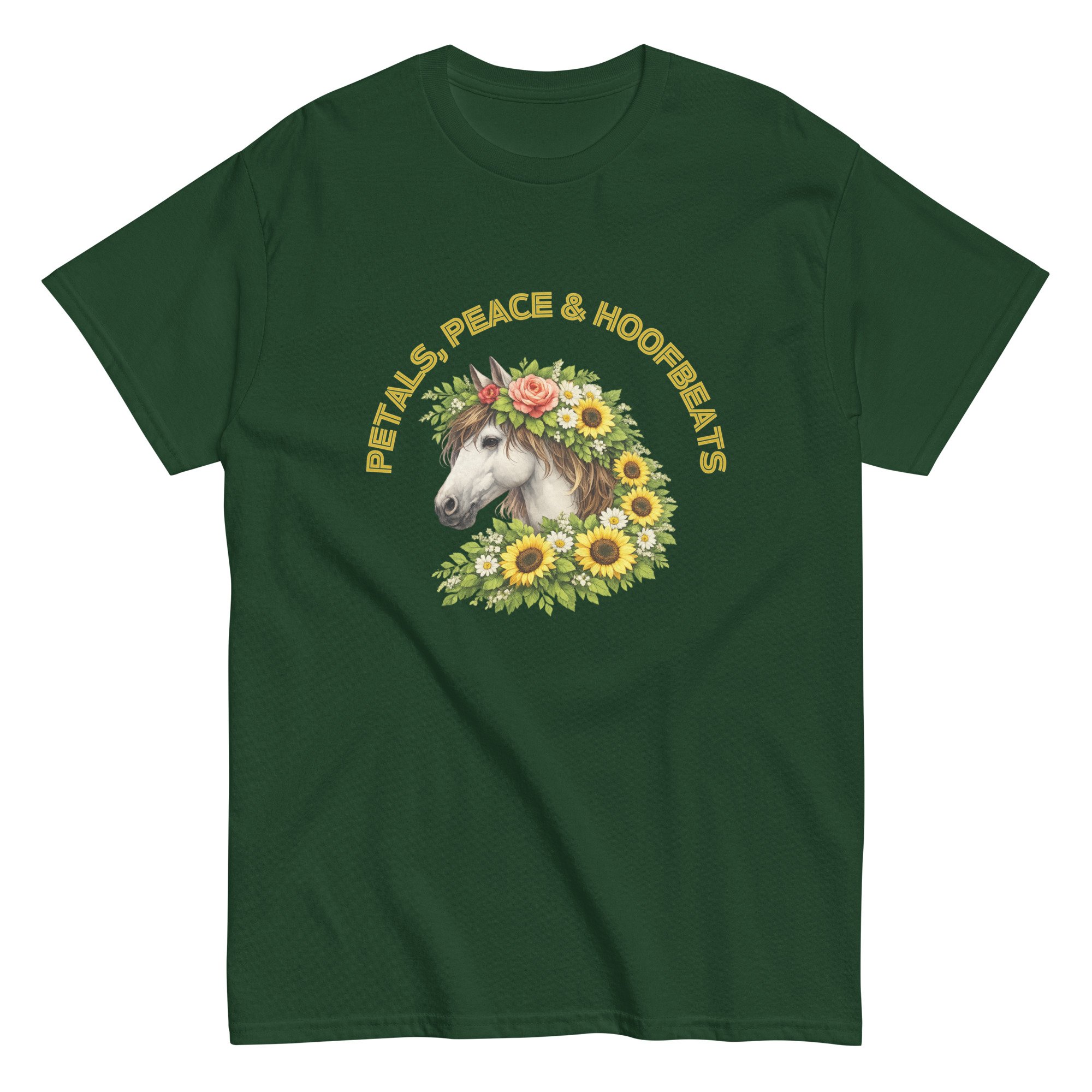 Unisex classic tee, Petals, Peace and Hoofbeats Horse Lovers Tee