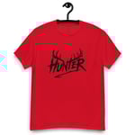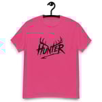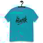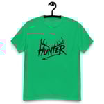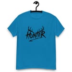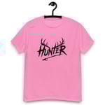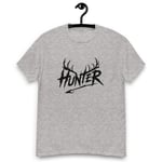 Hunter Antlers features a bold, rugged design combining sharp lettering with antler imagery and an arrow accent, capturing the spirit of the hunt and the outdoors. This graphic tee delivers a strong, minimalist look that resonates with hunters and outdoor enthusiasts alike.