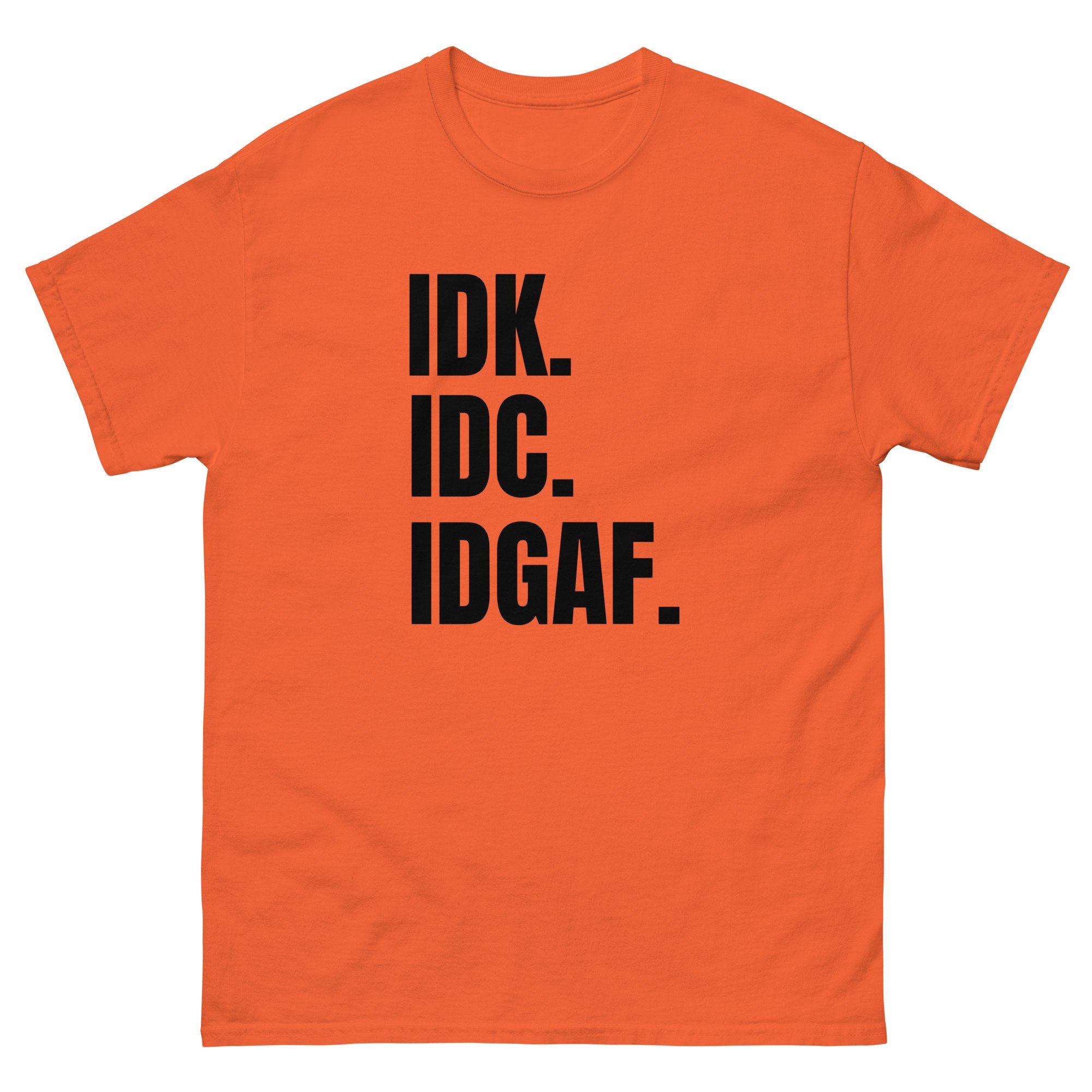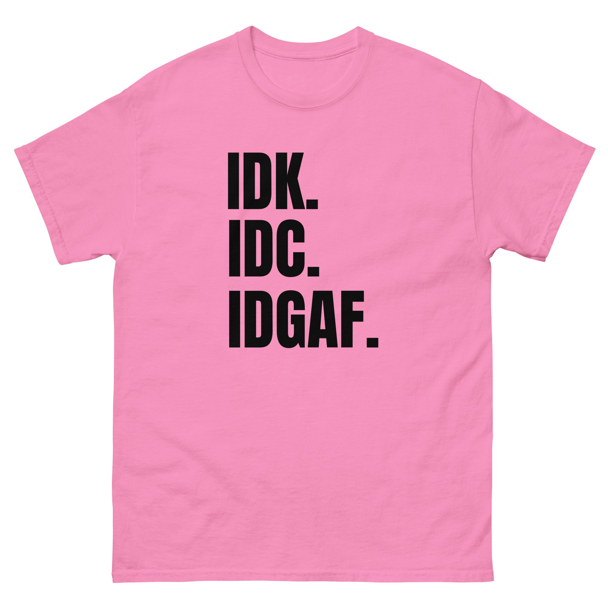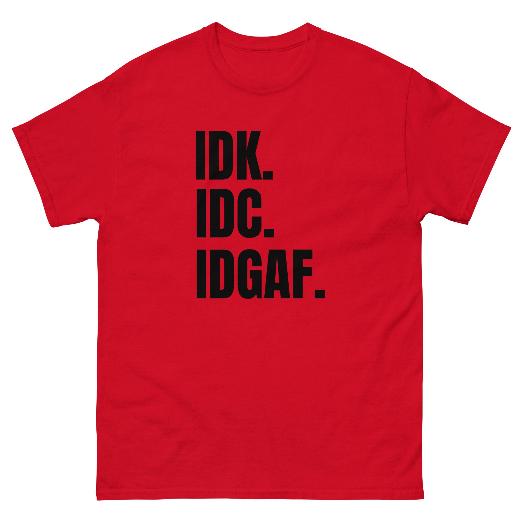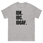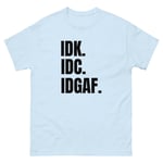 Unisex classic tee, IDK IDC IDGAF T-Shirt | Funny Attitude Bold Humor Graphic Tee