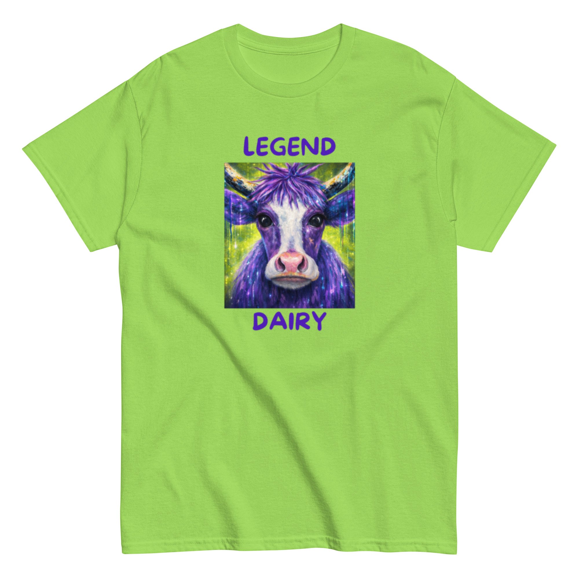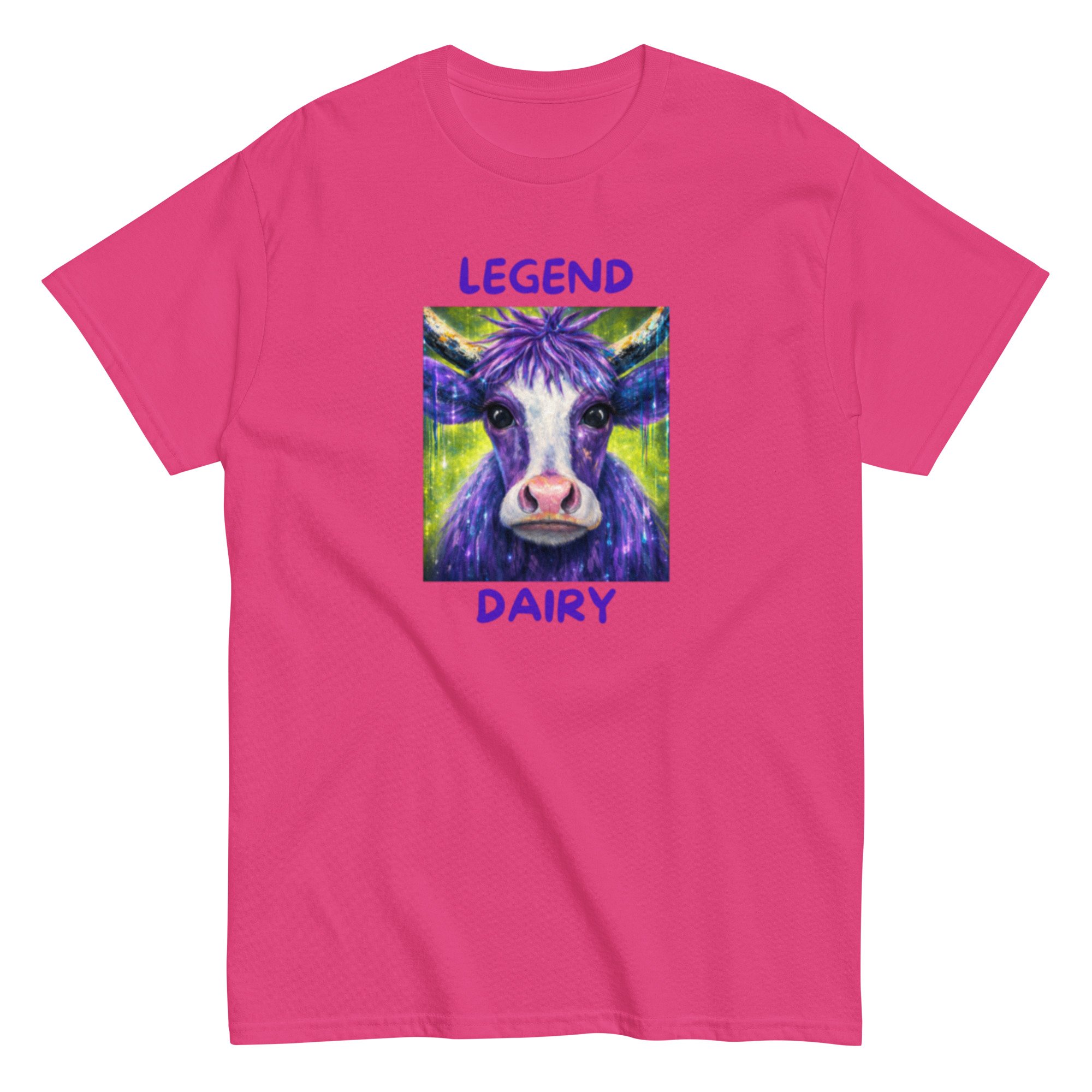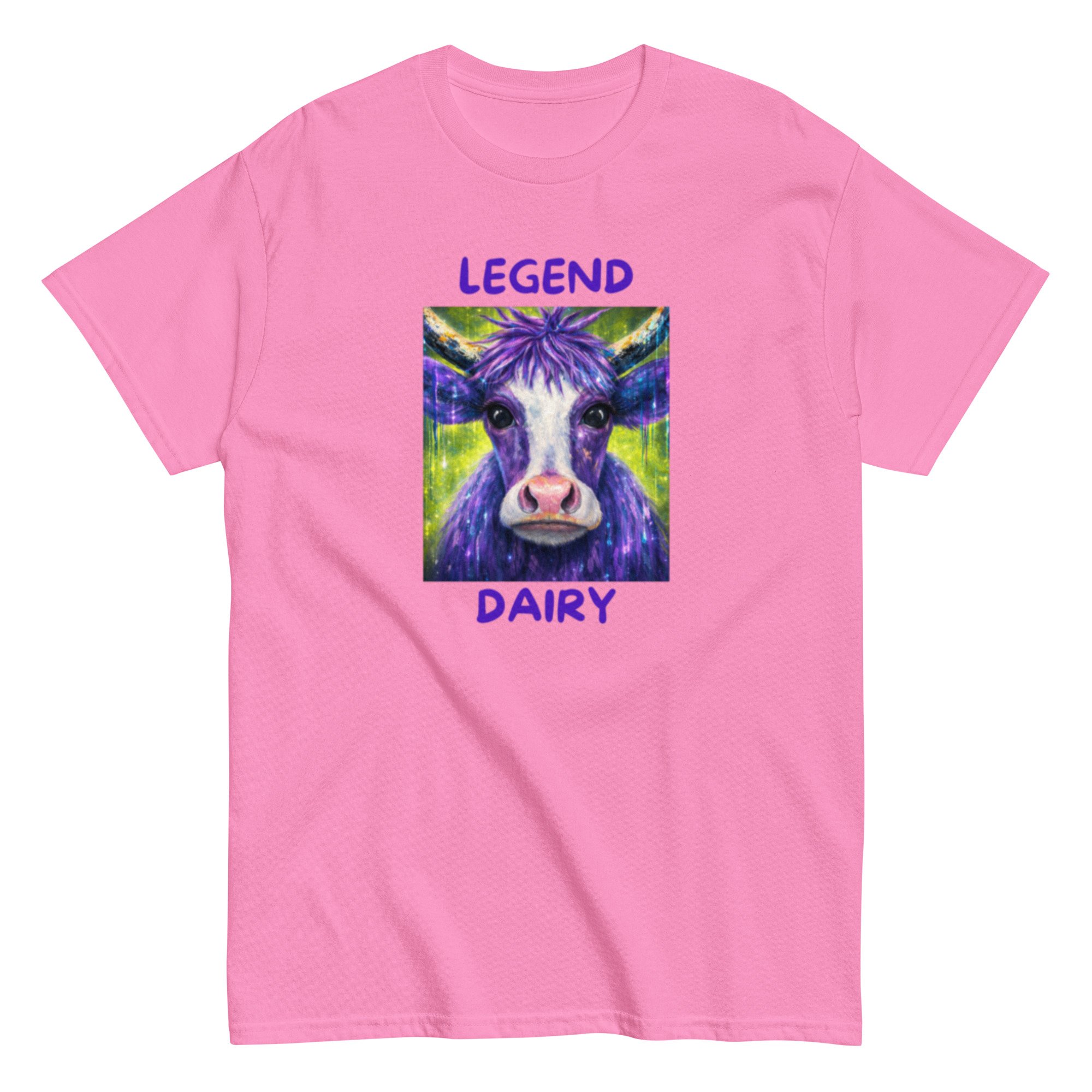 Legend Dairy features a vibrant, eye-catching cow design paired with a playful pun that brings humor and personality together. This graphic tee blends bold, colorful artwork with lighthearted farm-inspired humor, making it a standout piece.