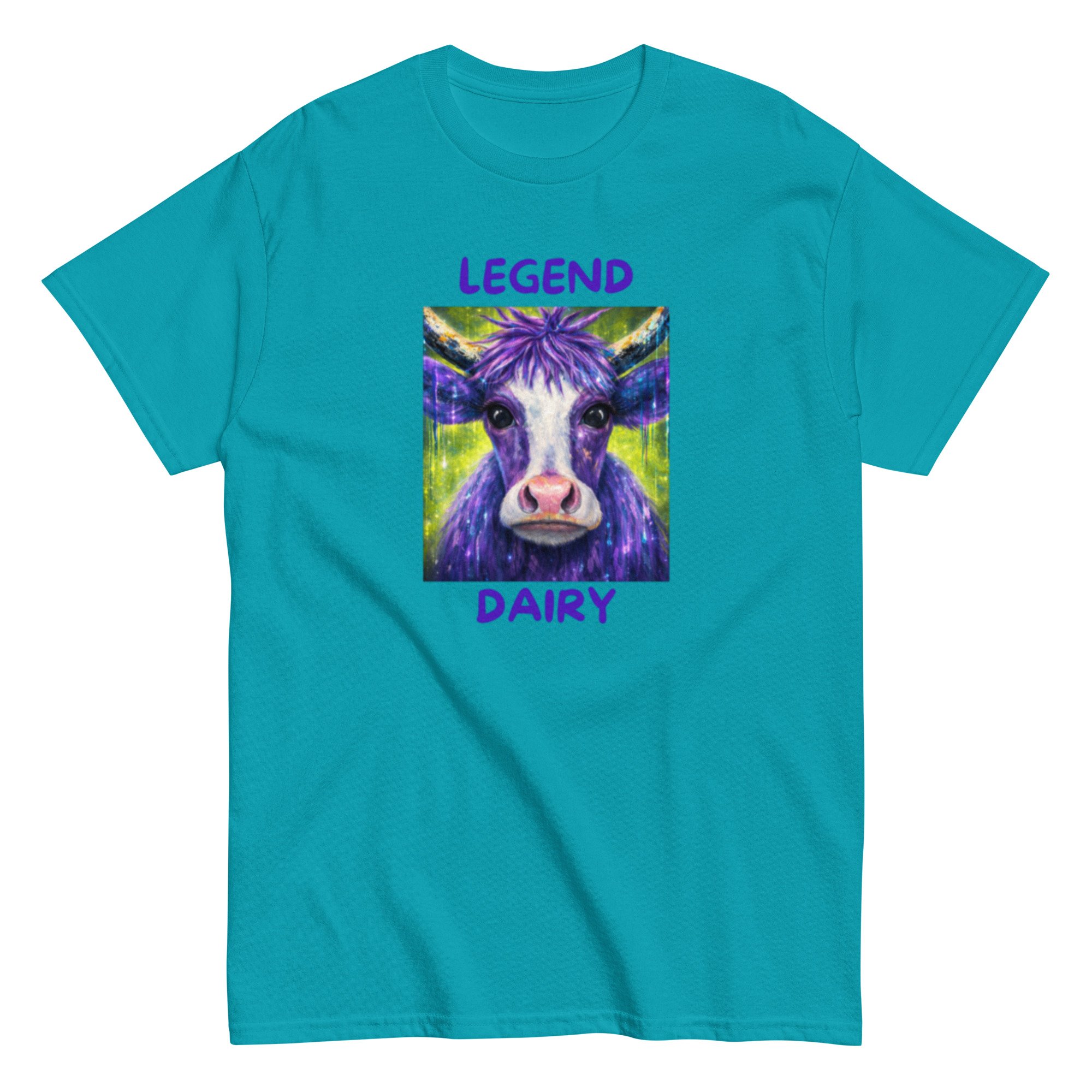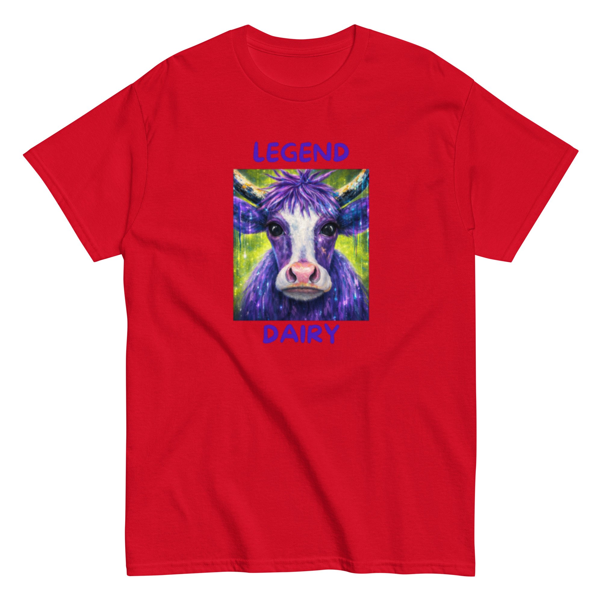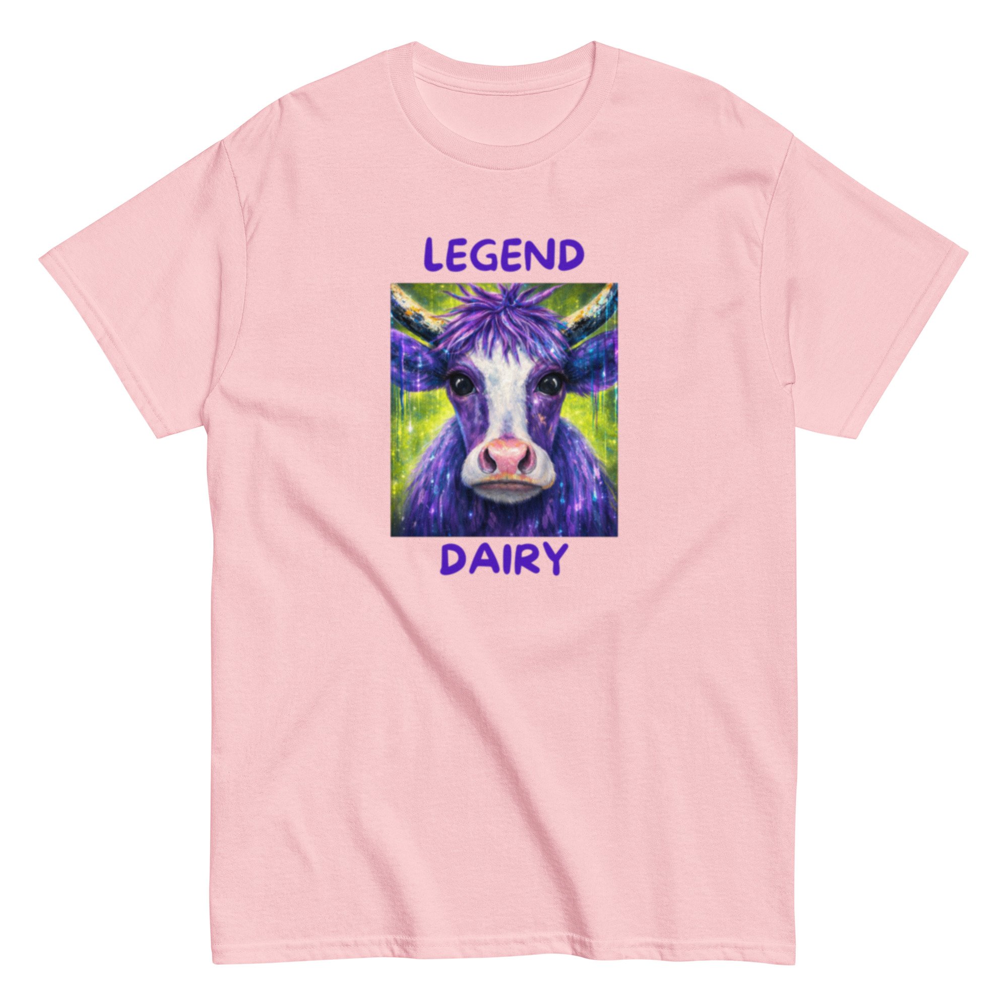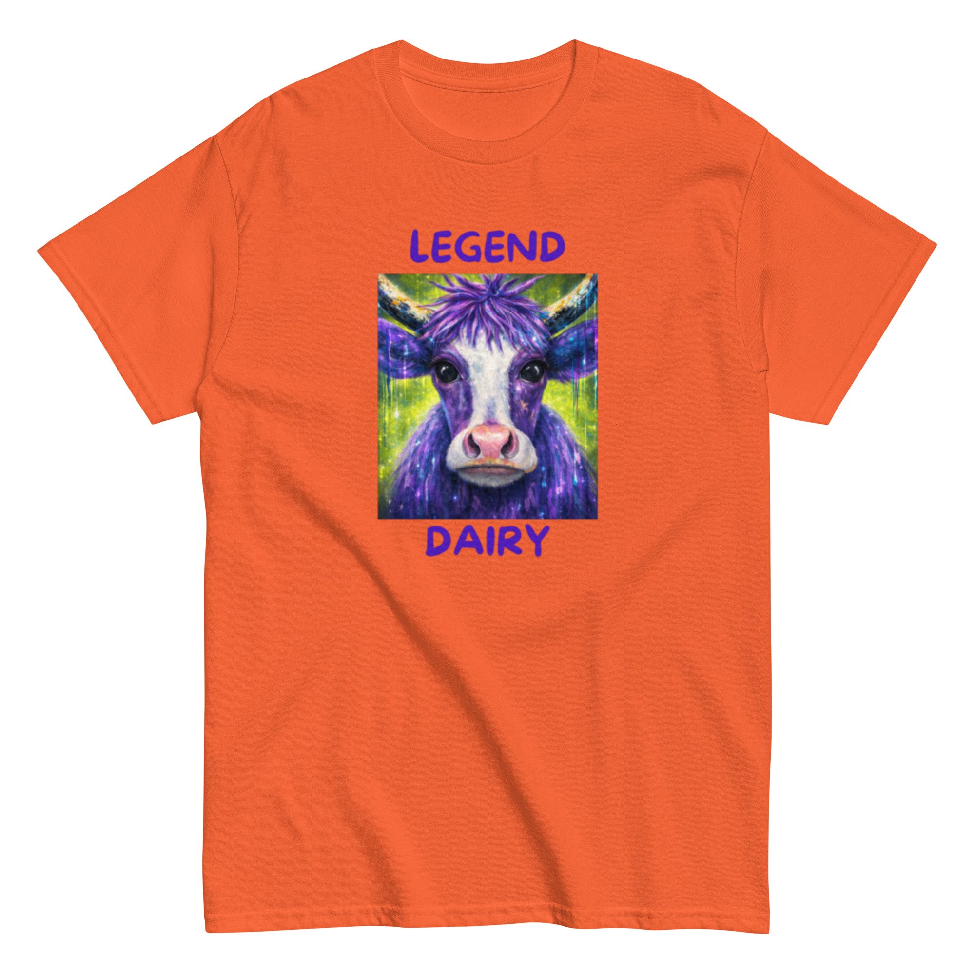 Legend Dairy features a vibrant, eye-catching cow design paired with a playful pun that brings humor and personality together. This graphic tee blends bold, colorful artwork with lighthearted farm-inspired humor, making it a standout piece.