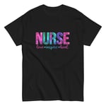 Nurse Graphic Tee, Inspirational Nurse T-Shirt, Nurse Gift Shirt, Nurse Love Inspire Heal features vibrant jewel-tone lettering paired with an uplifting message that reflects the heart of nursing—compassion, strength, and dedication. This colorful and expressive design celebrates the meaningful impact nurses make every day, blending bold visual style with a message that resonates deeply within the profession. The bright, eye-catching colors and clean typography create a standout look that remains easy to wear both at work and beyond. Perfect for registered nurses, LPNs, nursing students, and healthcare professionals who lead with care and confidence, this tee also makes a thoughtful and inspiring gift.