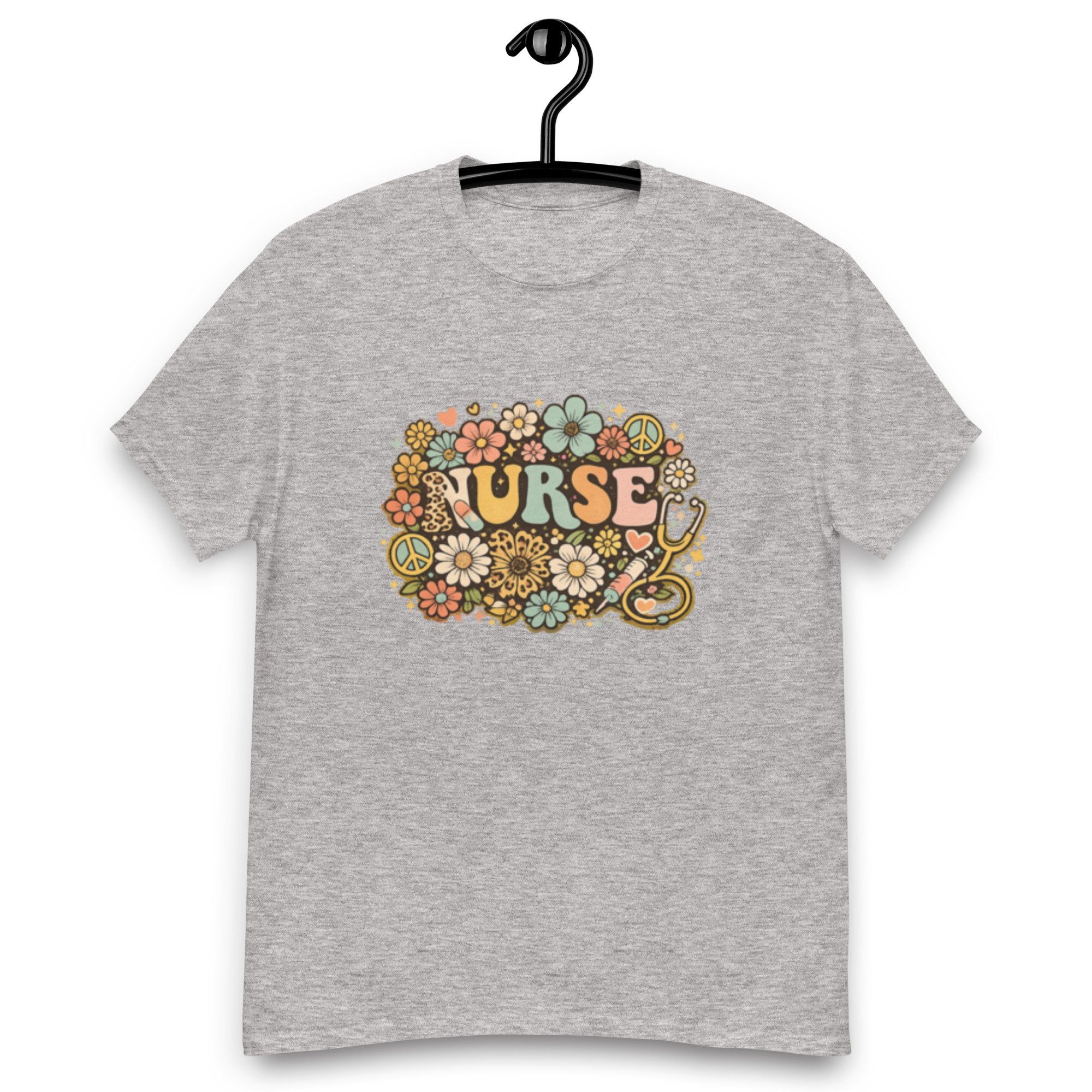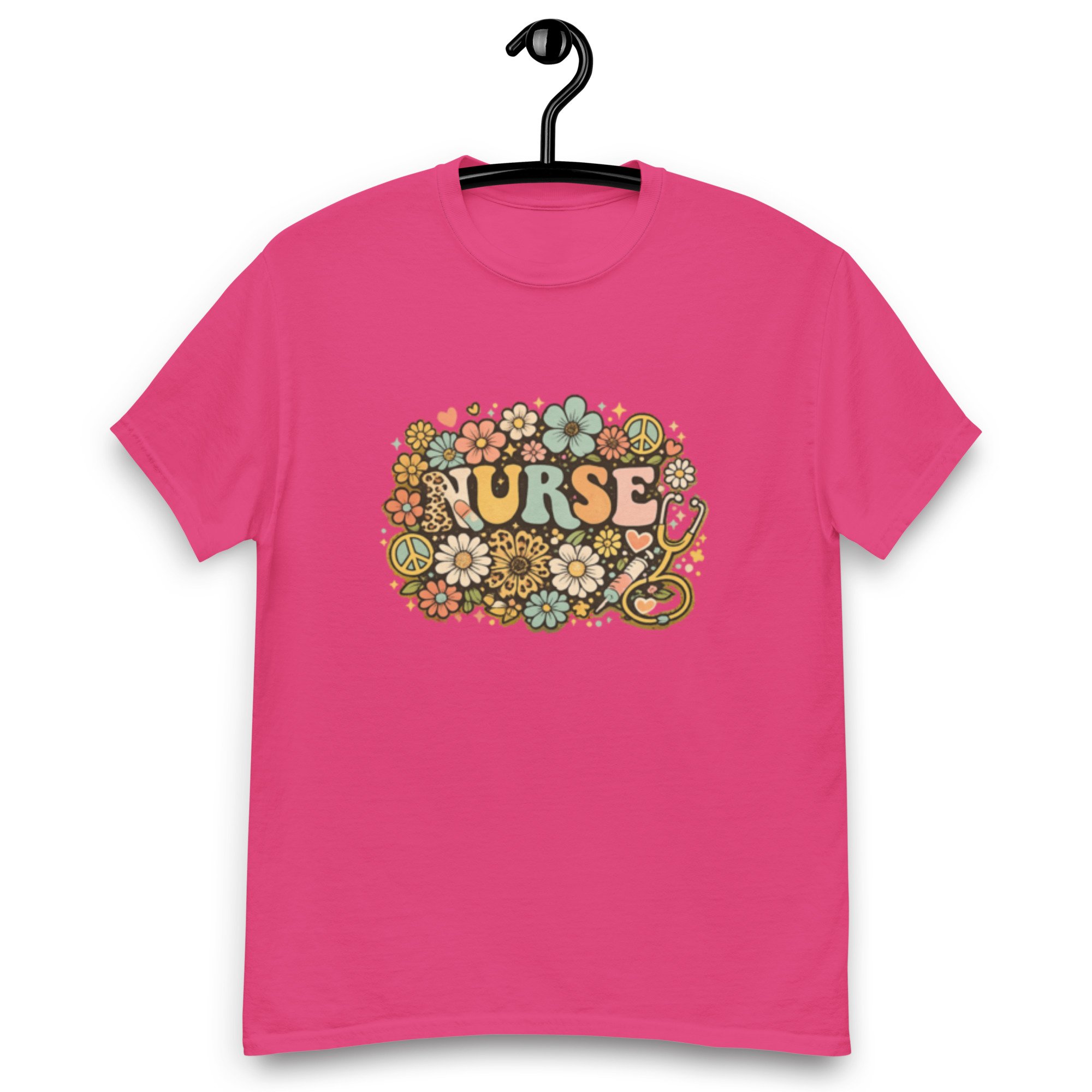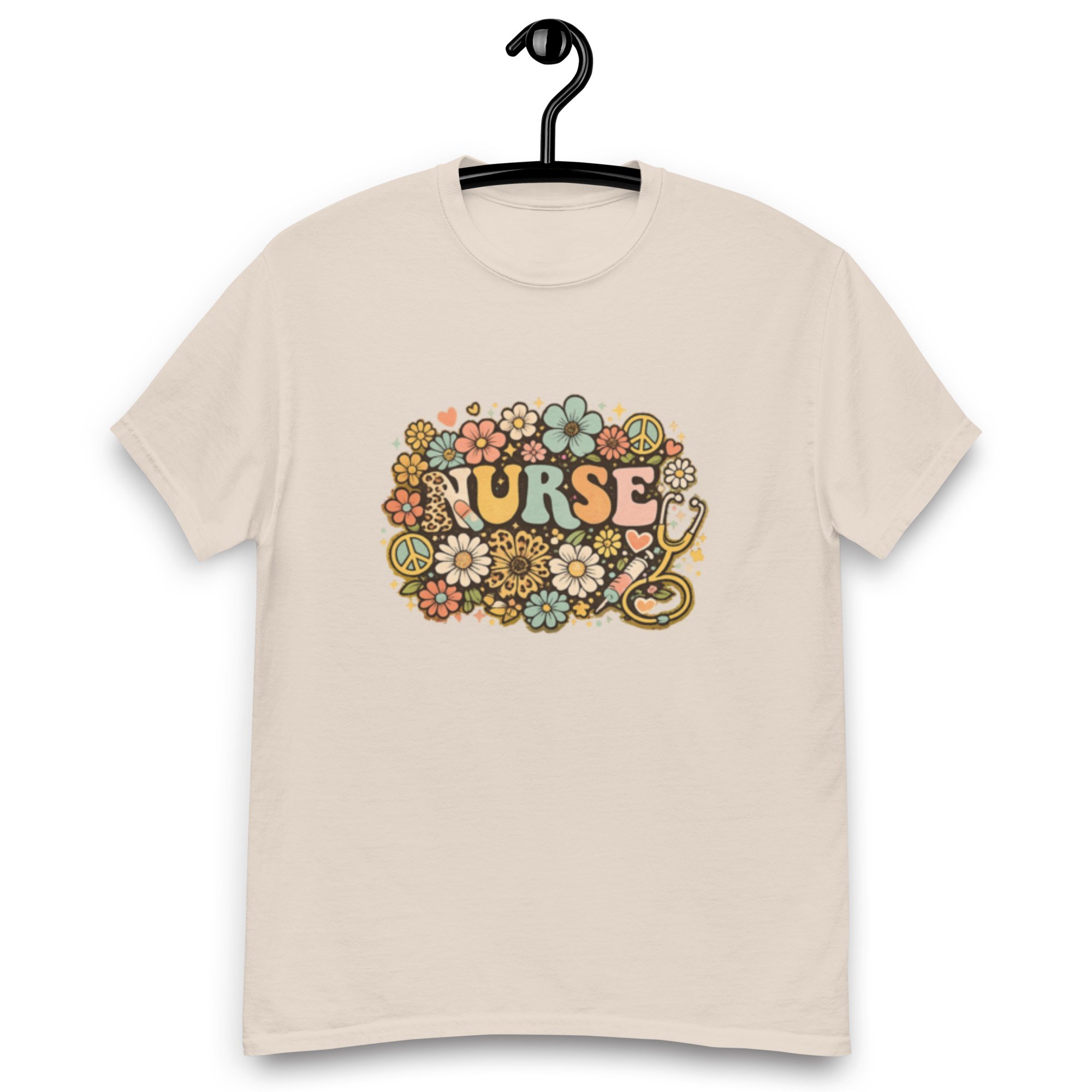 Unisex classic tee, Nurse Retro T-Shirt | Vintage Floral Nurse Graphic Tee