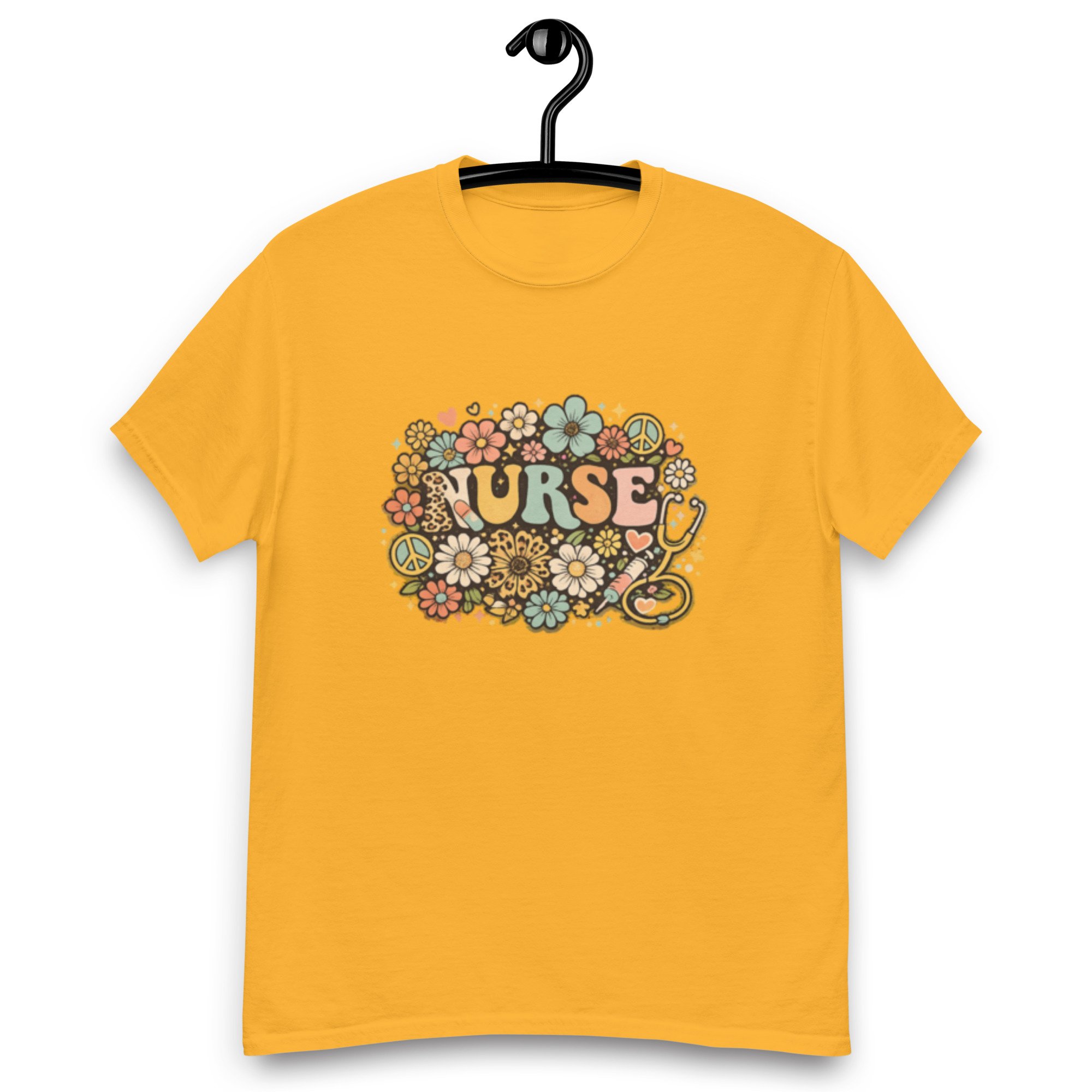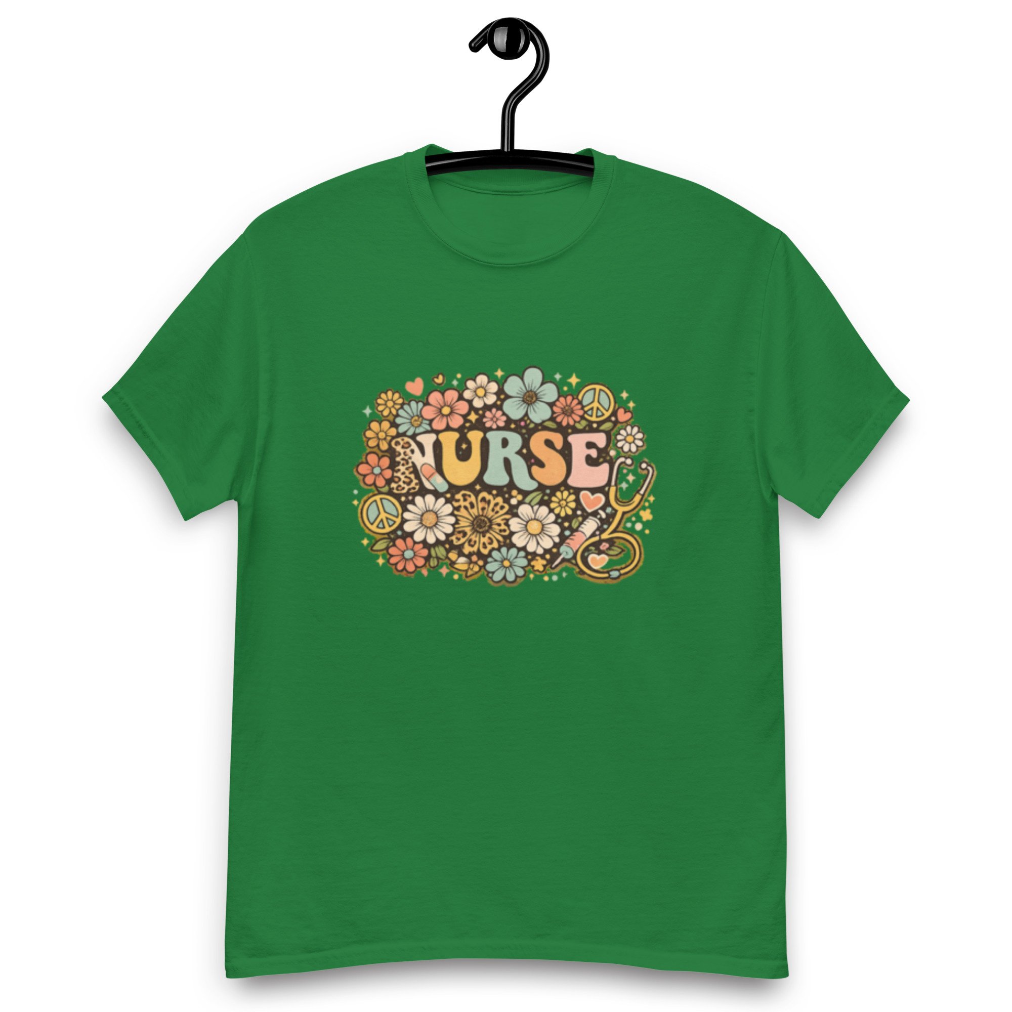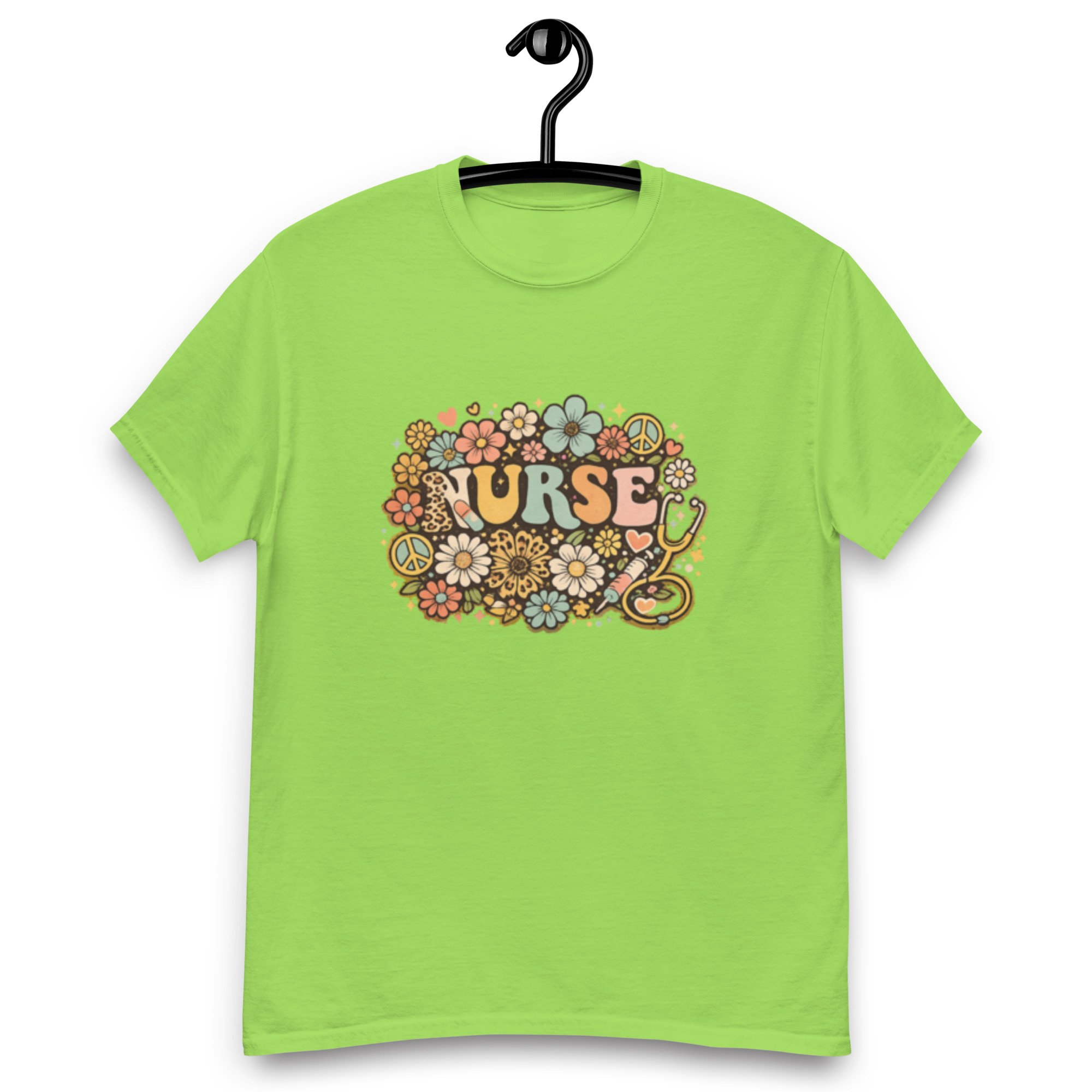 Unisex classic tee, Nurse Retro T-Shirt | Vintage Floral Nurse Graphic Tee