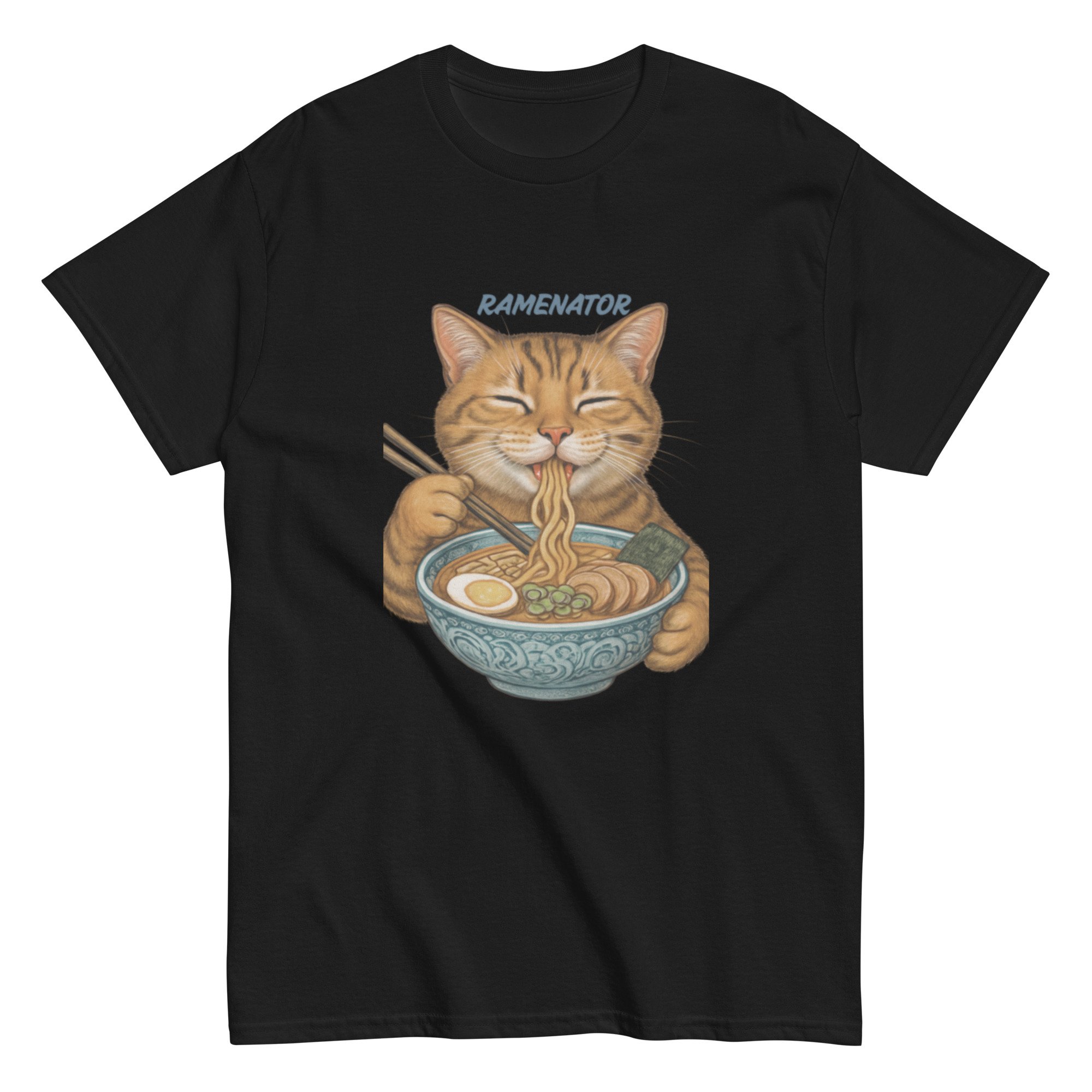 Unisex classic tee, Ramenator Cat T-Shirt | Funny Ramen Cat Graphic Tee