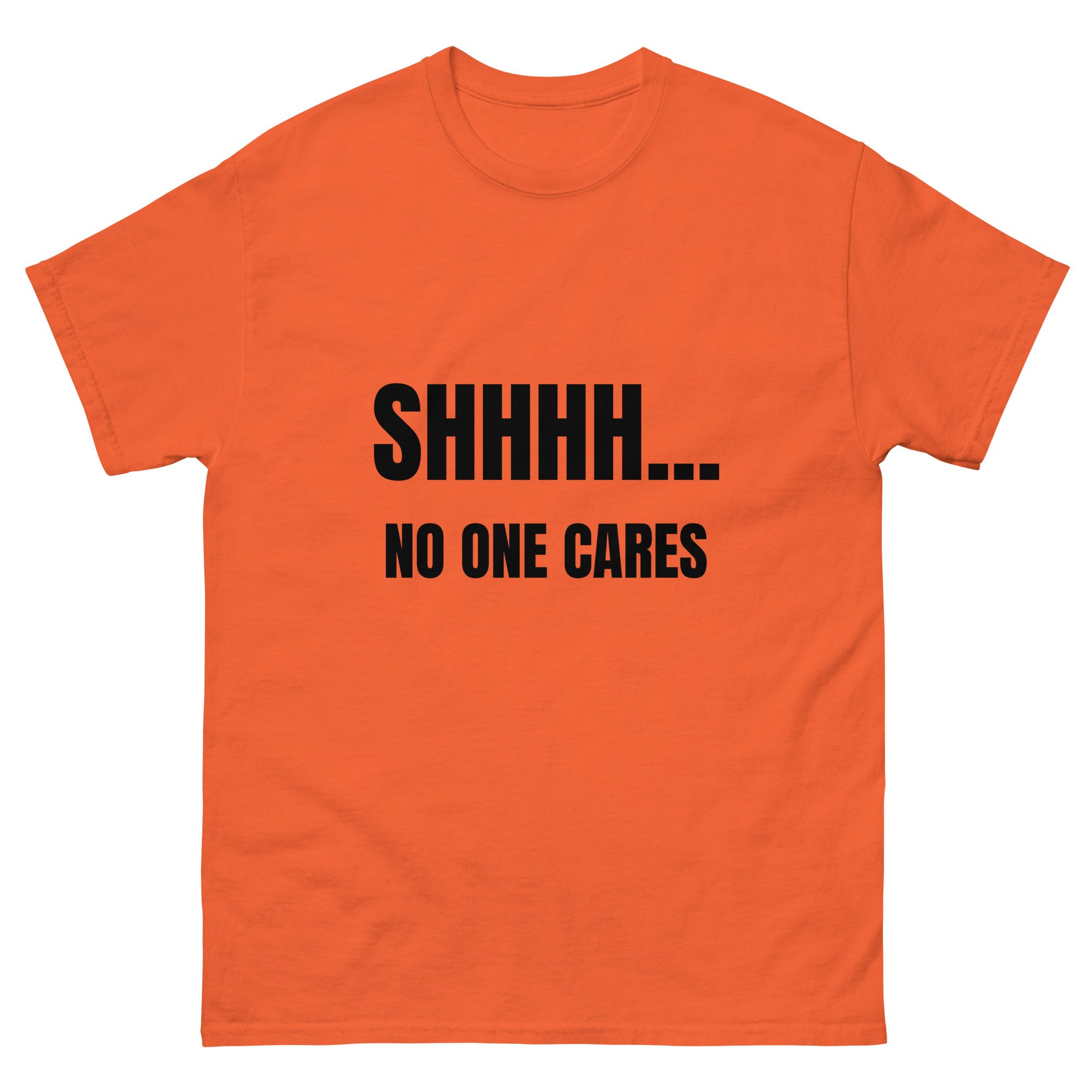 Unisex classic tee, Shhhh… No One Cares Shirt | Funny Sarcastic Humor Tee