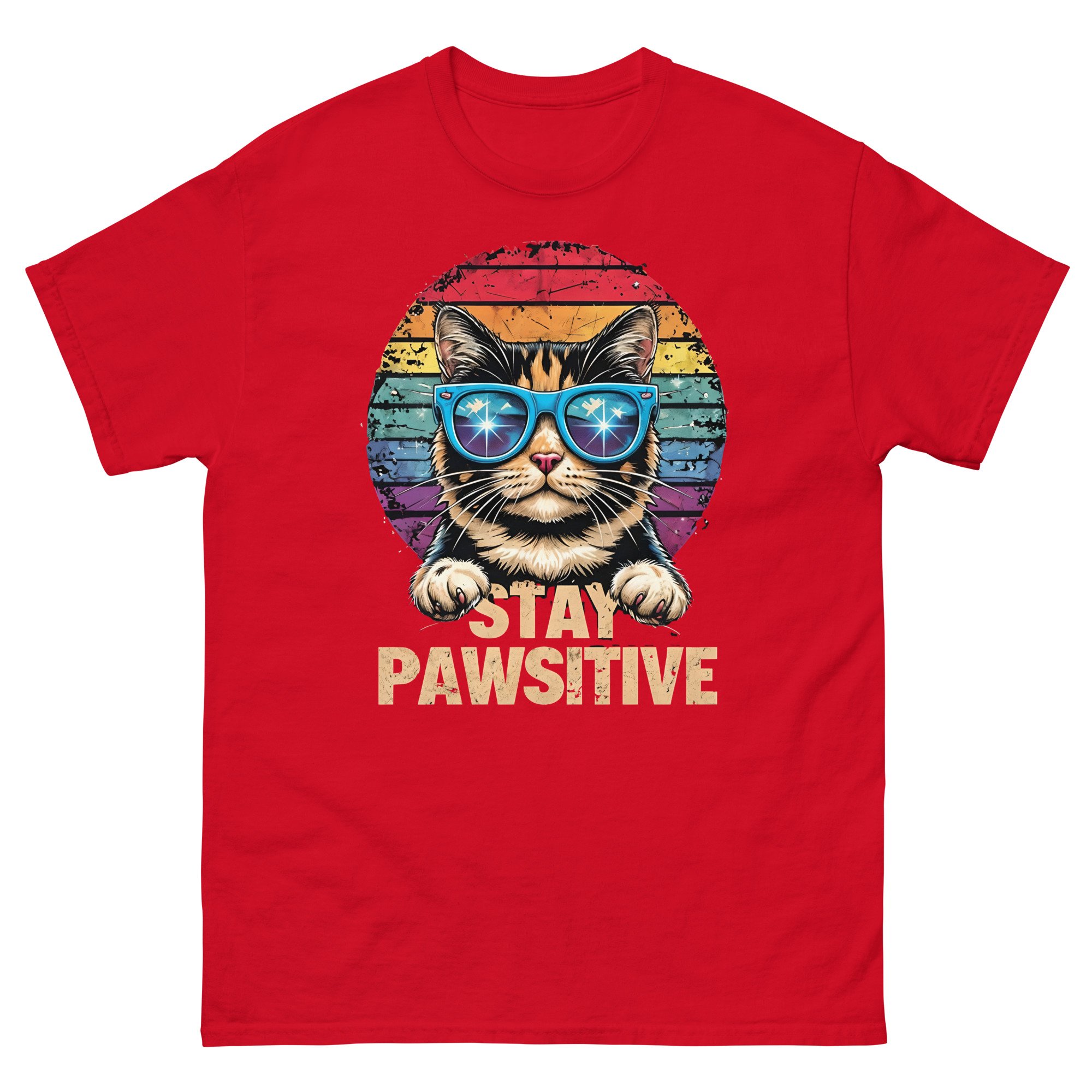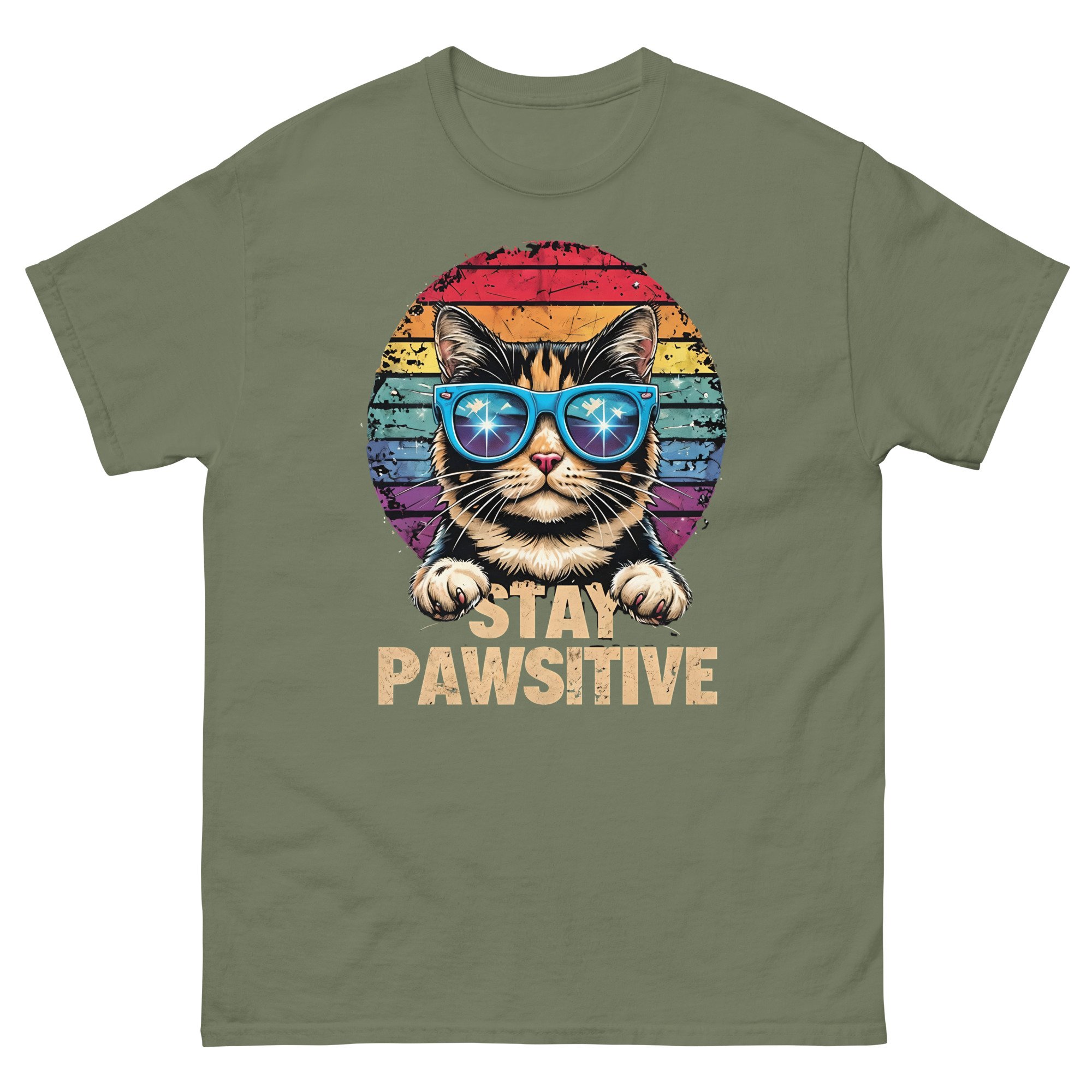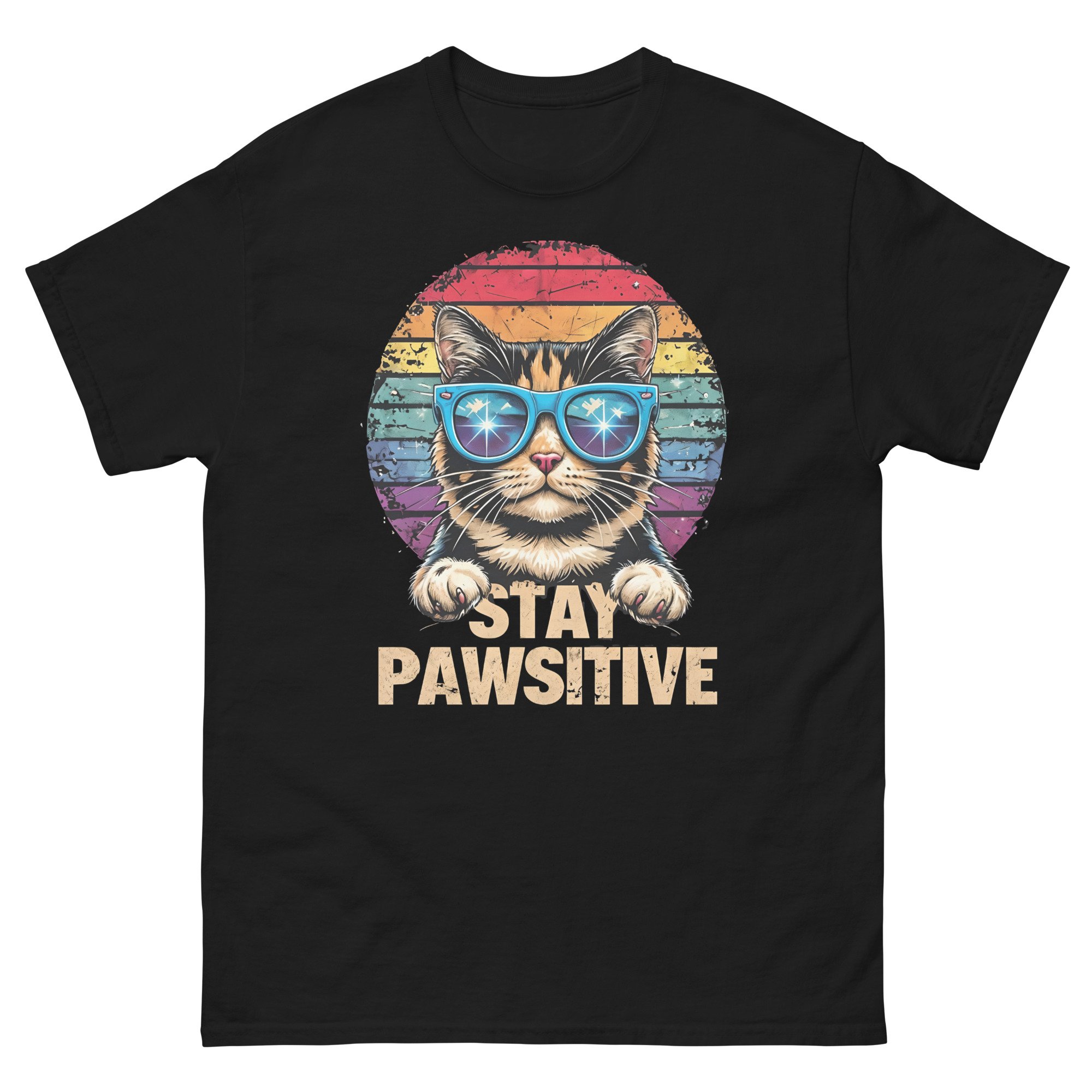 Stay Pawsitive Cat Shirt – Funny Retro Cat Graphic Unisex T-Shirt | Cute Positive Cat Lover Tee