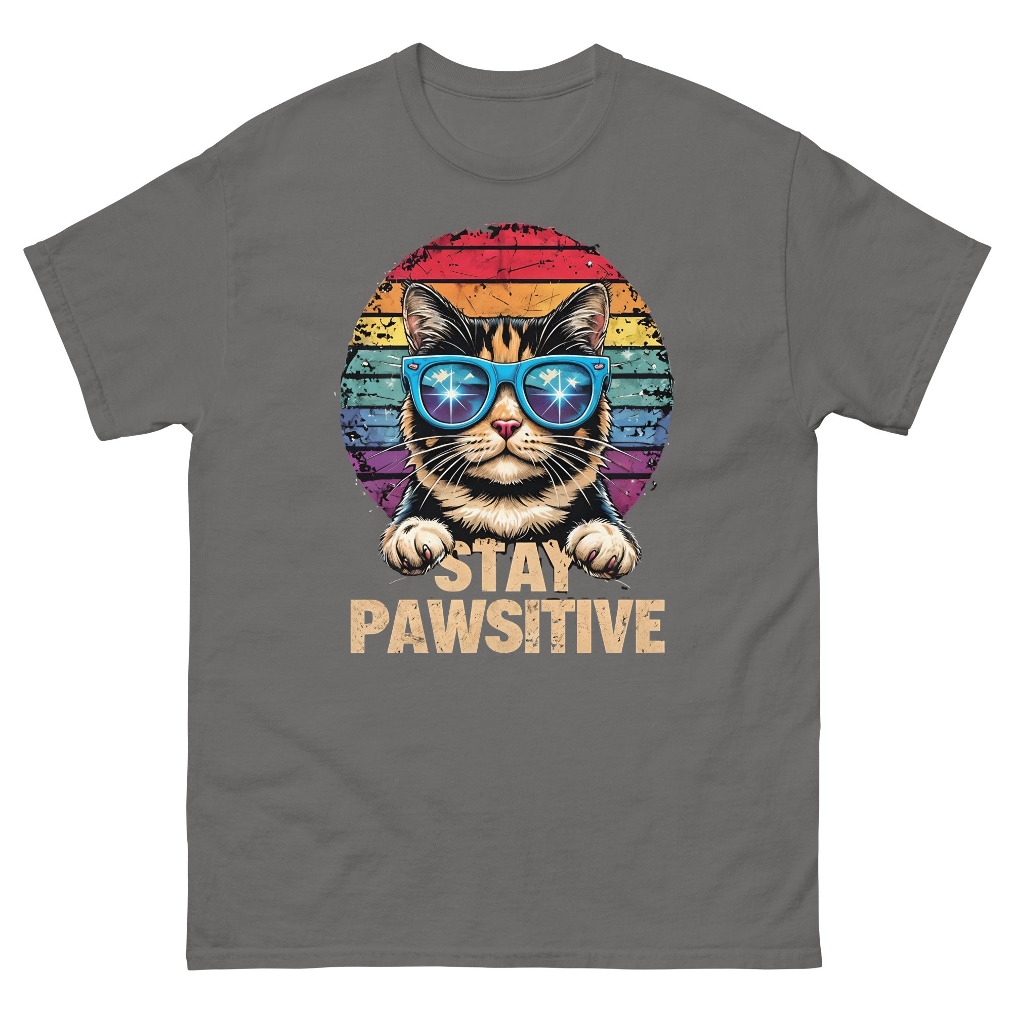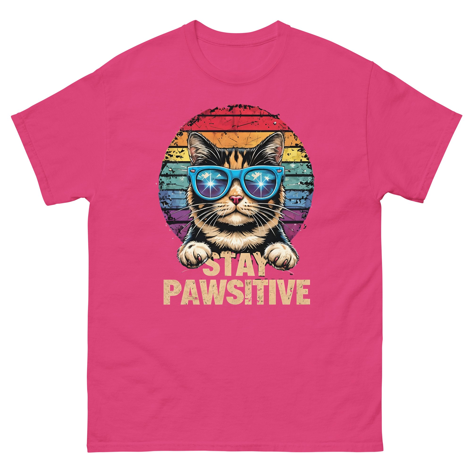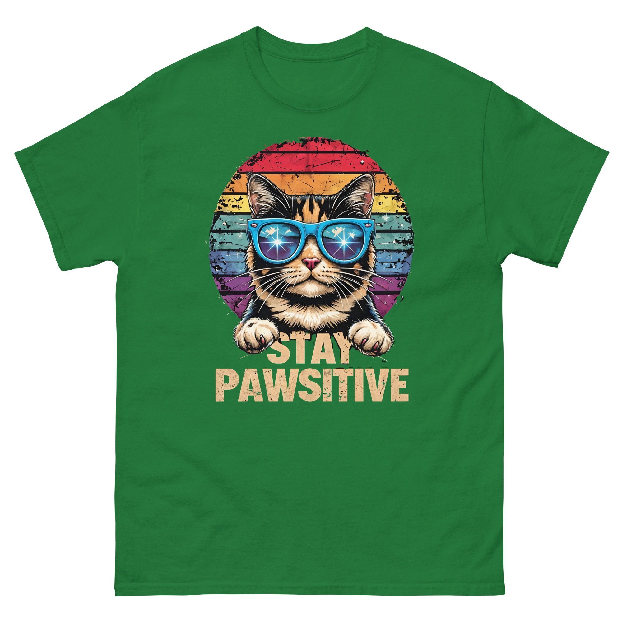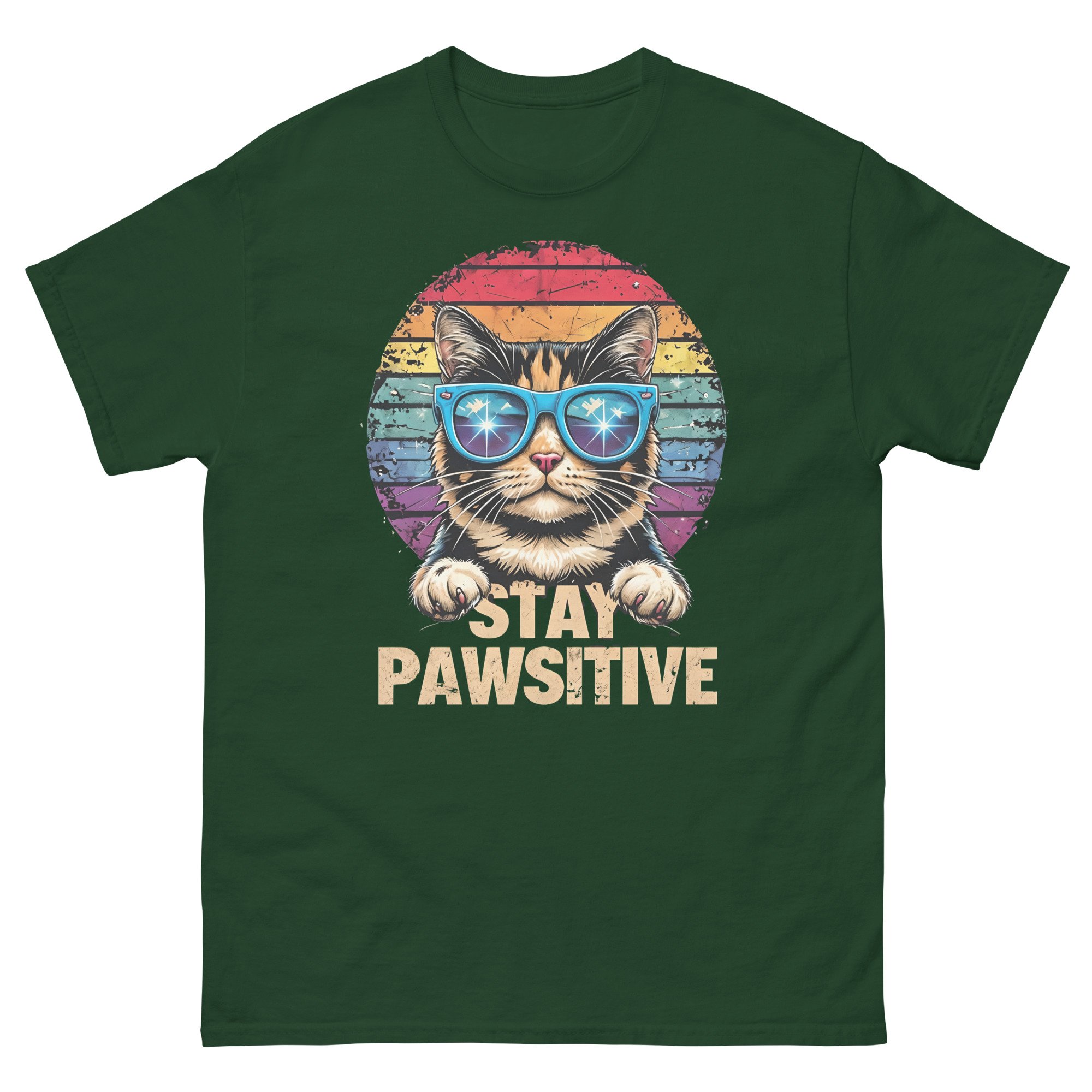 Stay Pawsitive Cat Shirt – Funny Retro Cat Graphic Unisex T-Shirt | Cute Positive Cat Lover Tee