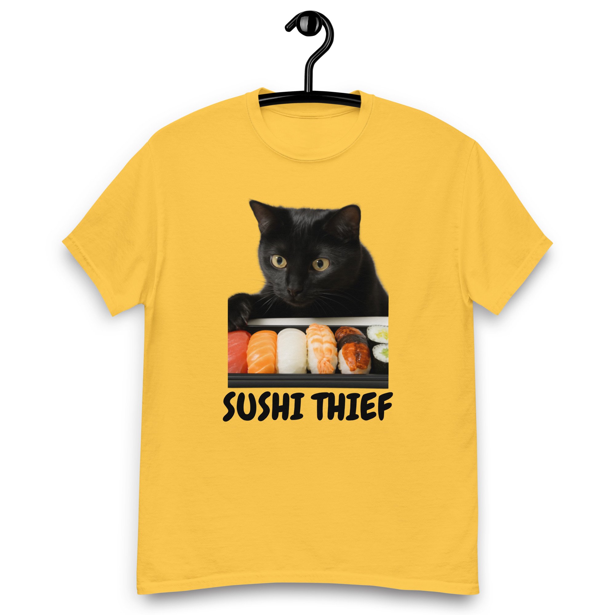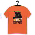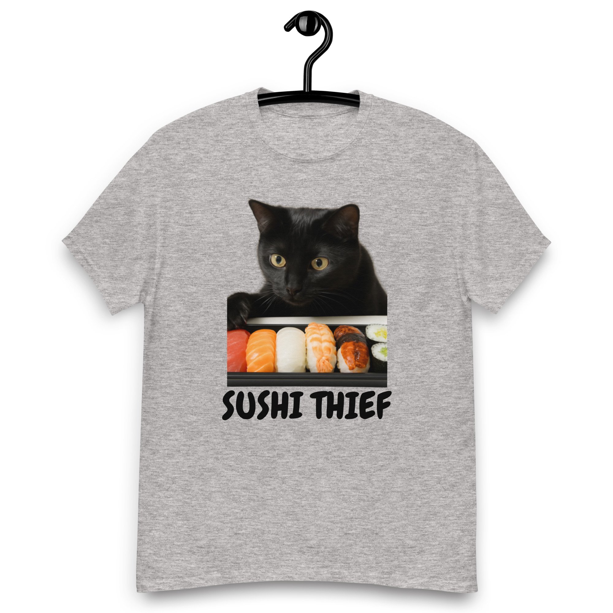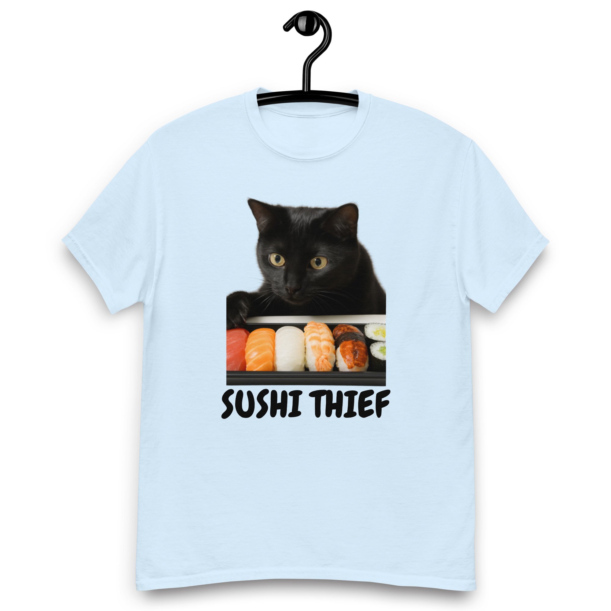 Unisex classic tee, Sushi Thief T-Shirt | Funny Cat Sushi Lover Graphic Tee