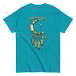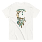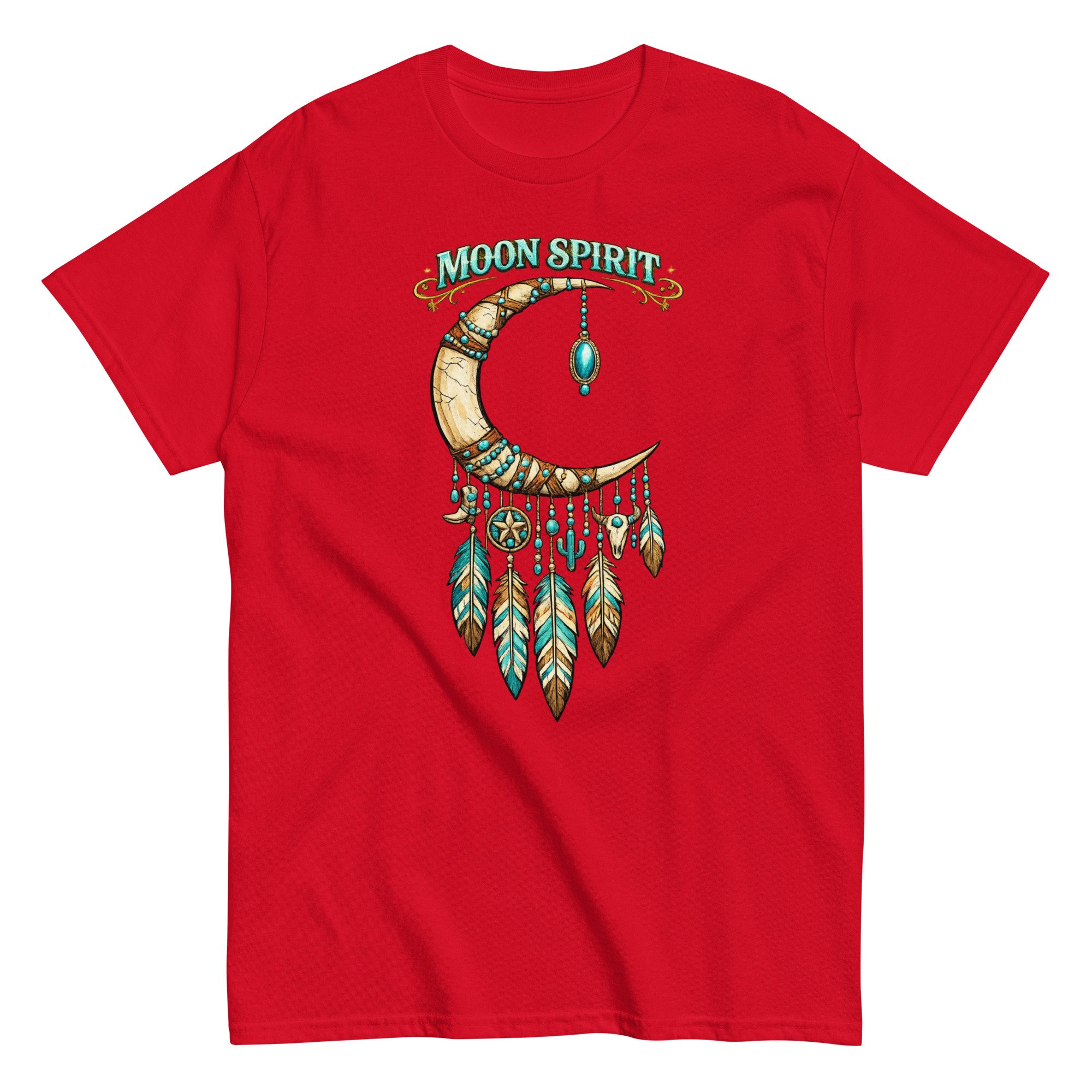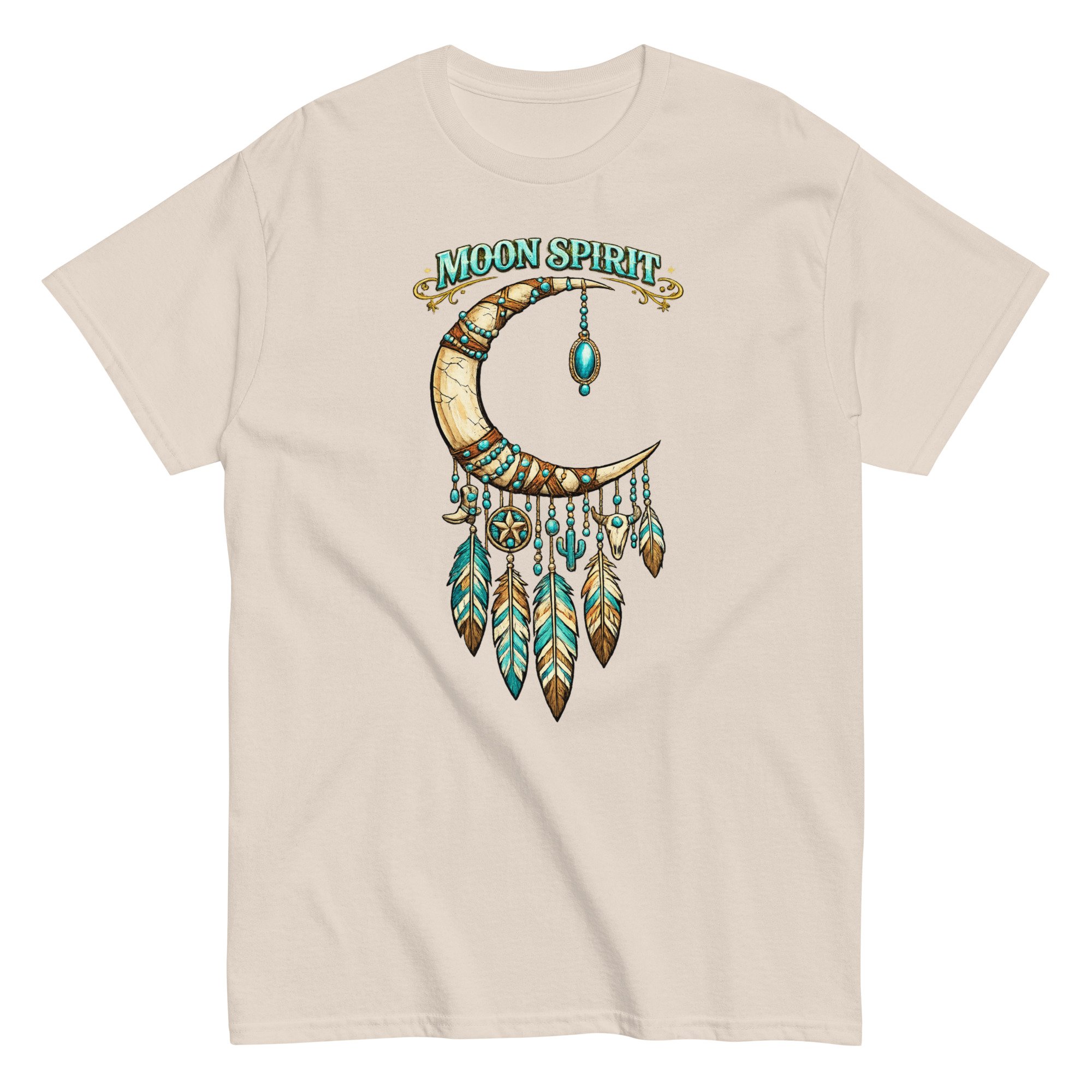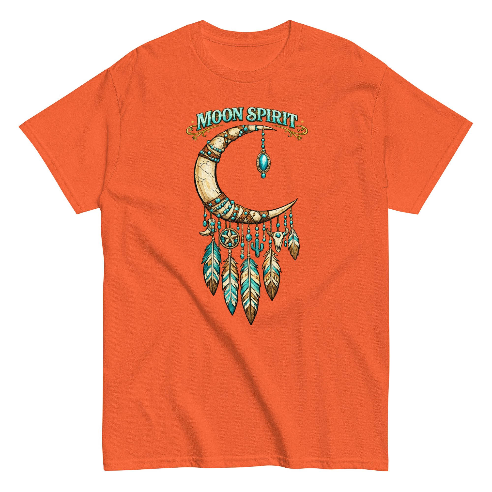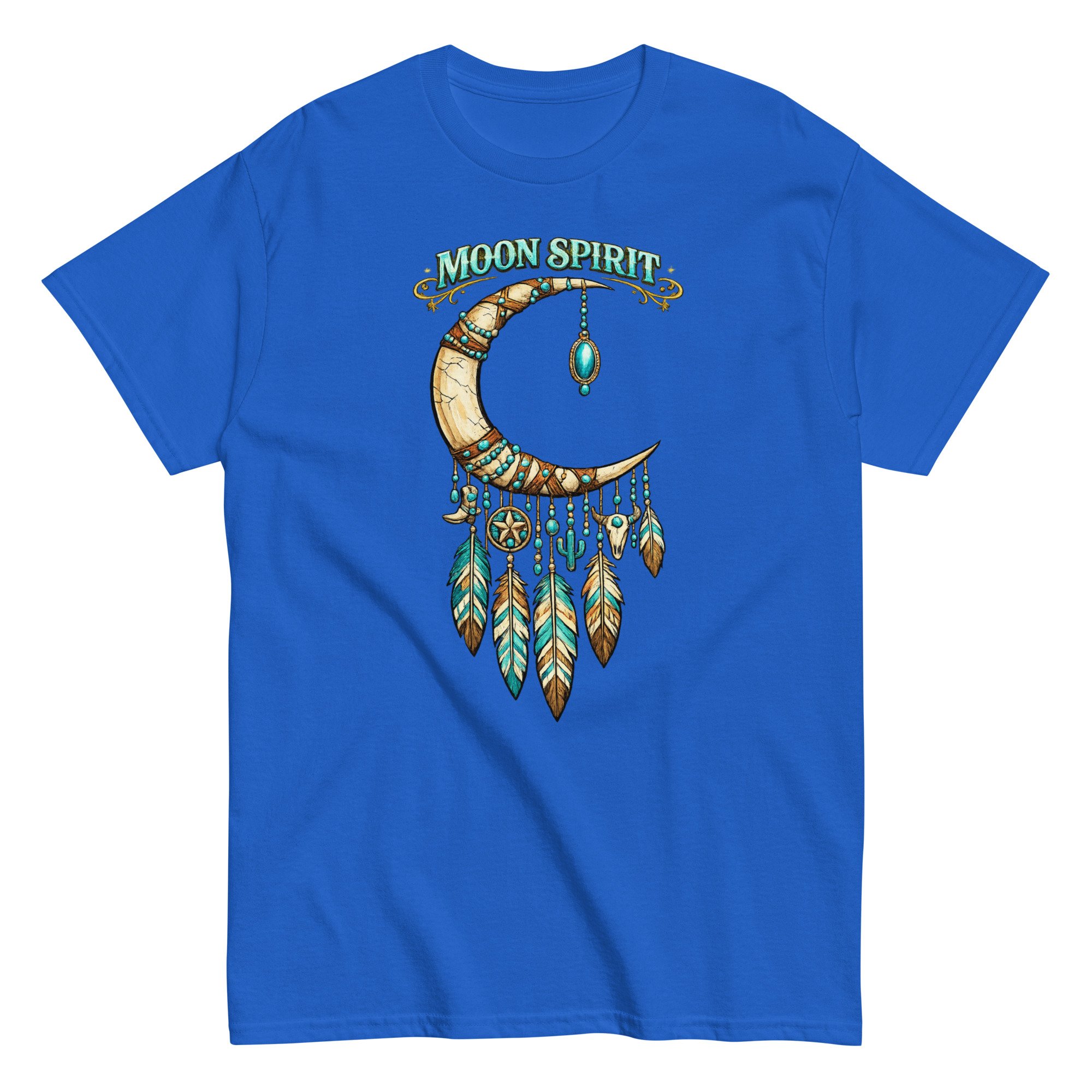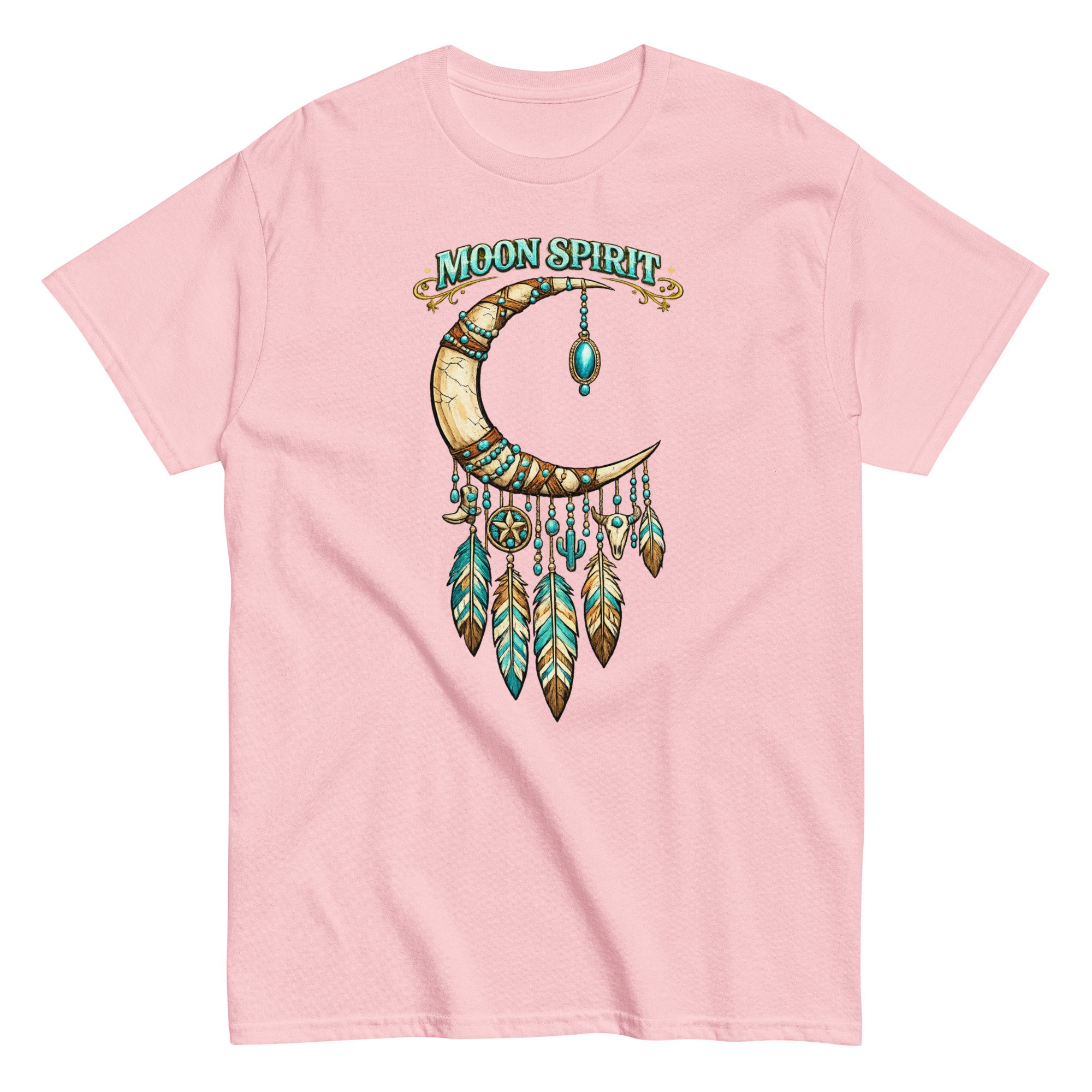 Moon Spirit Cowgirl T-Shirt – Western Crescent Moon Feather Graphic Tee, Turquoise Southwest Boho
