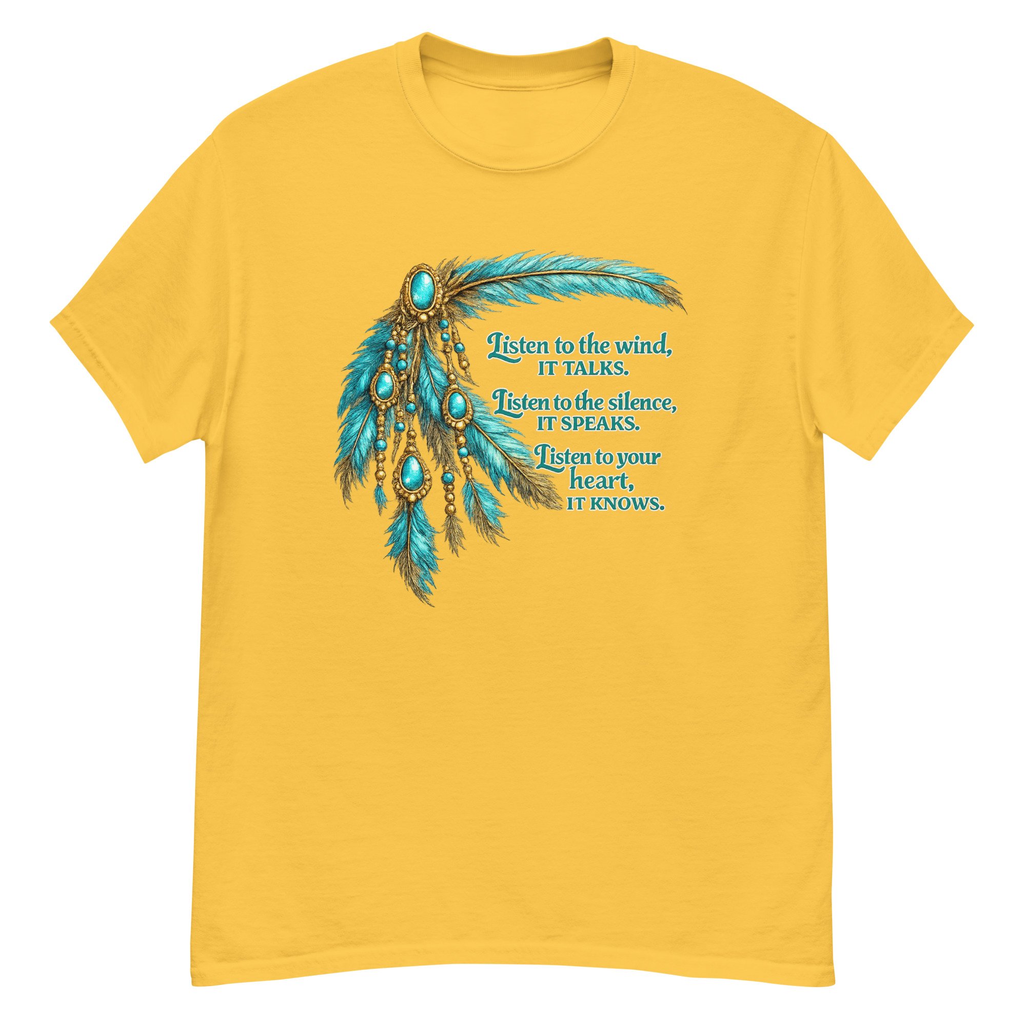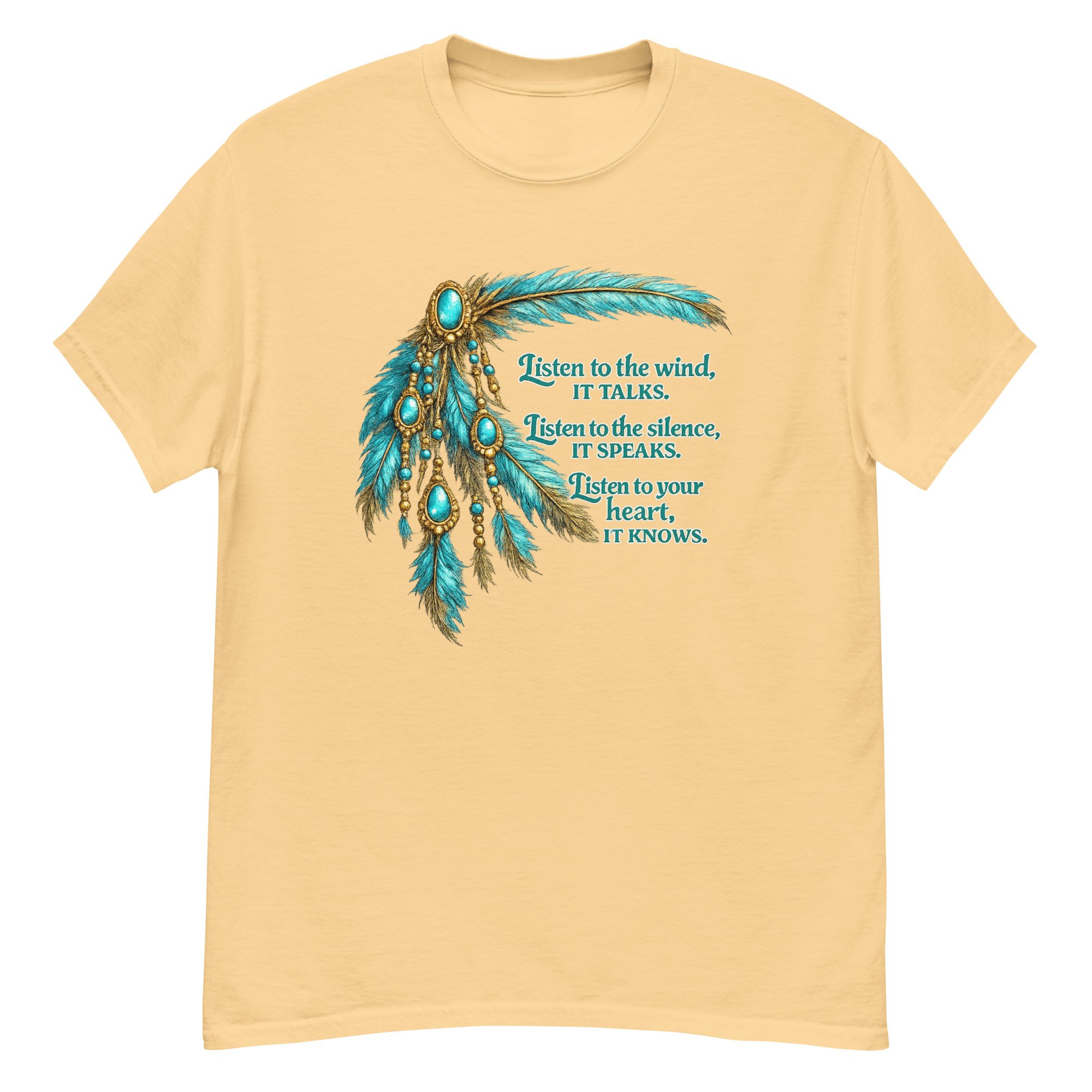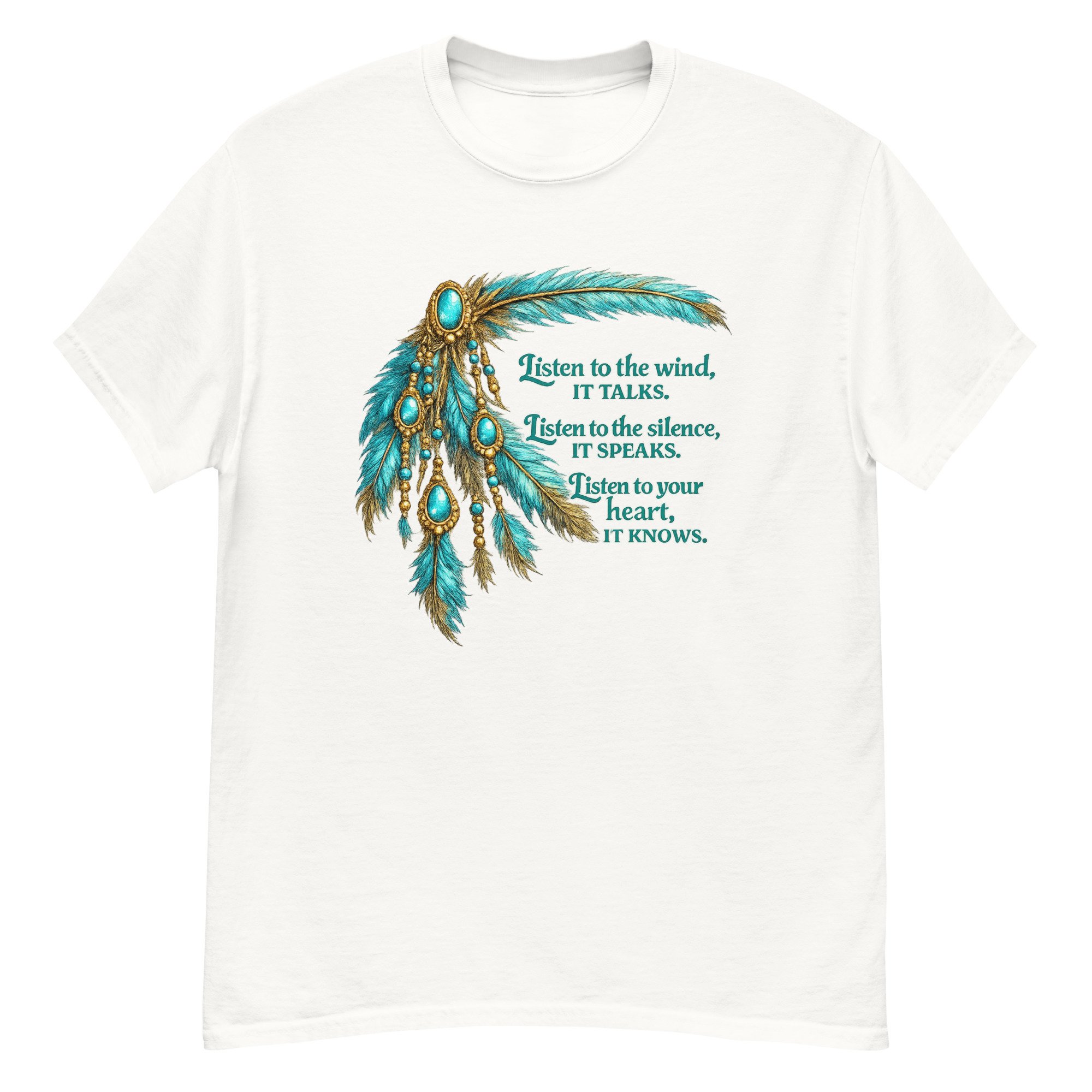 Listen to the Wind Western Feather Shirt – Inspirational Boho Cowgirl Quote T-Shirt