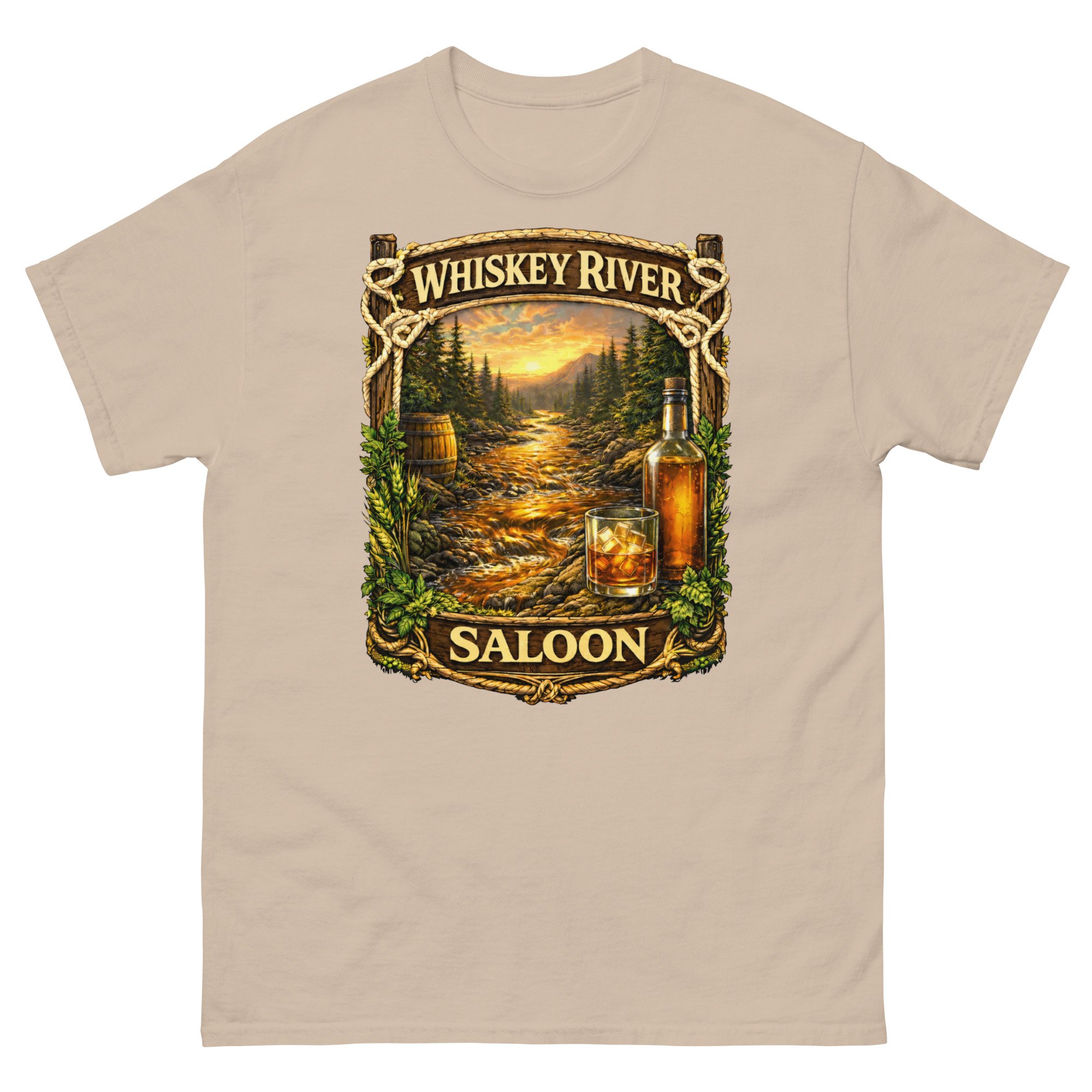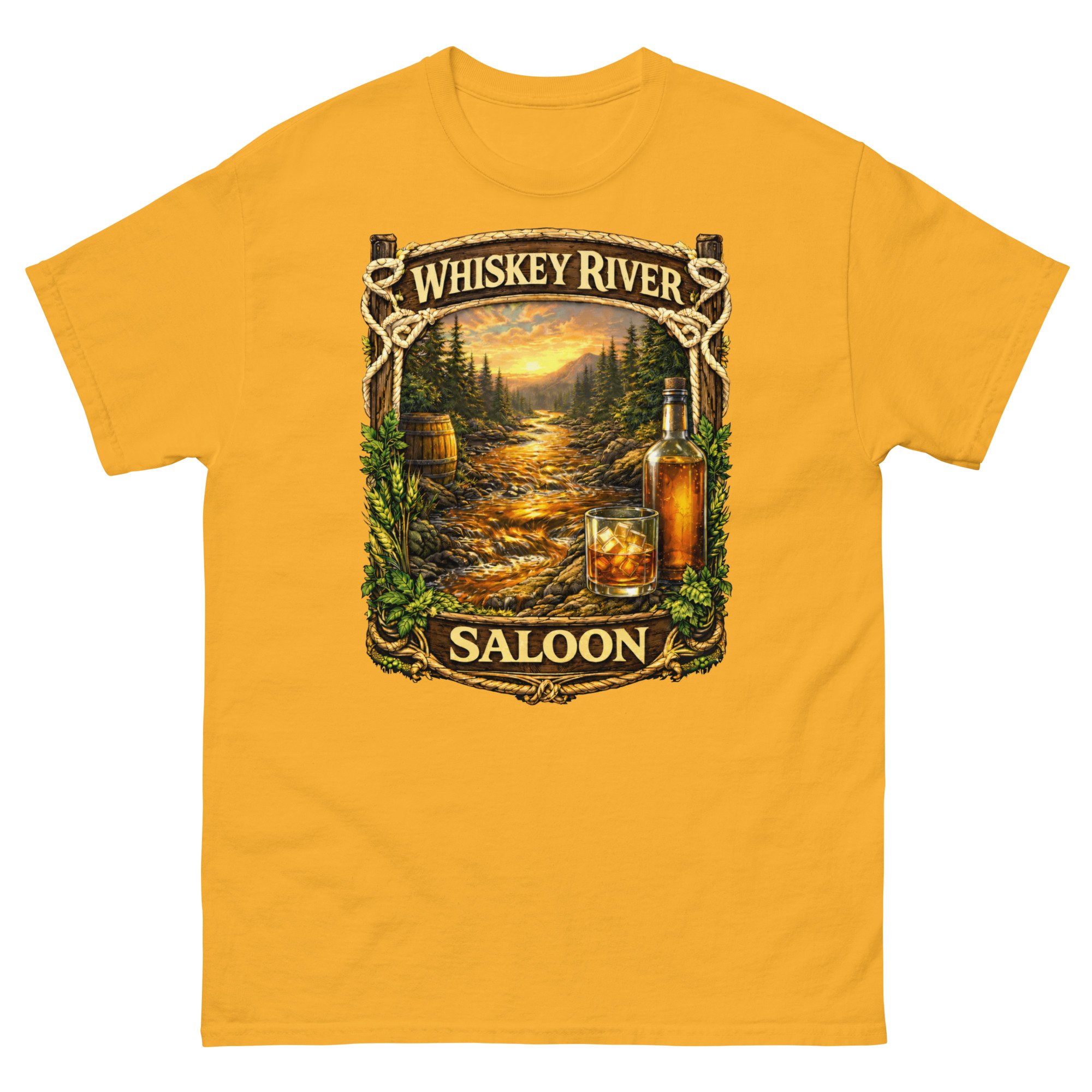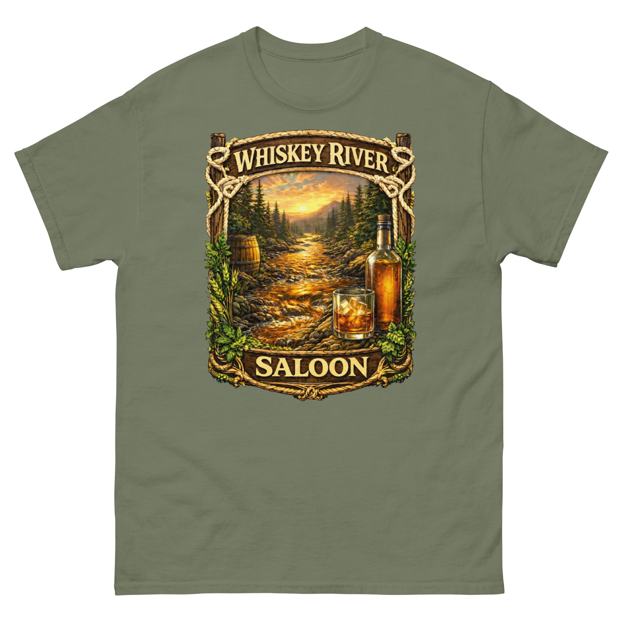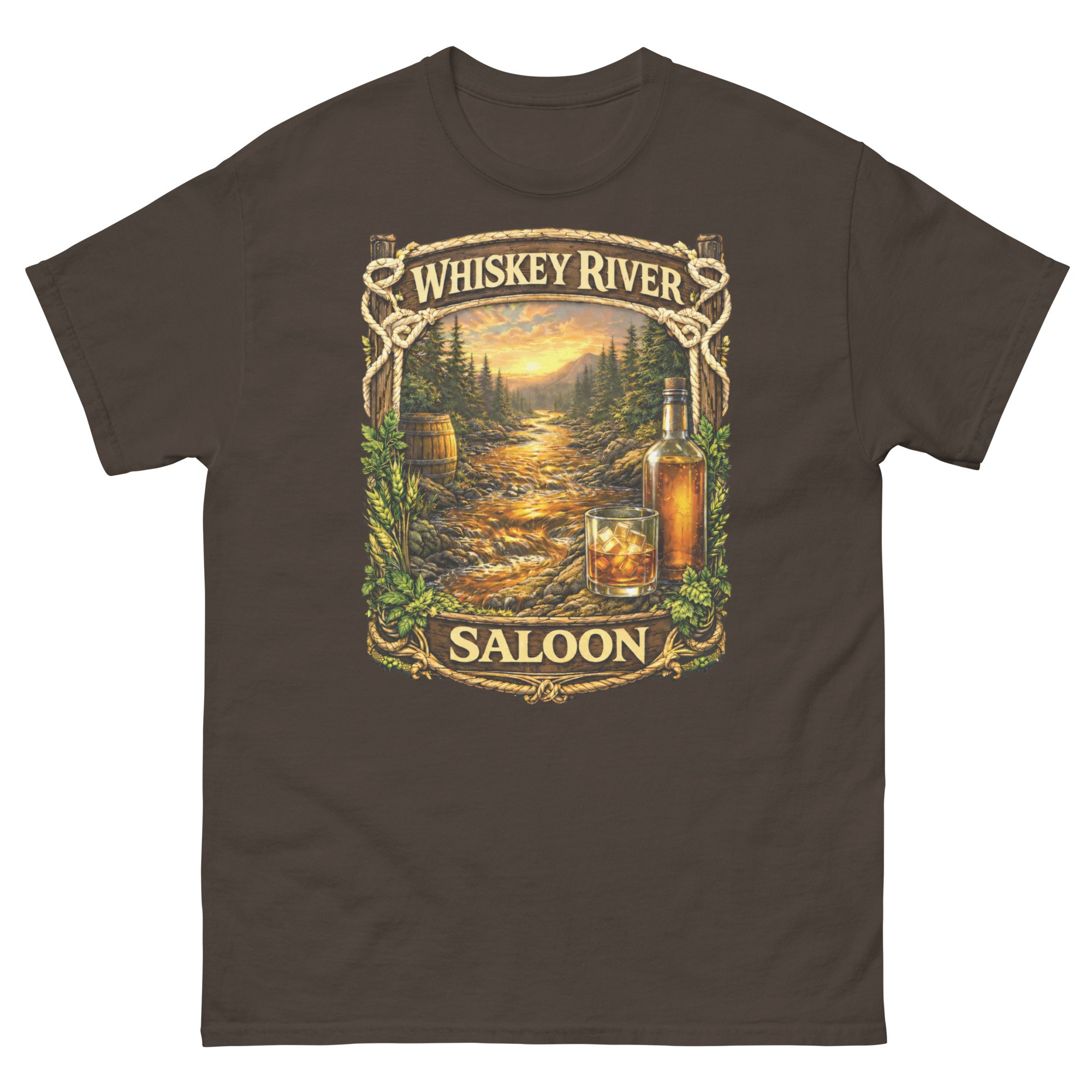Whiskey River Saloon Unisex T-Shirt | Western Bar Graphic Tee | Rustic Cowboy Saloon Shirt