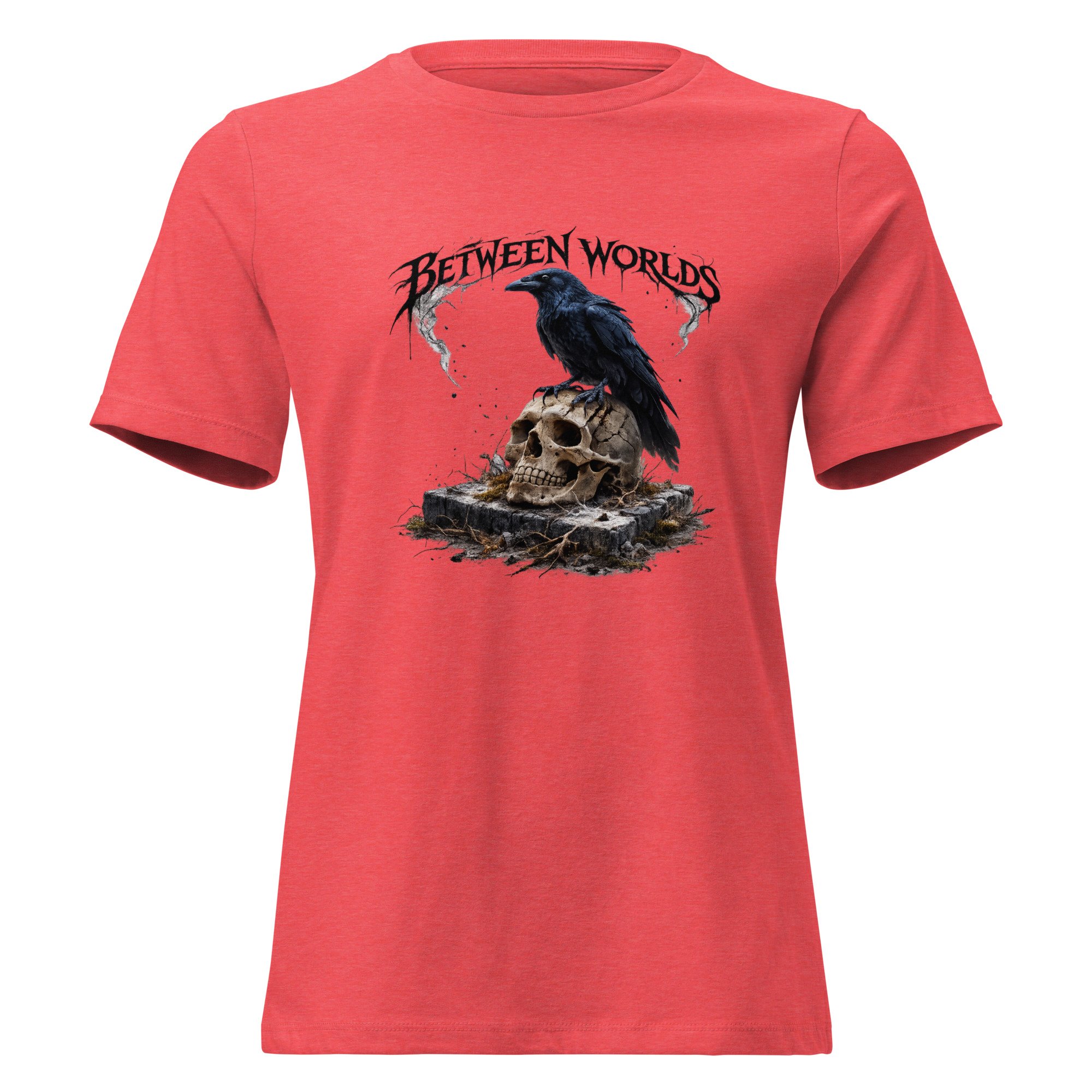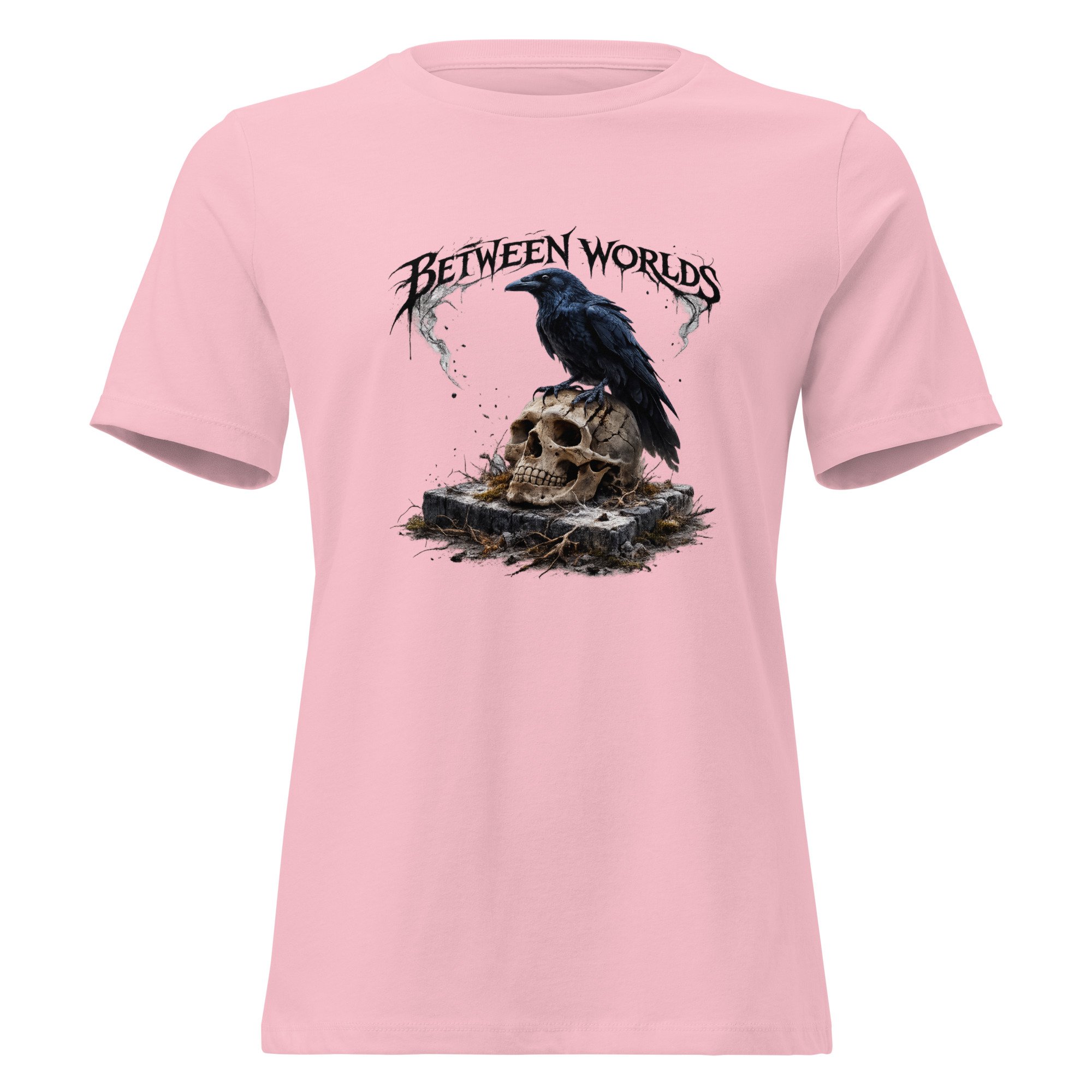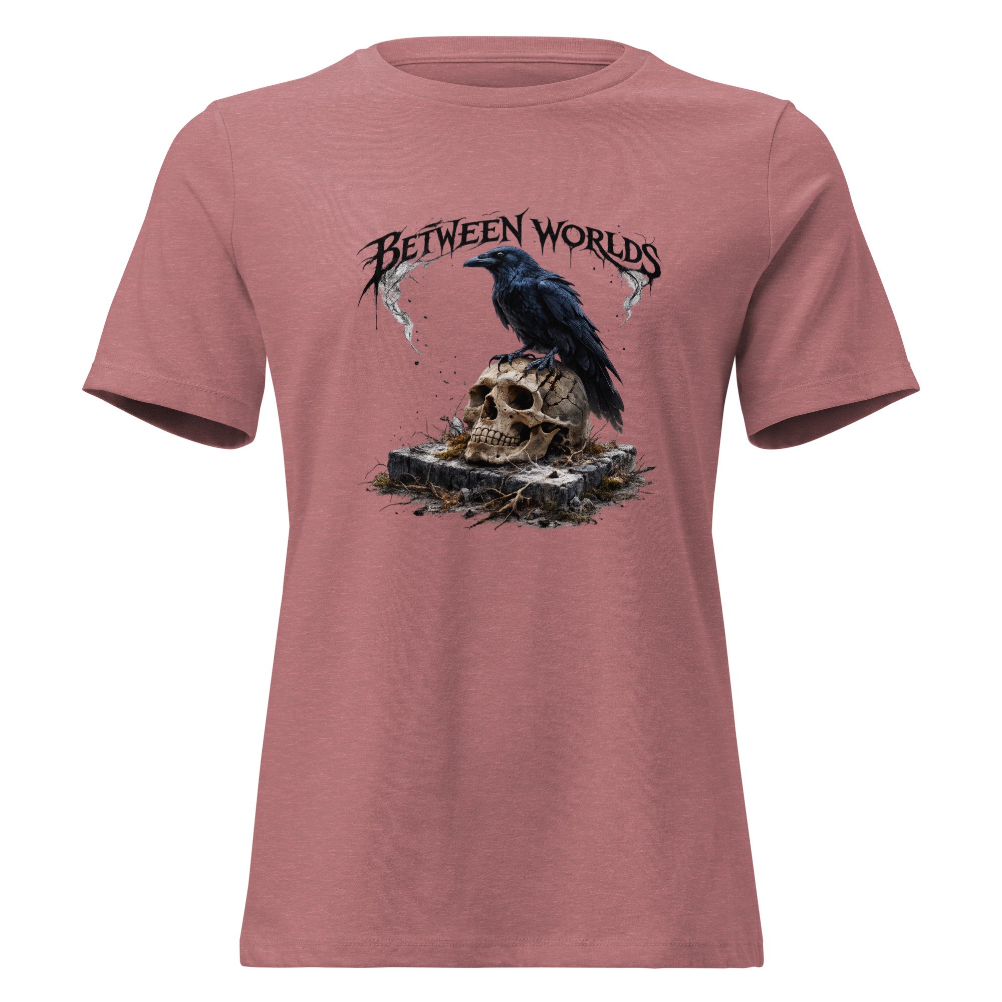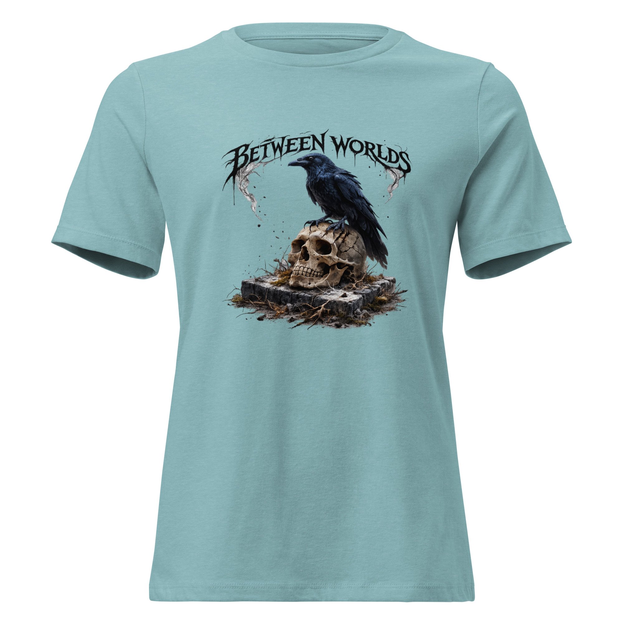 Between Worlds Raven Women's Shirt – Gothic Crow Skull Graphic Tee | Dark Raven Artwork