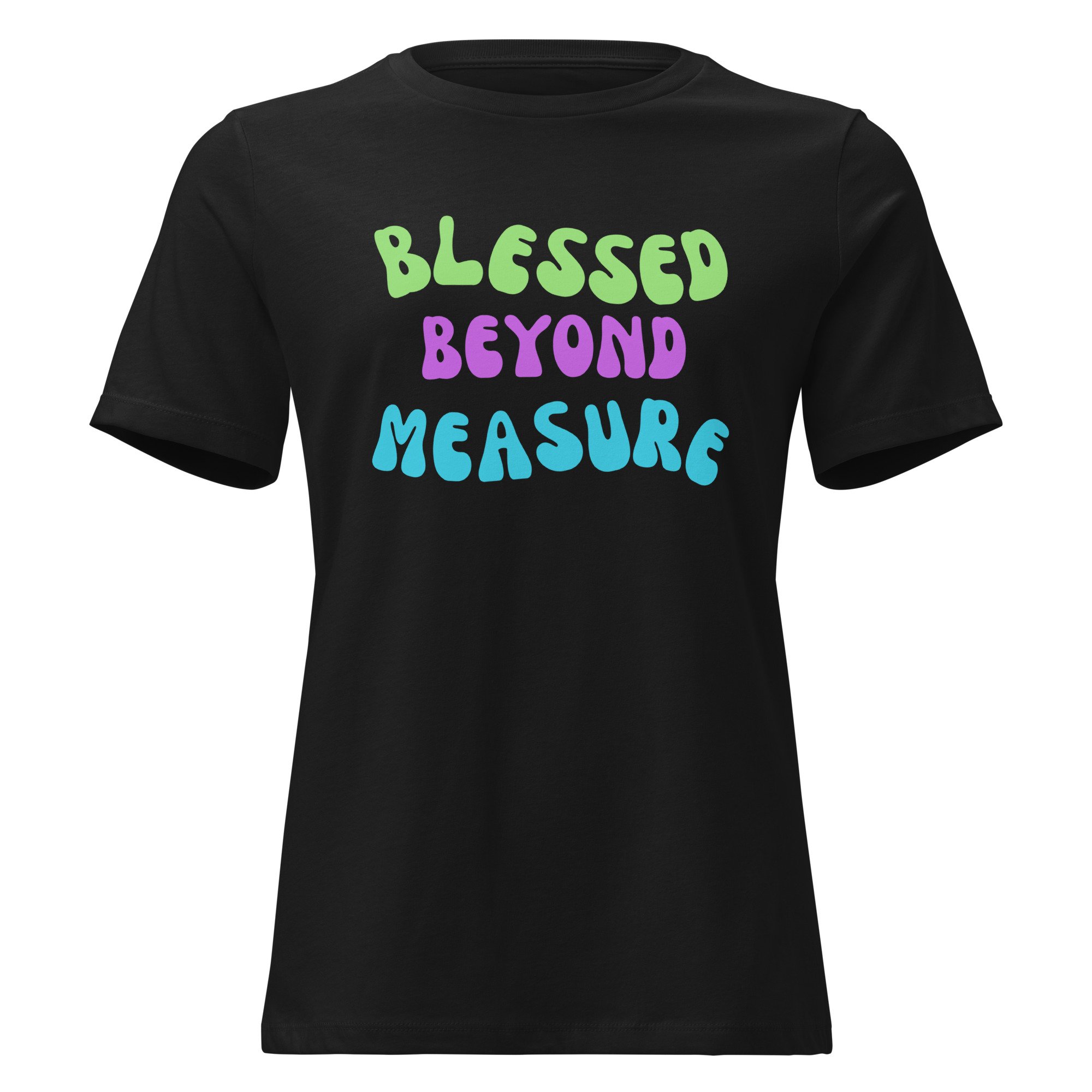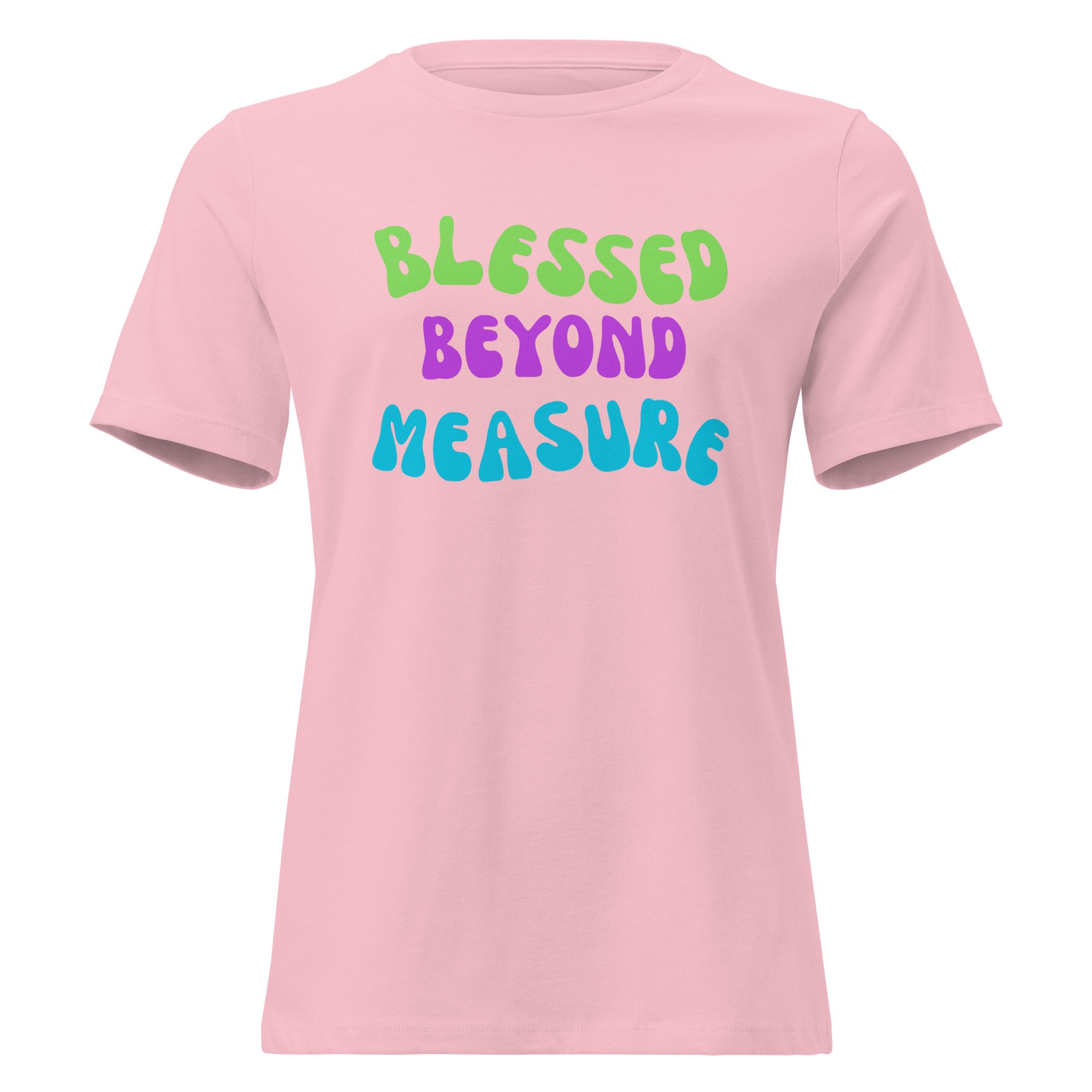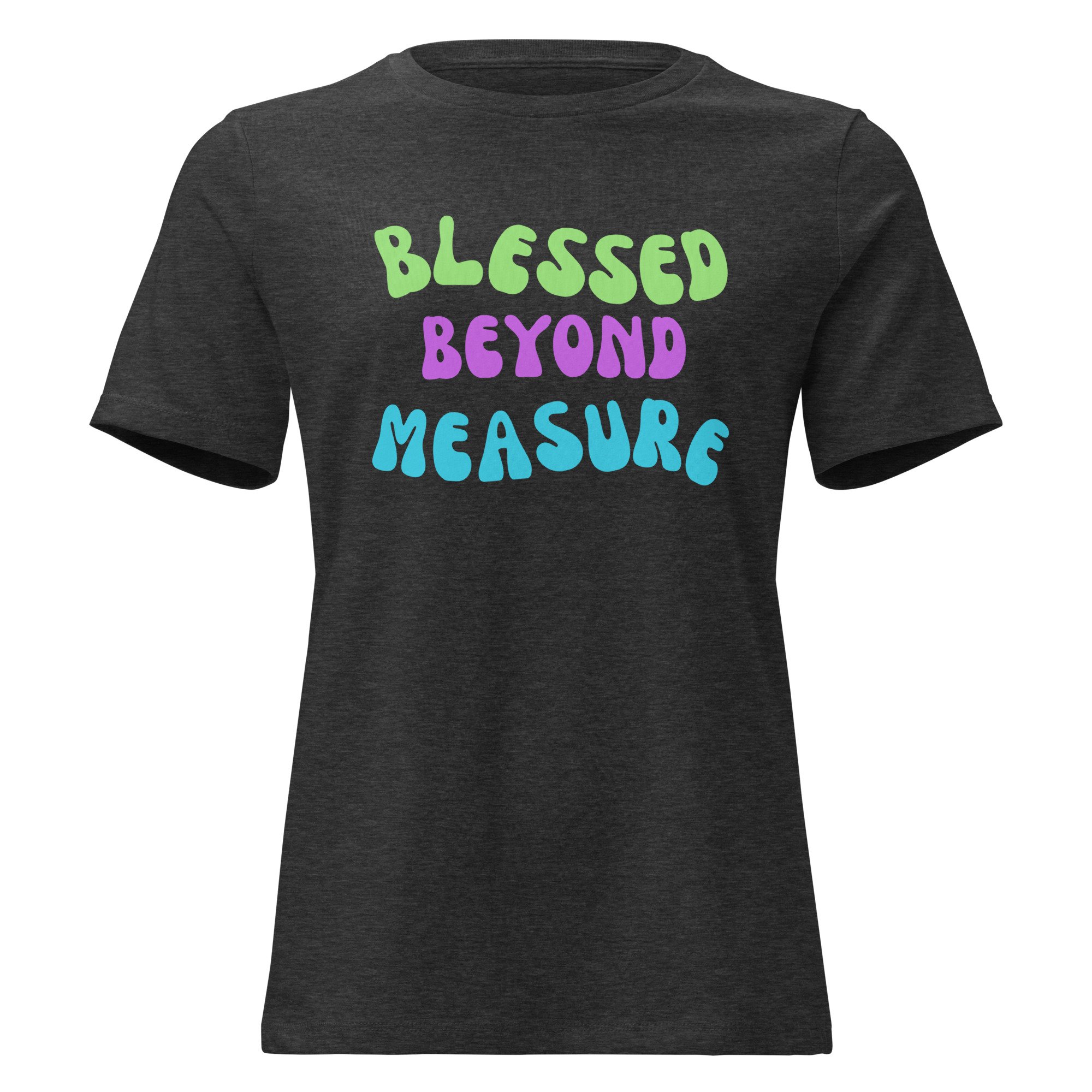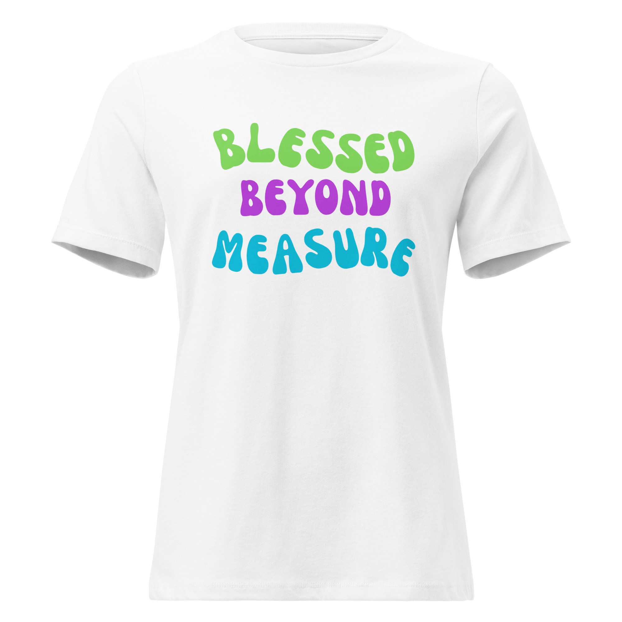 Women's Relaxed T-Shirt, Blessed Beyond Measure Colorful Faith Uplifting Positive Message Tee