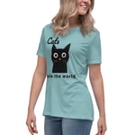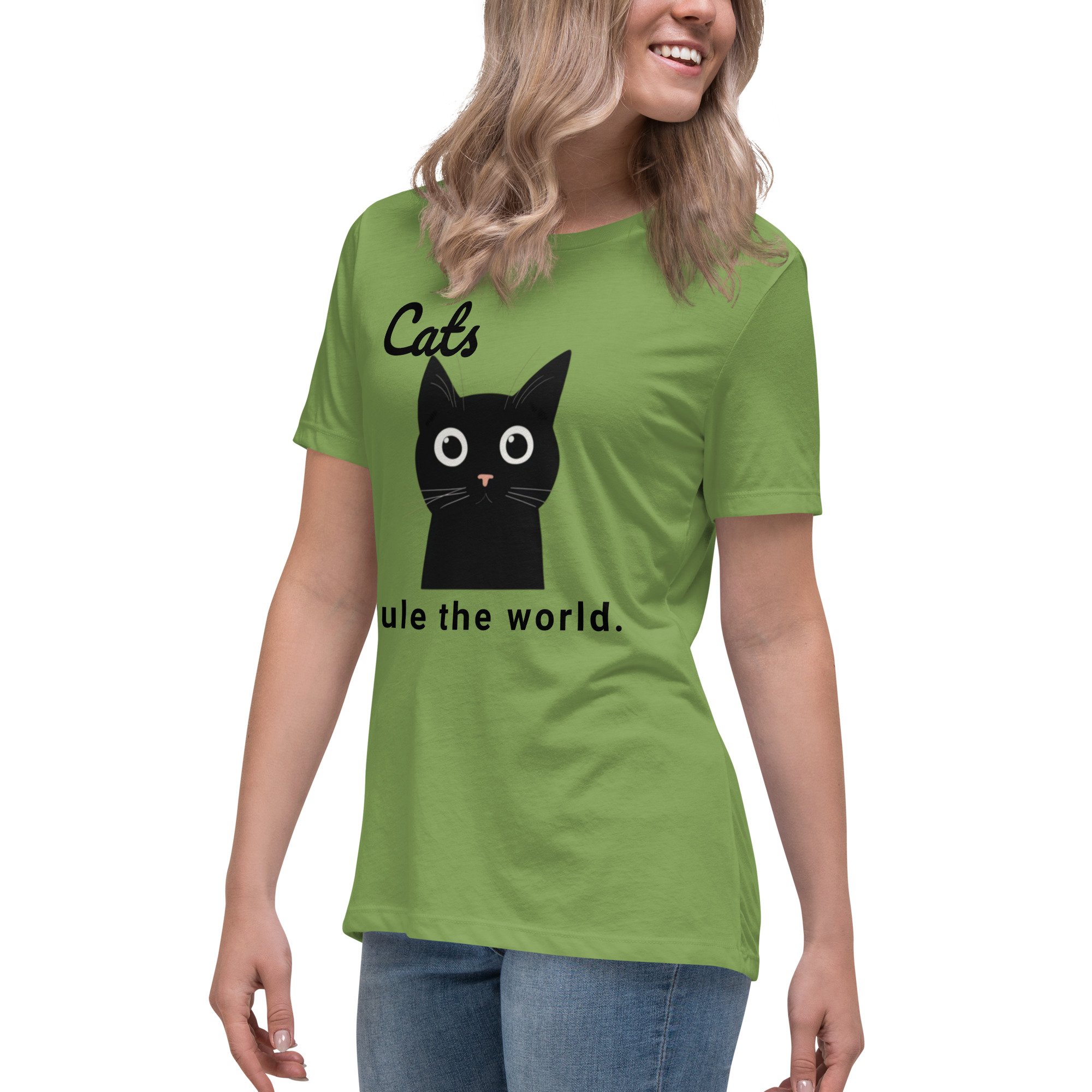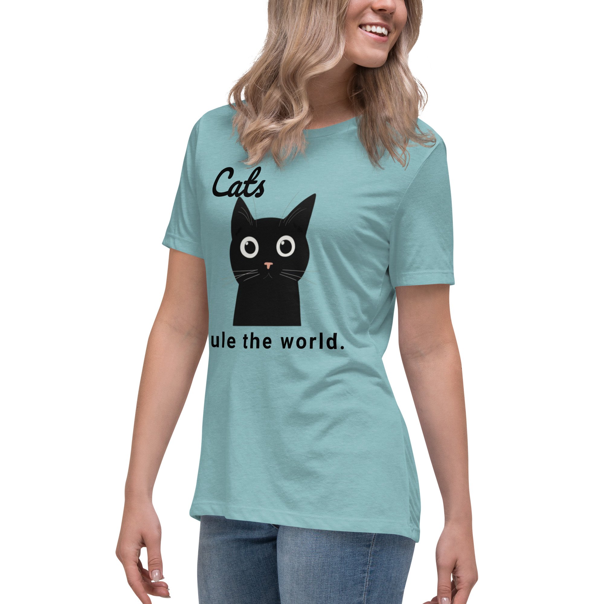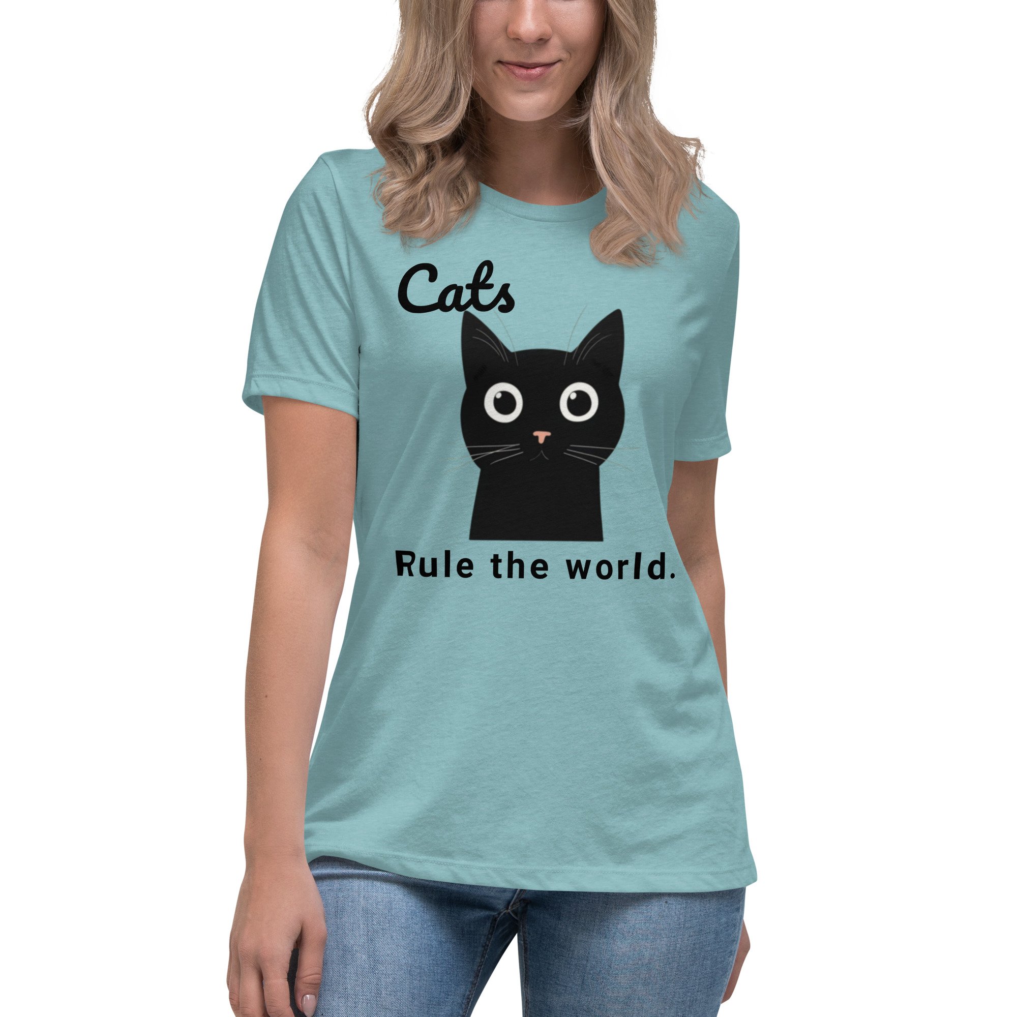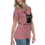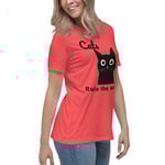 Women's Relaxed T-Shirt, Cats Rule the World T-Shirt | Cute Black Cat Funny Graphic Tee