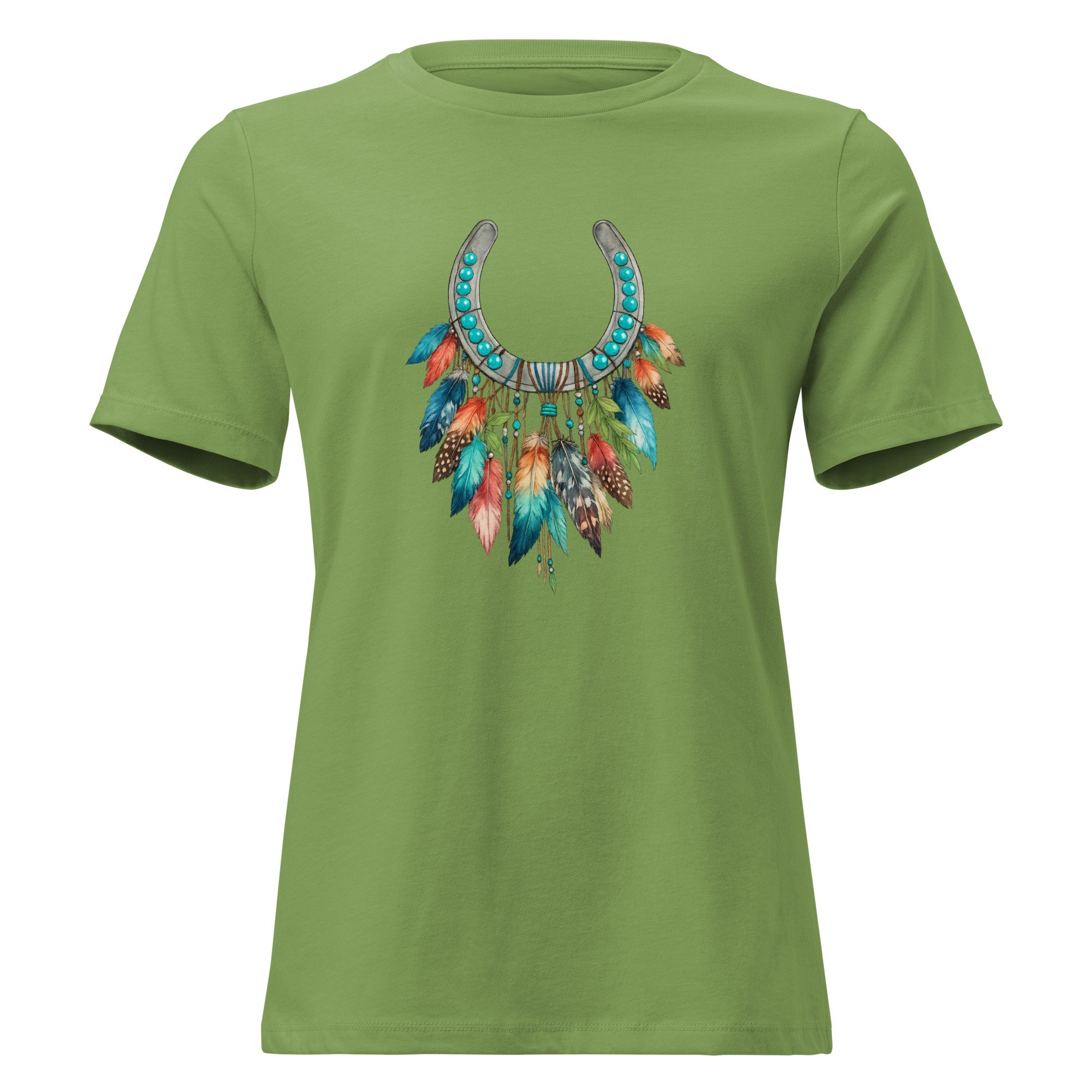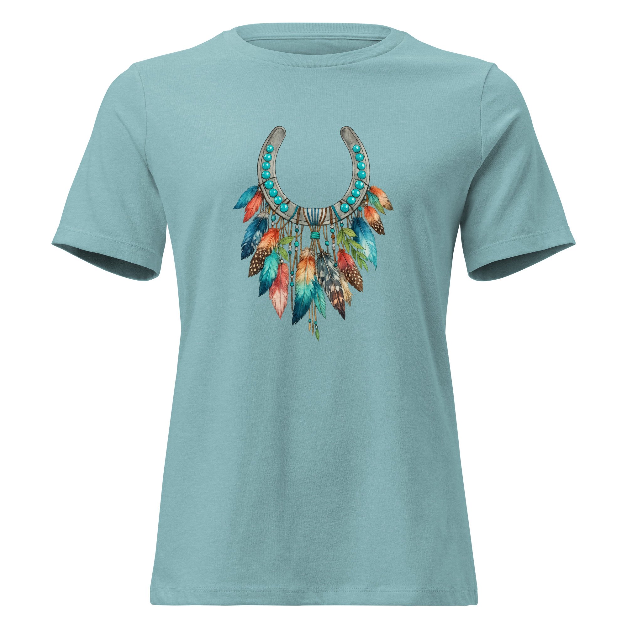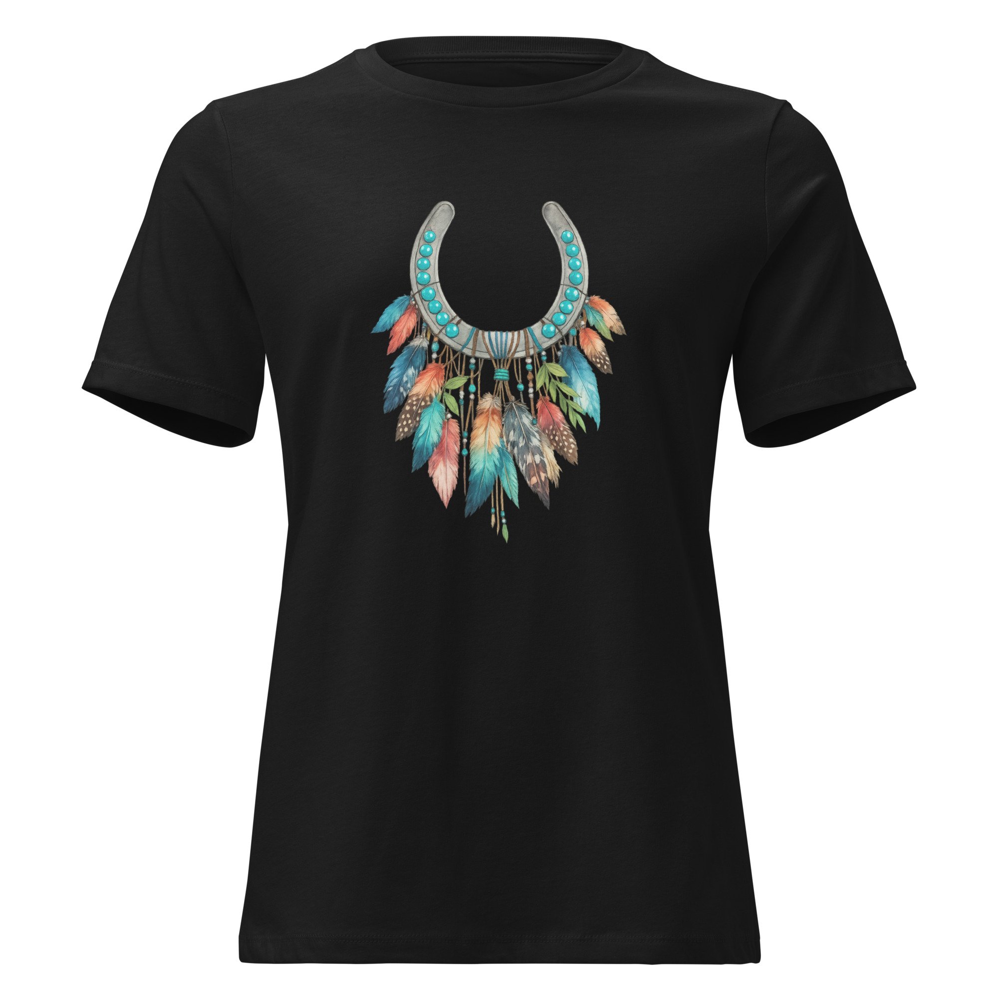 Women's Relaxed T-Shirt, Feathers and Turquoise Horseshoe Tee, Western