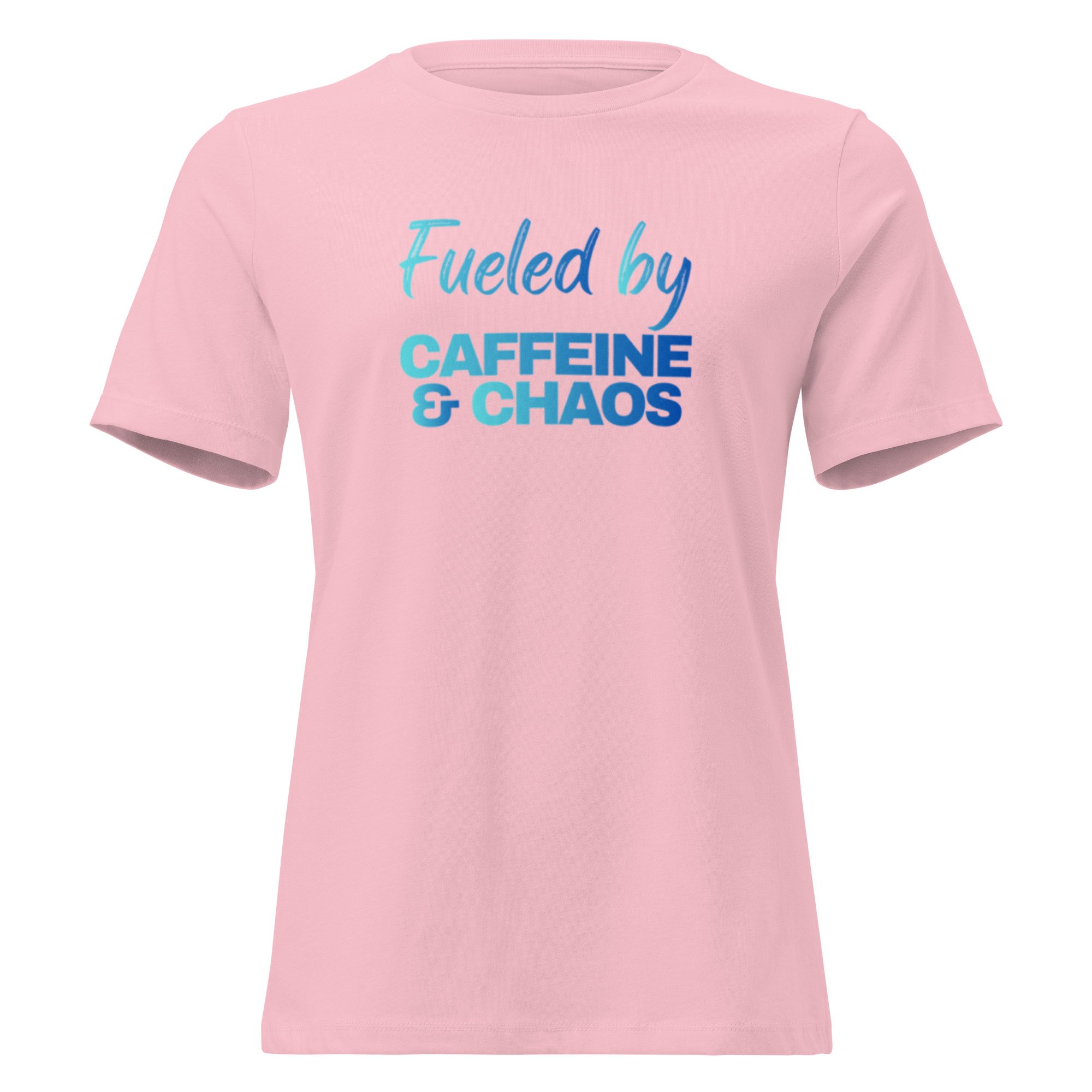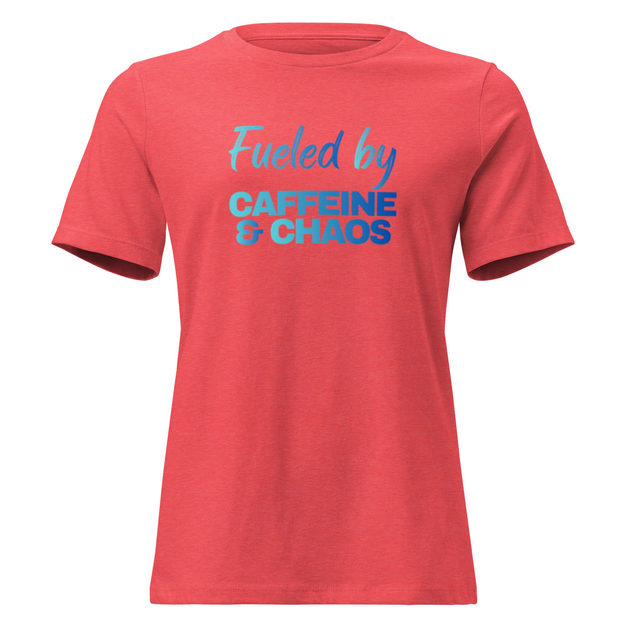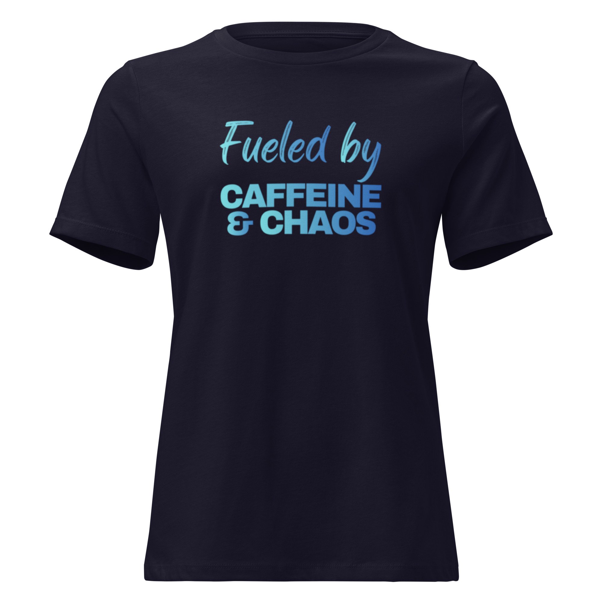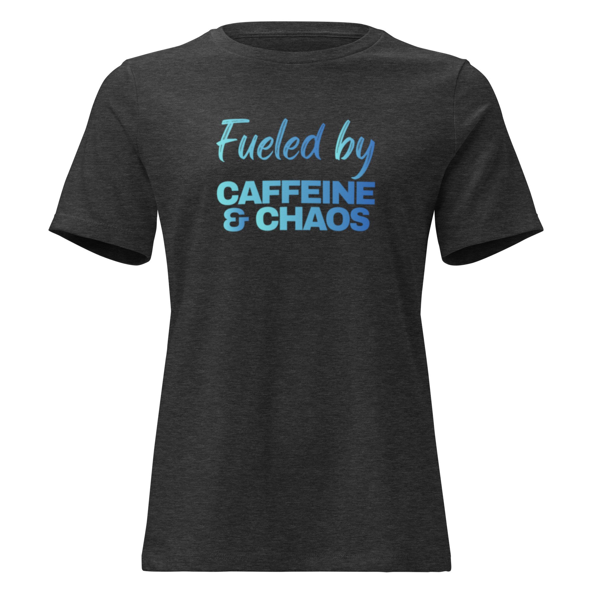 Women's Relaxed T-Shirt, Fueled by Caffeine & Chaos T-Shirt | Funny Coffee Lover Chaos Humor Tee
