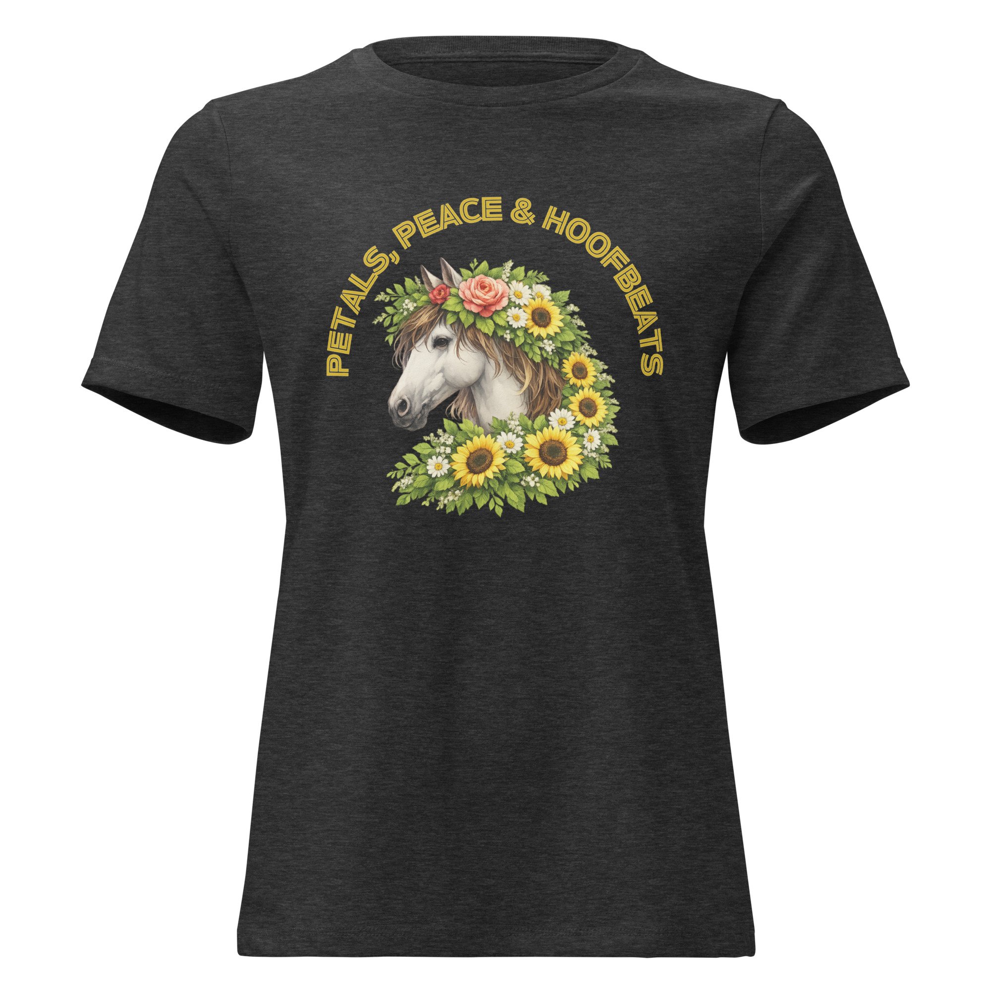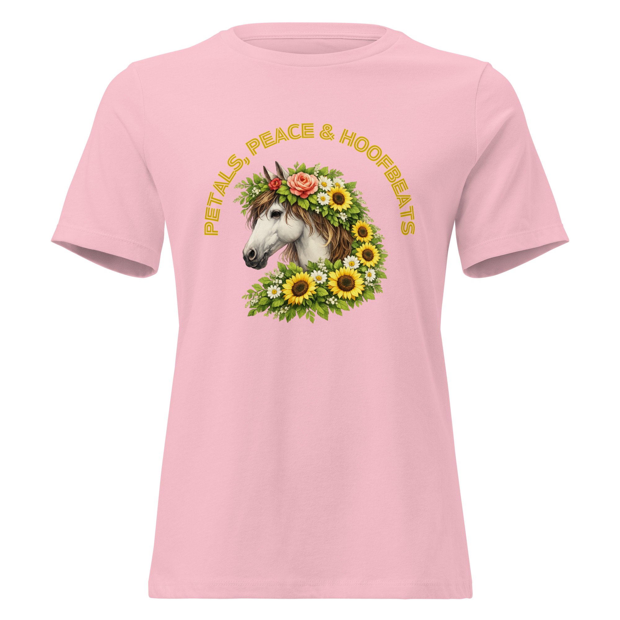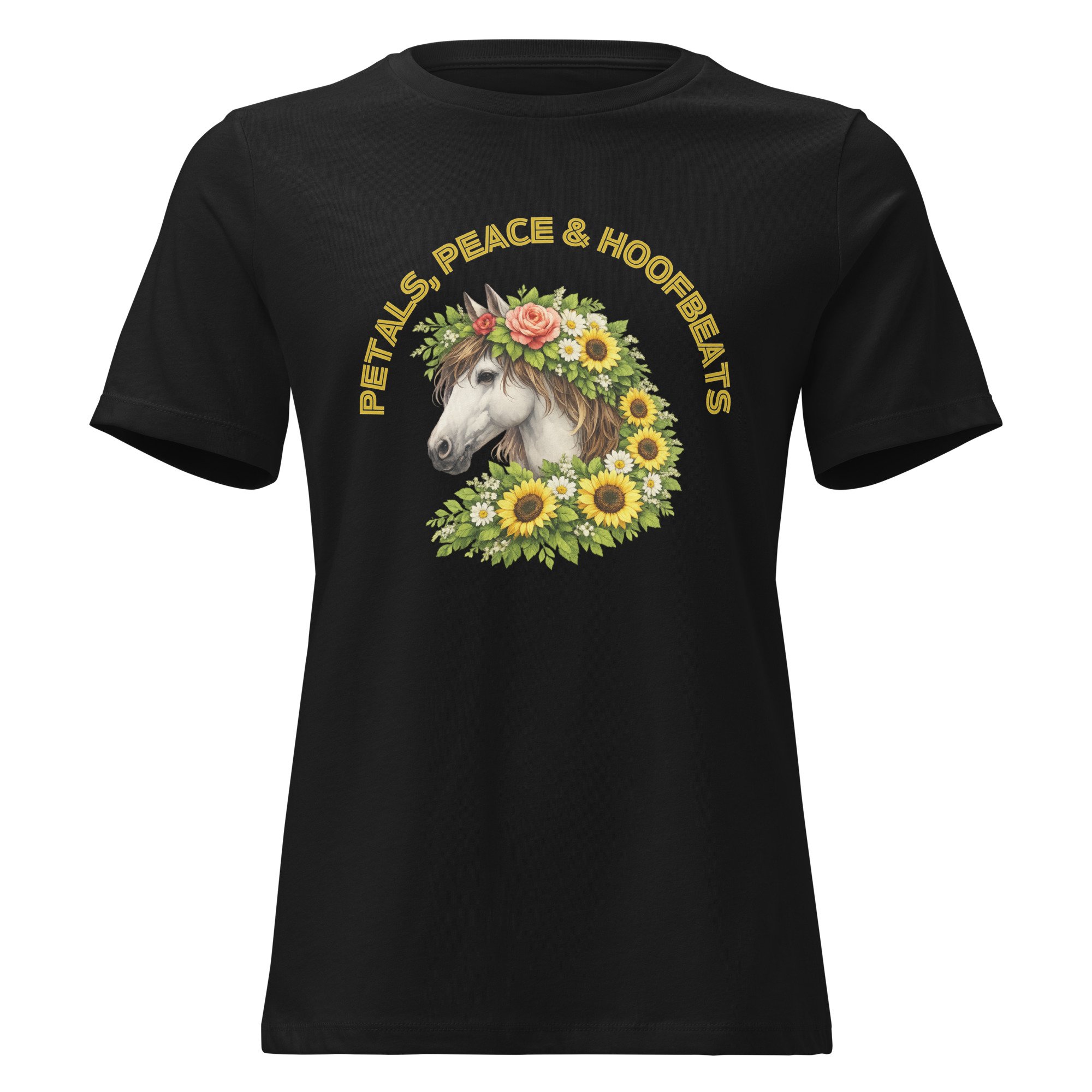 Women's Relaxed T-Shirt, Petals, Peace and Hoofbeats Horse Tee