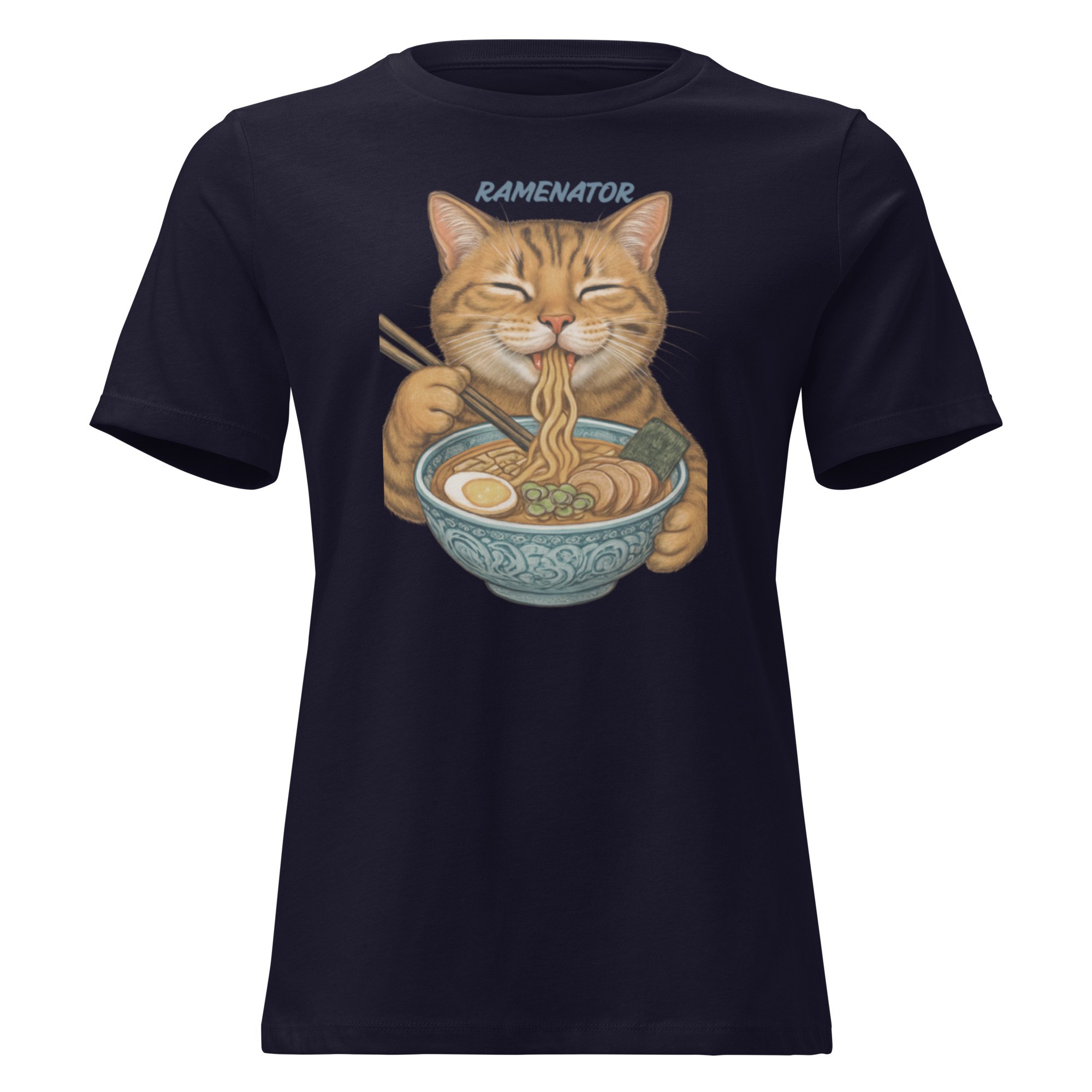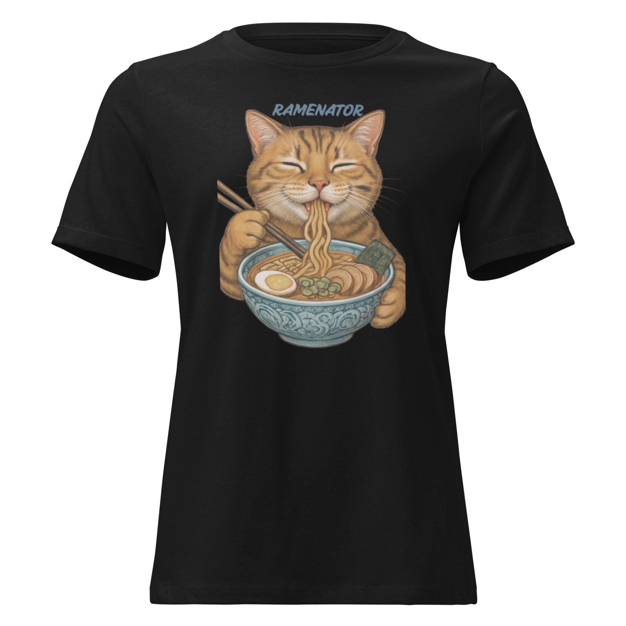 Women's Relaxed T-Shirt, Ramenator Cat T-Shirt | Funny Ramen Cat Graphic Tee