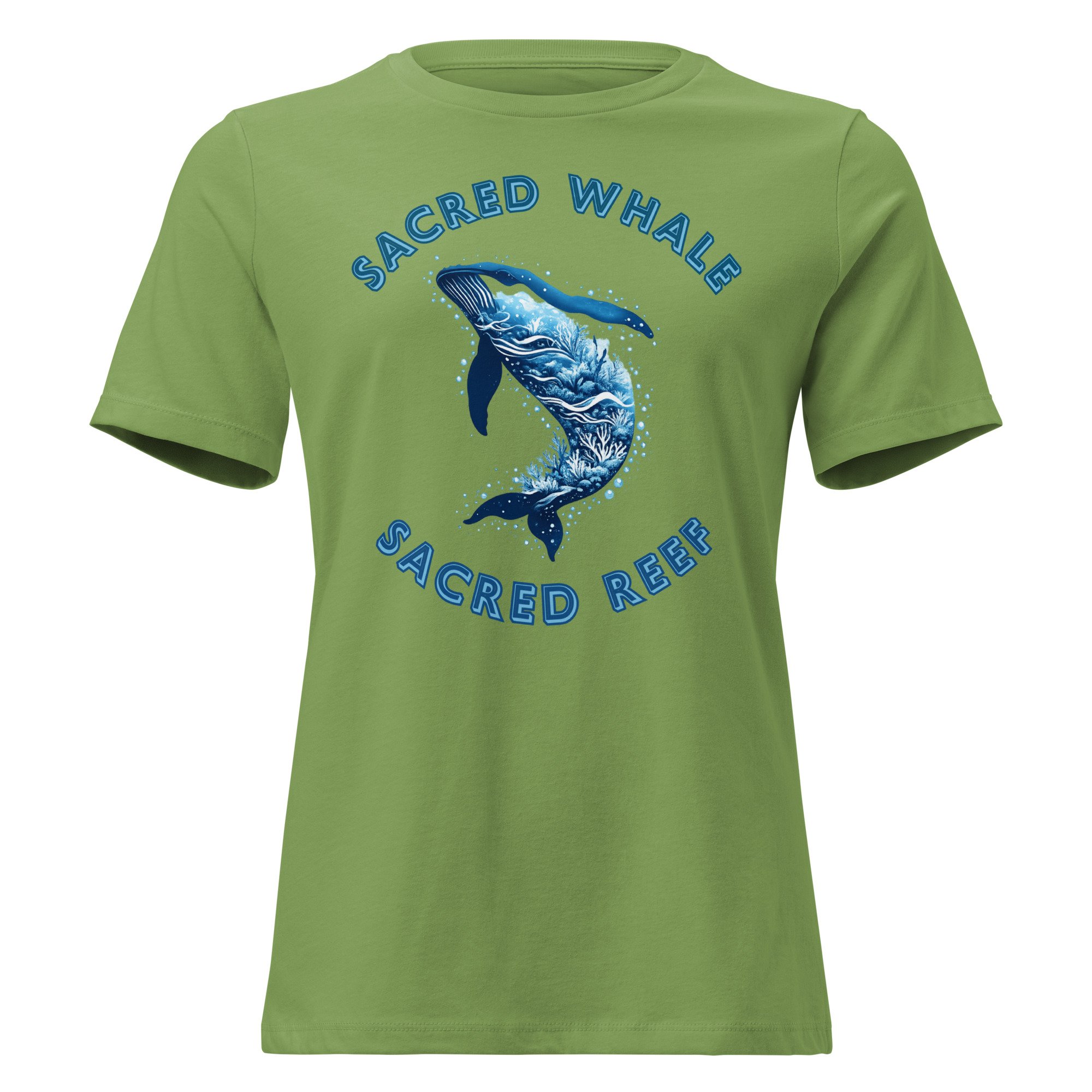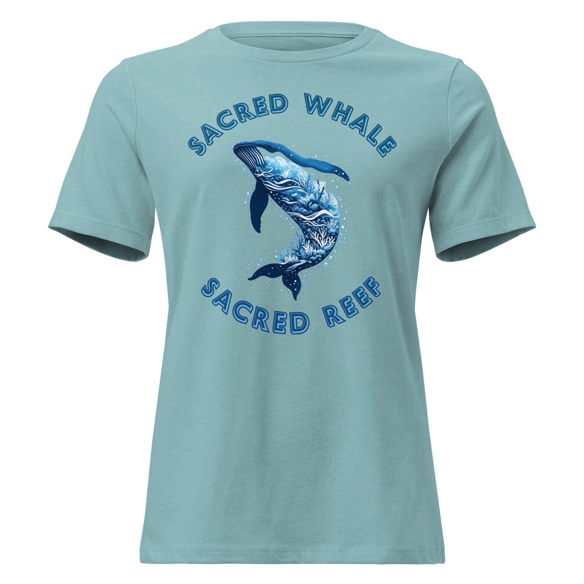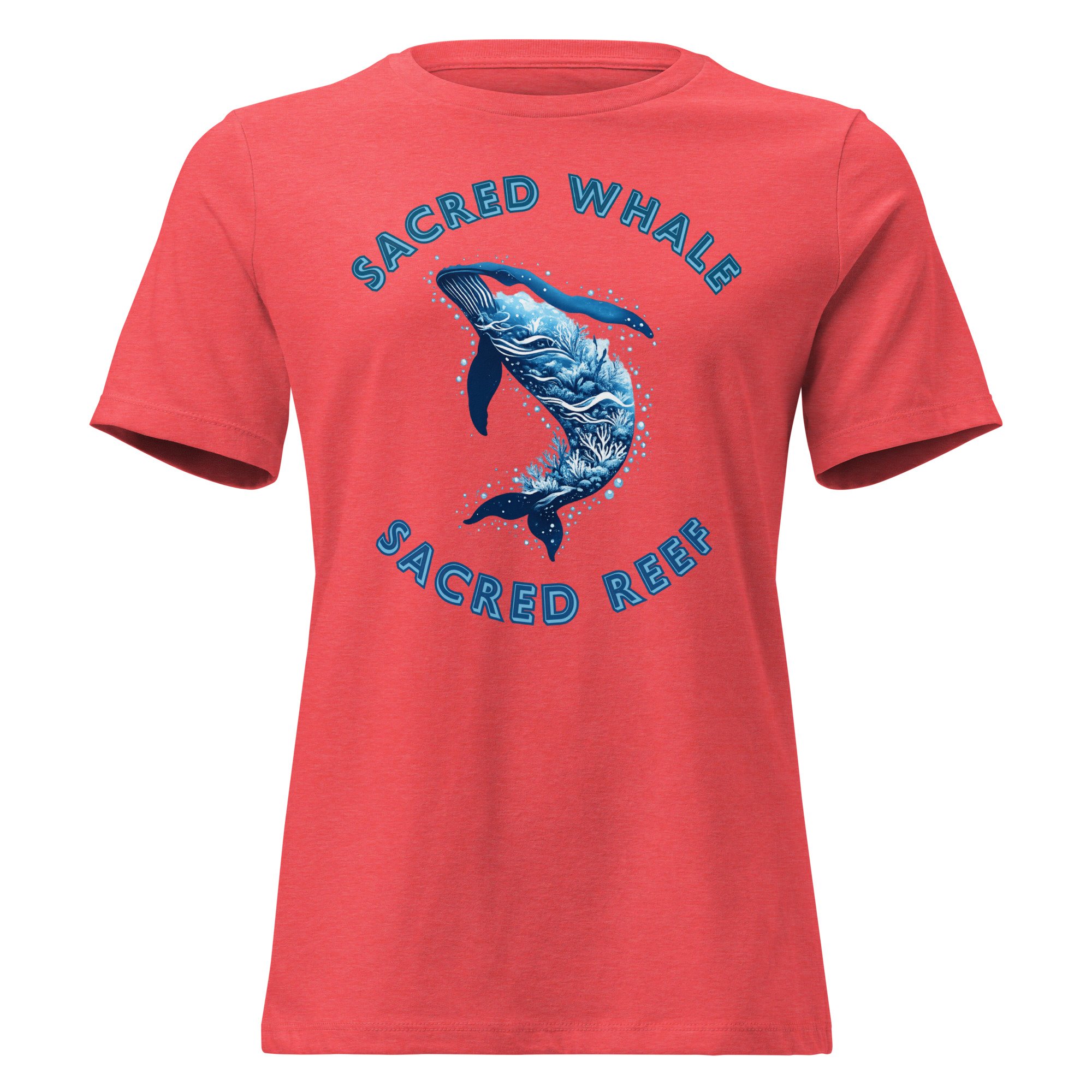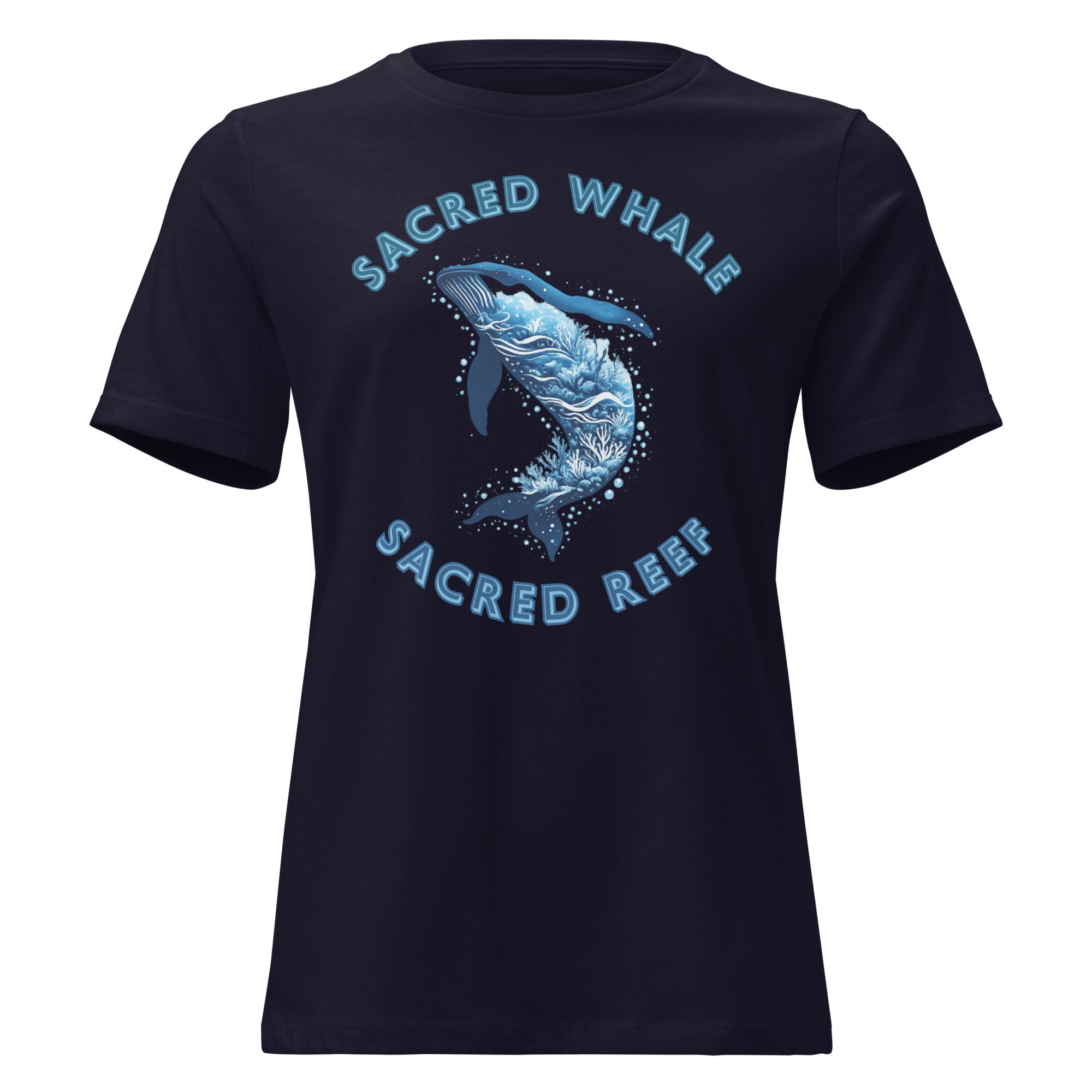Women's Relaxed T-Shirt, Sacred Whale Sacred Reef, Ocean Coral Reef Whale Art Tee