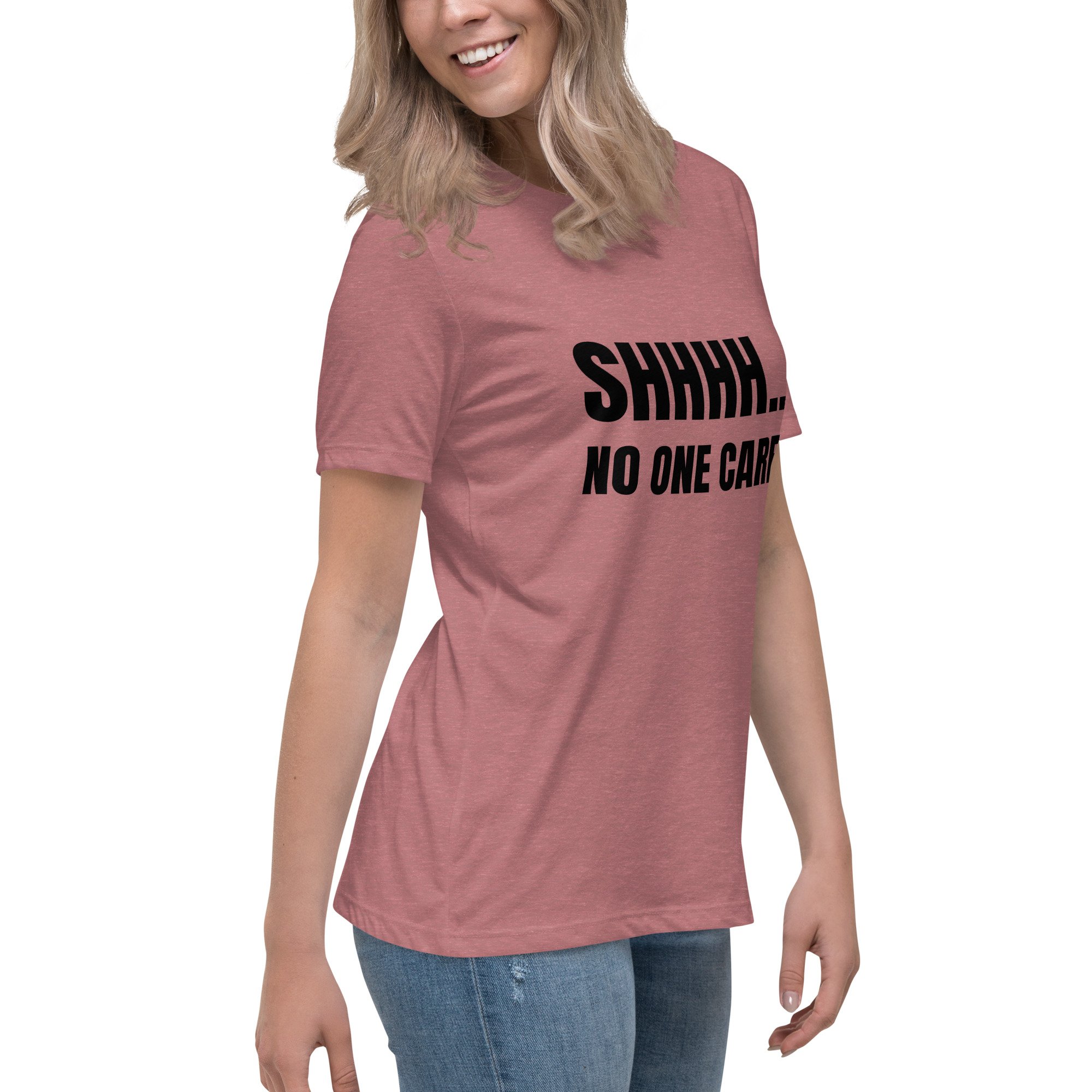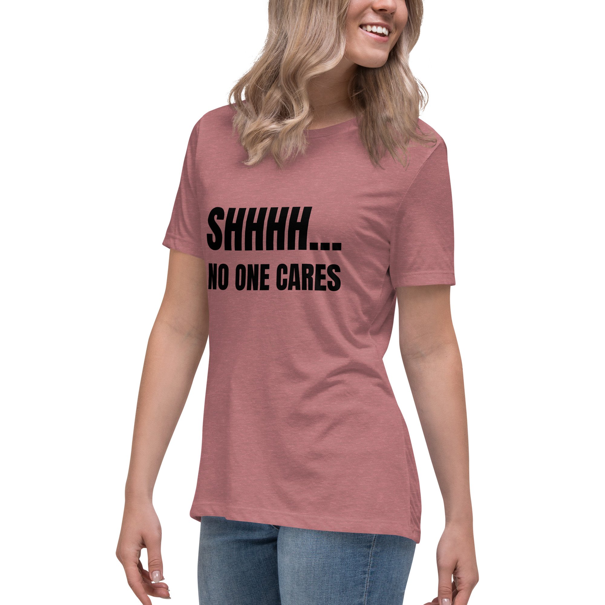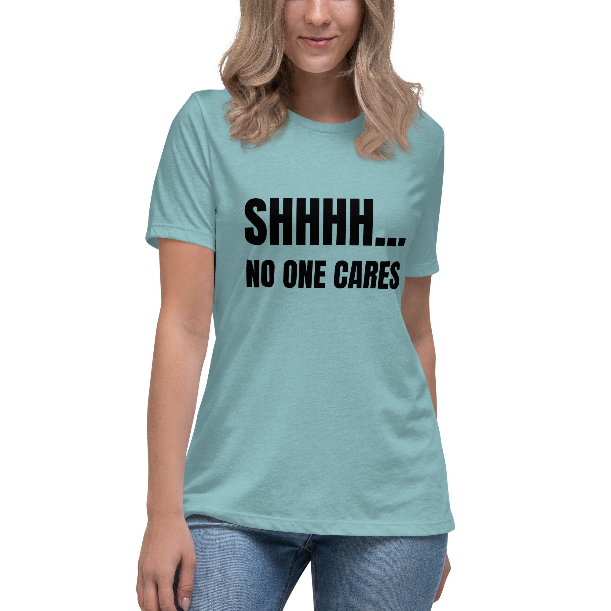 Women's Relaxed T-Shirt, Shhhh… No One Cares Shirt | Funny Sarcastic Humor Tee
