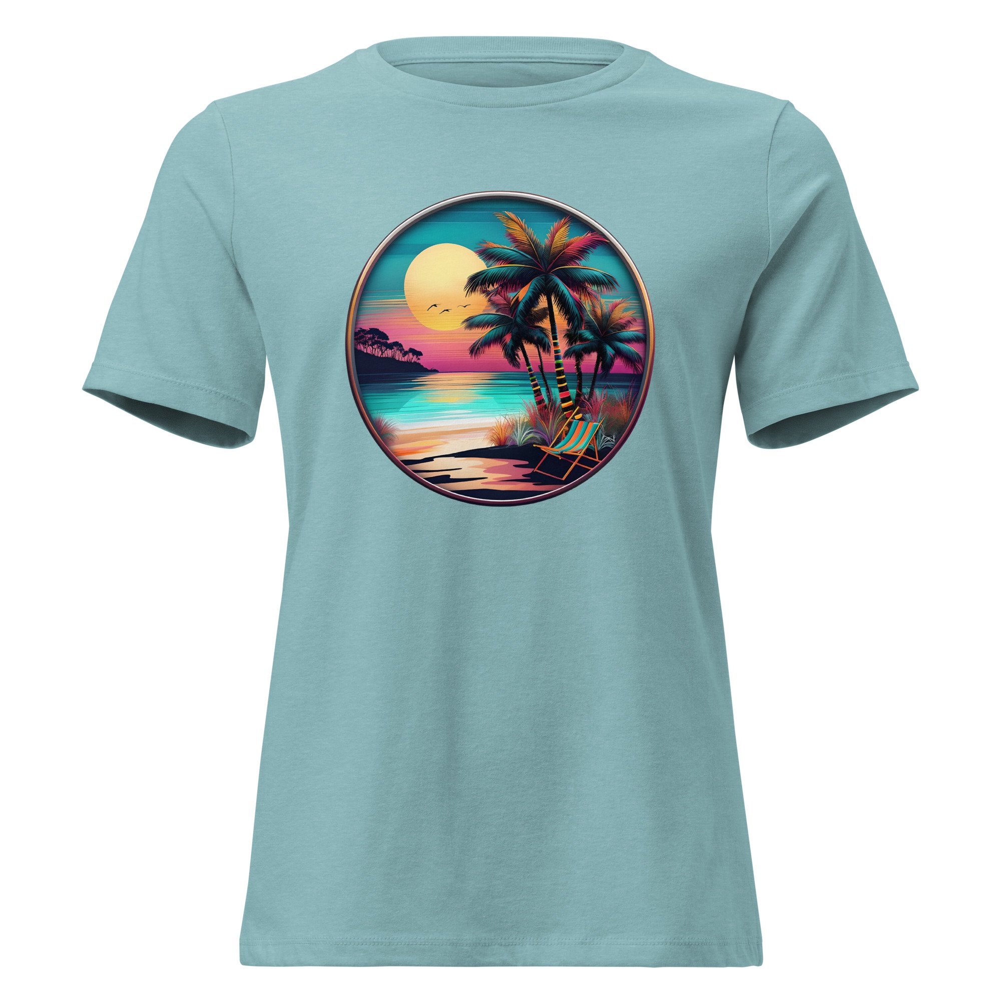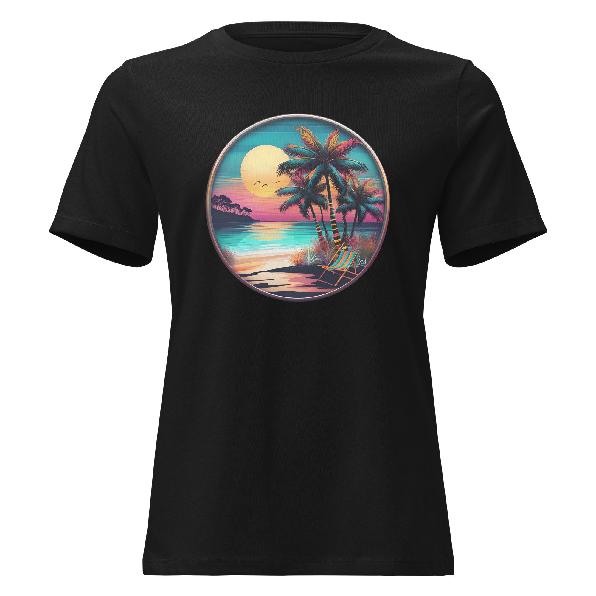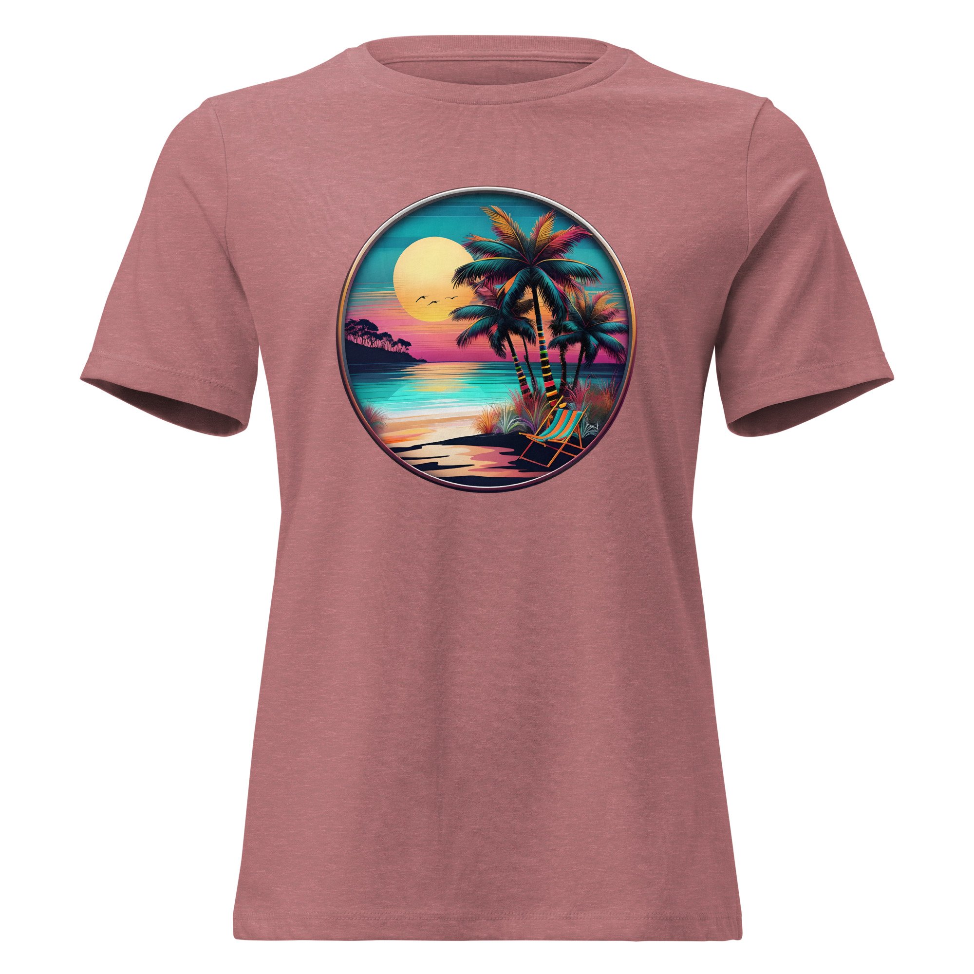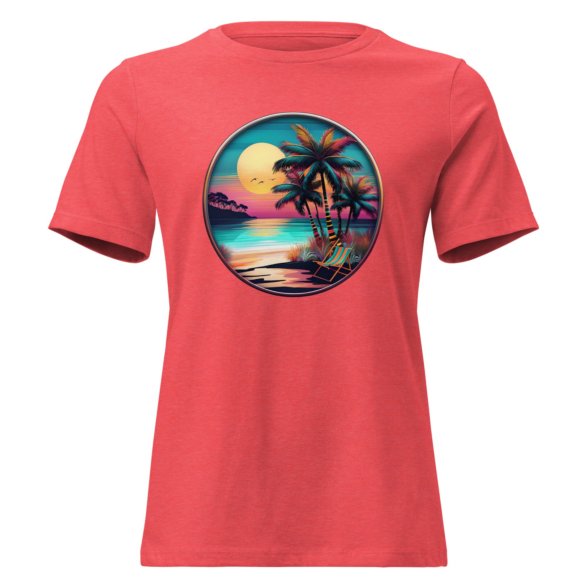Women's Relaxed T-Shirt, Tropical Beach Sunset tee