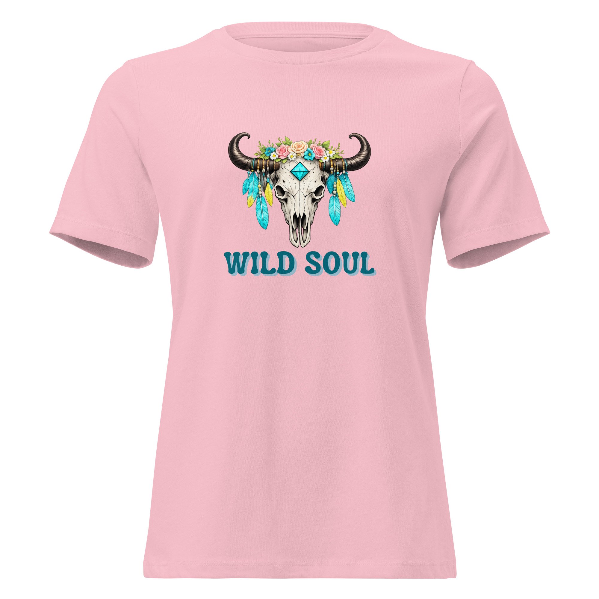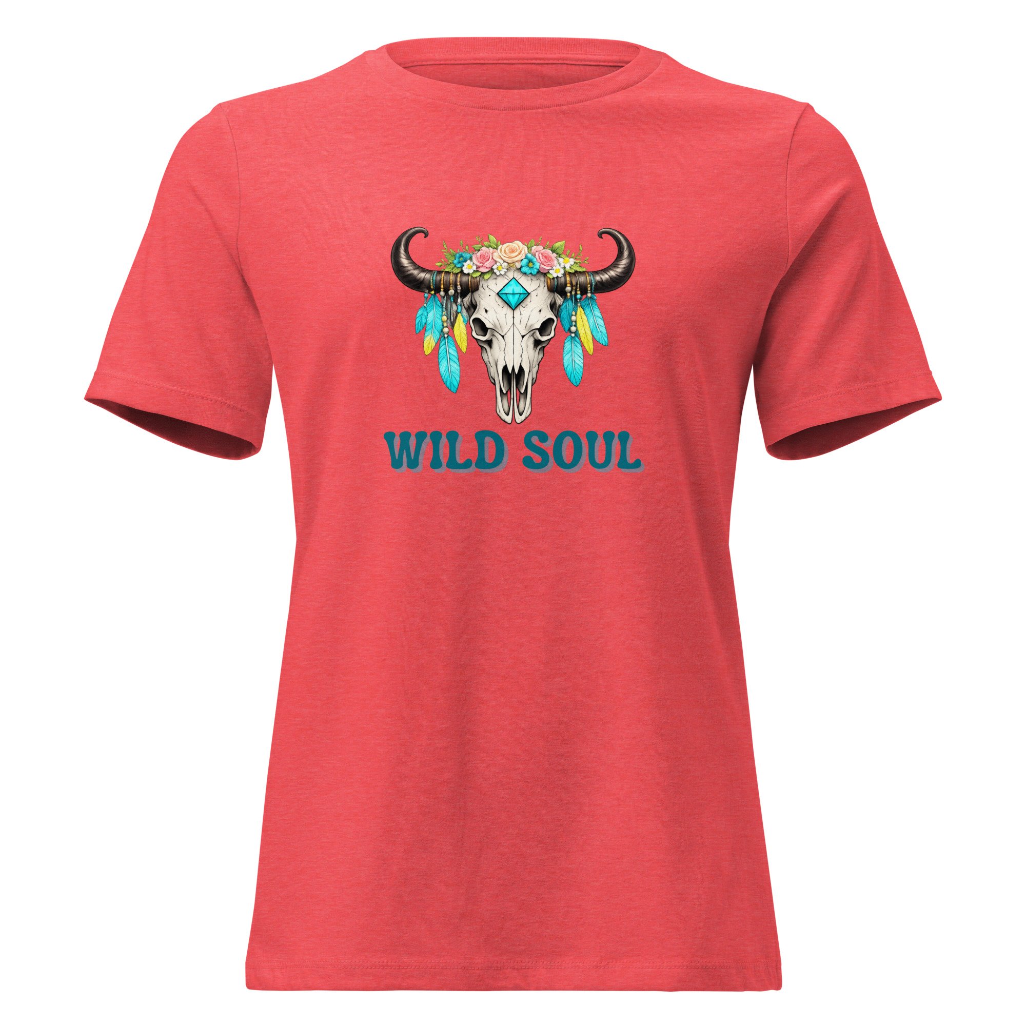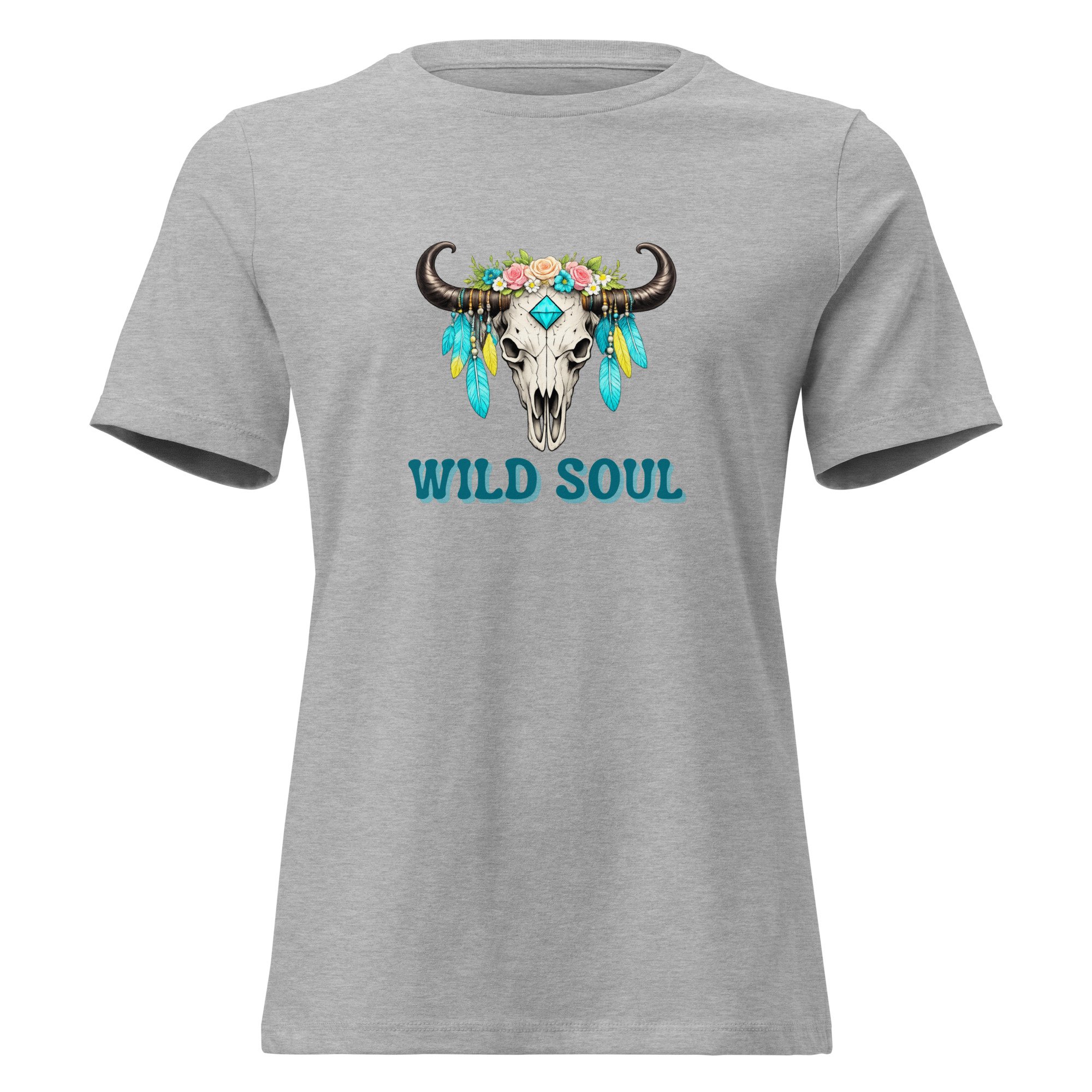 Women's Relaxed T-Shirt, Wild Soul Longhorn Skull tee