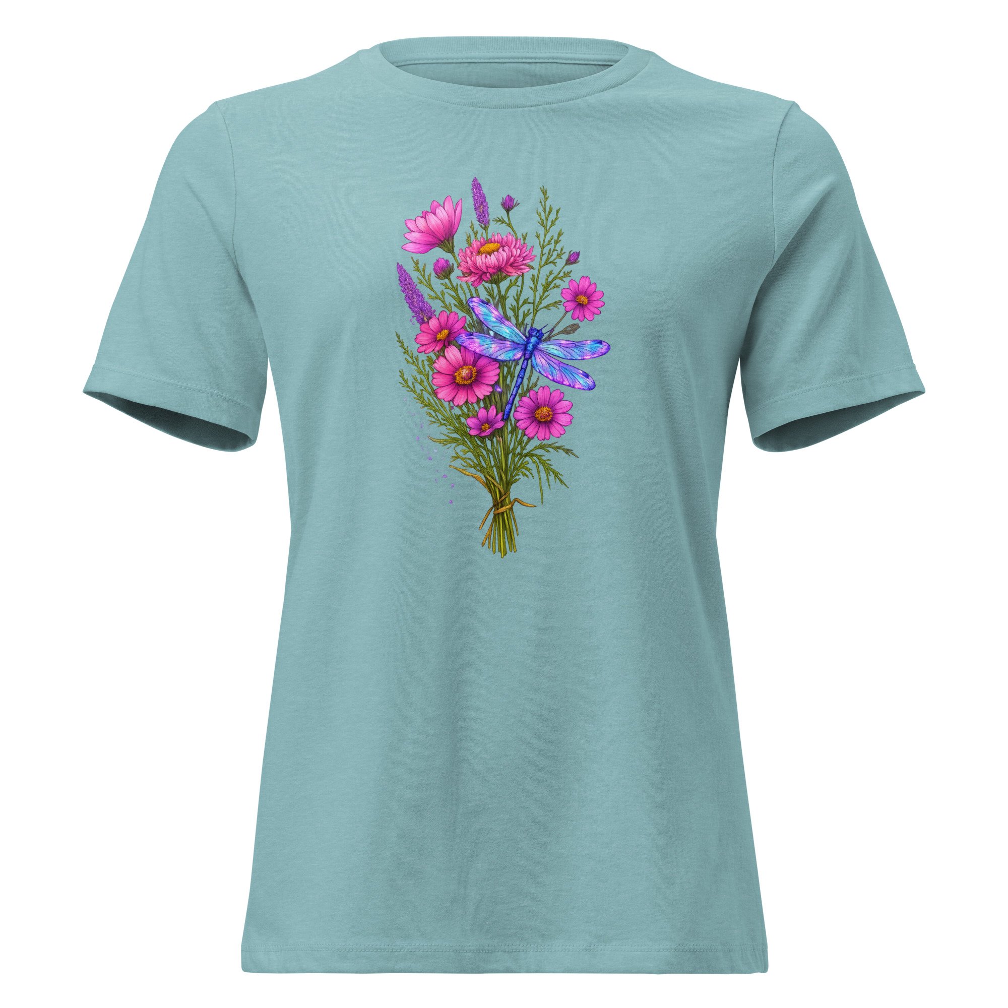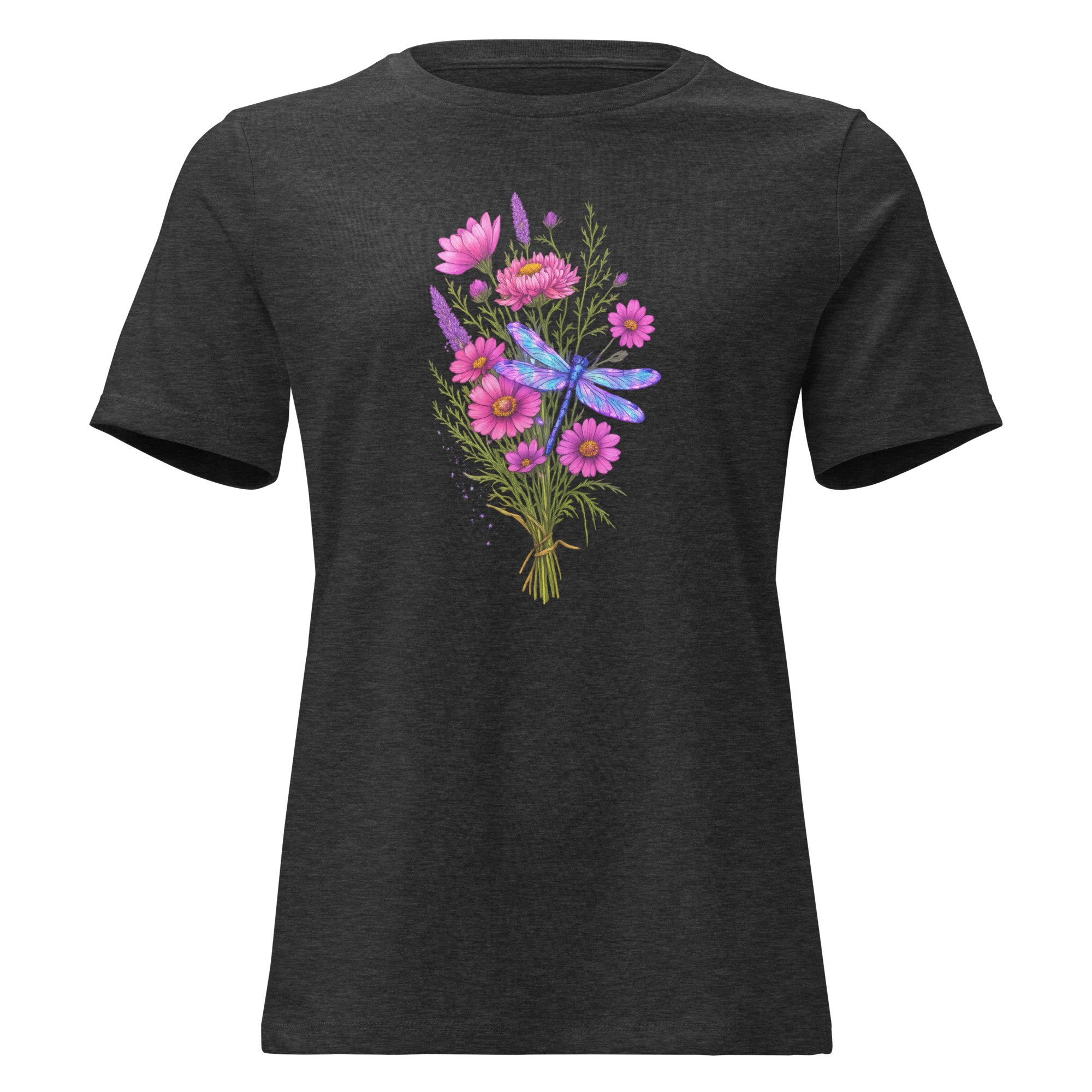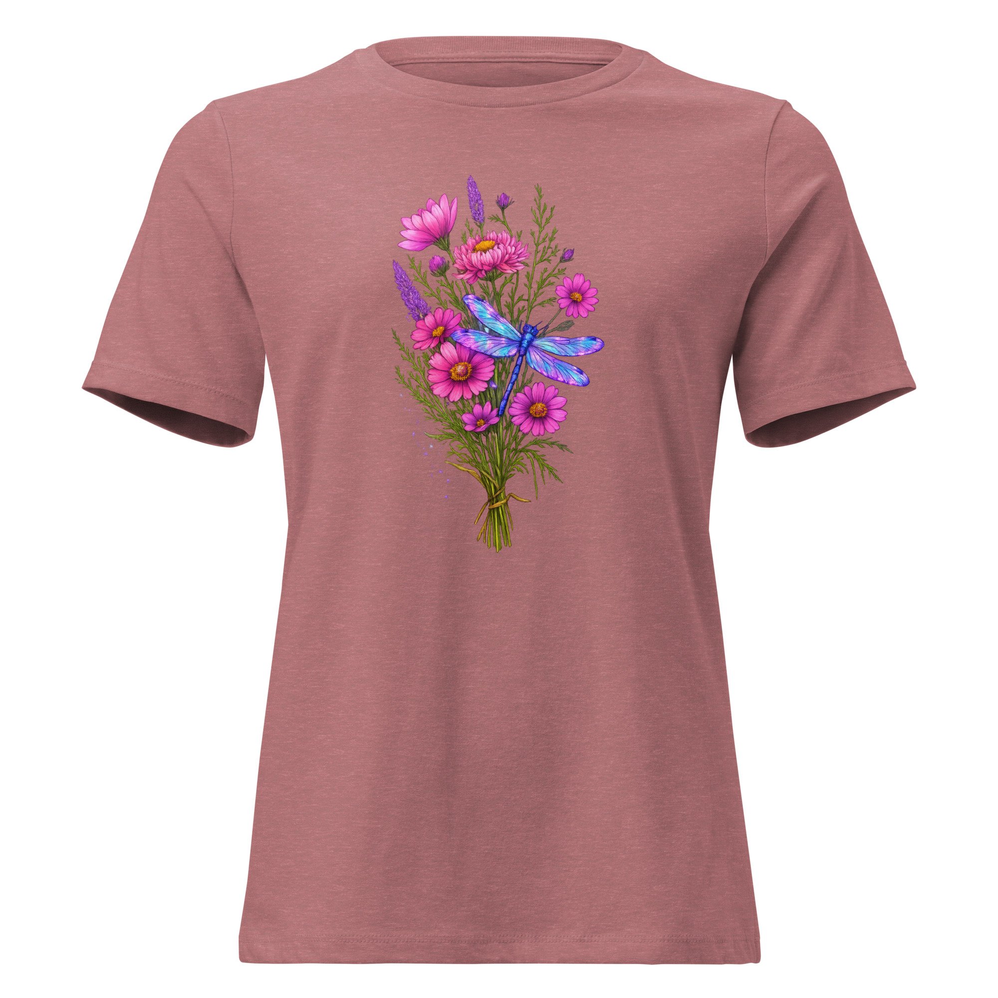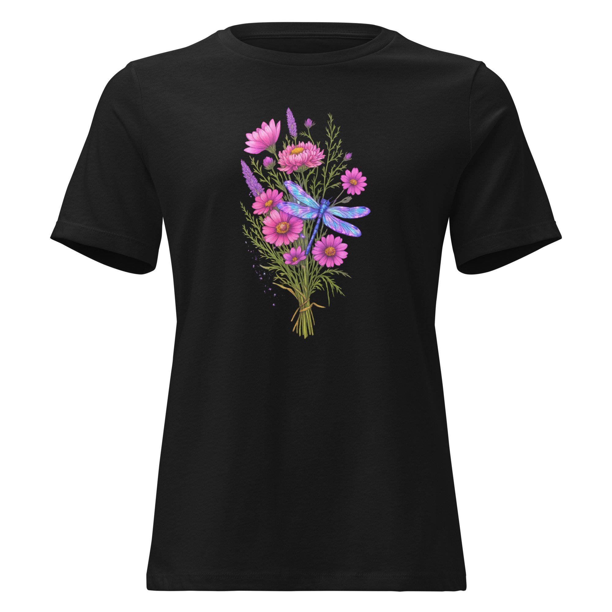Women's Relaxed T-Shirt, Dragonfly Wildflower Bouquet Tee