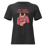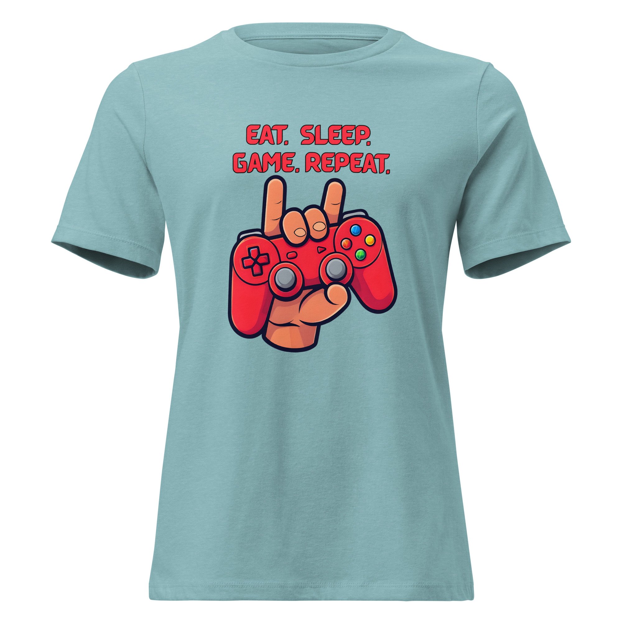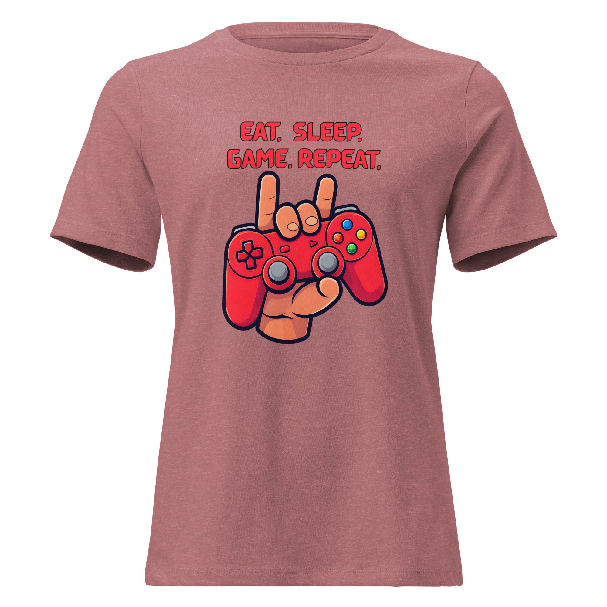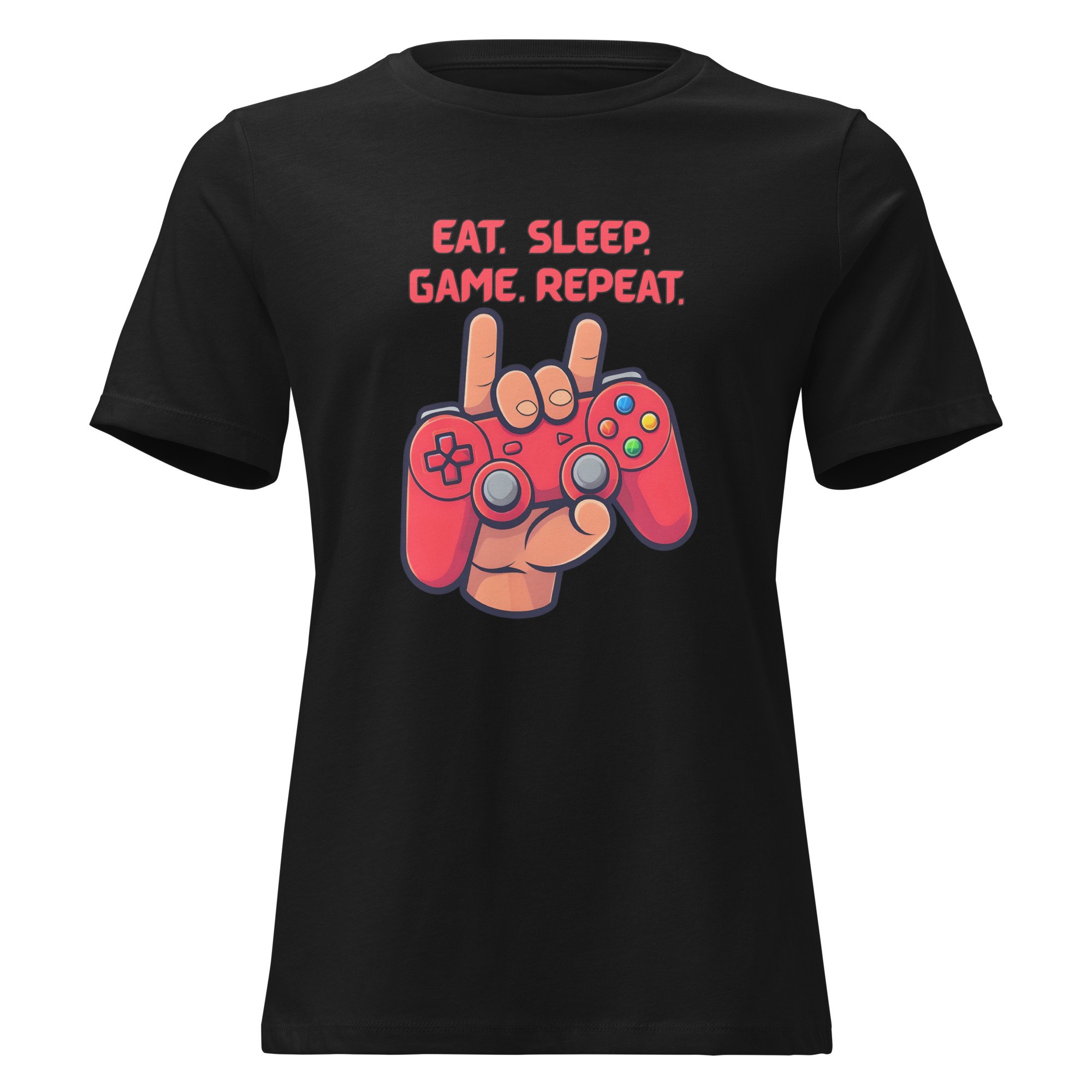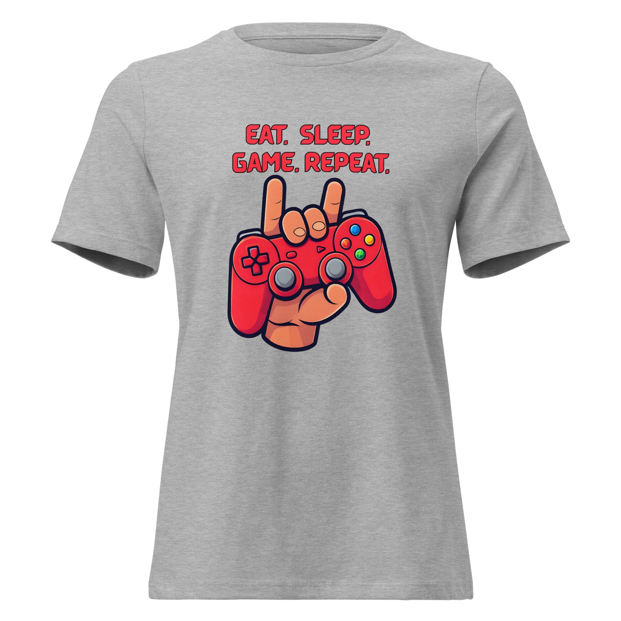 Women's Relaxed T-Shirt, Eat Sleep Game Repeat T-Shirt | Funny Gamer Graphic Tee