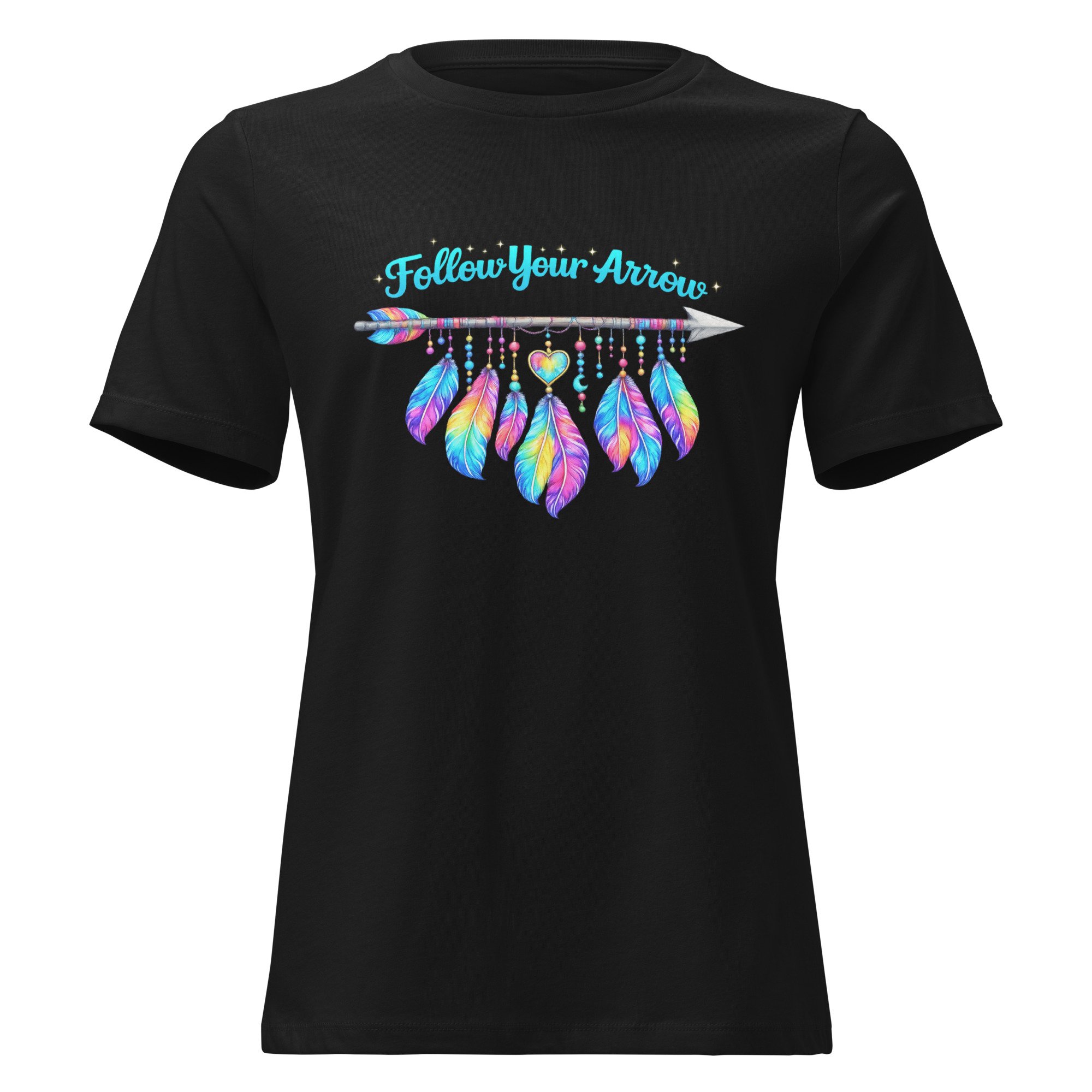 Women's Relaxed T-Shirt, Follow Your Arrow, Western, Boho, Feathers Tee