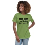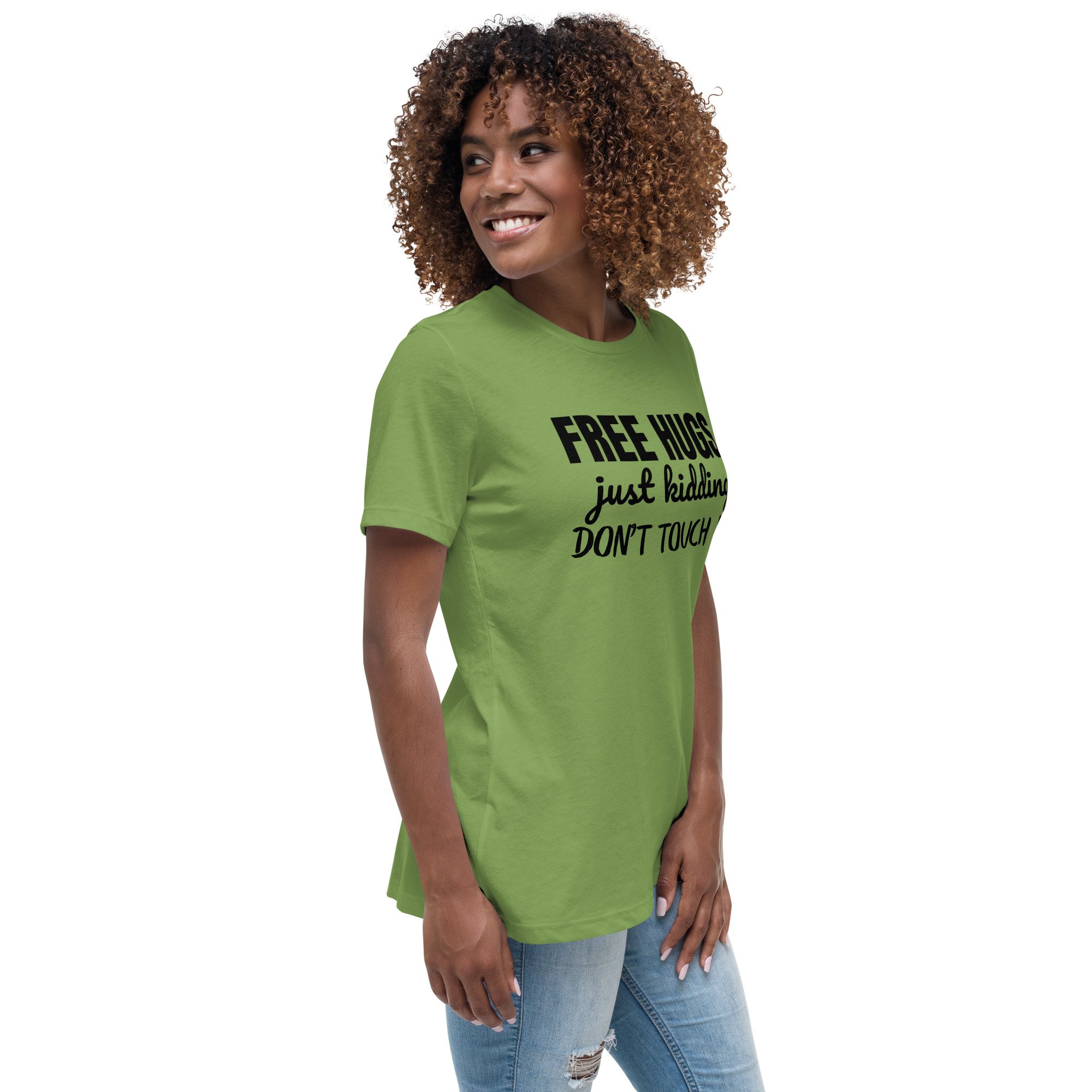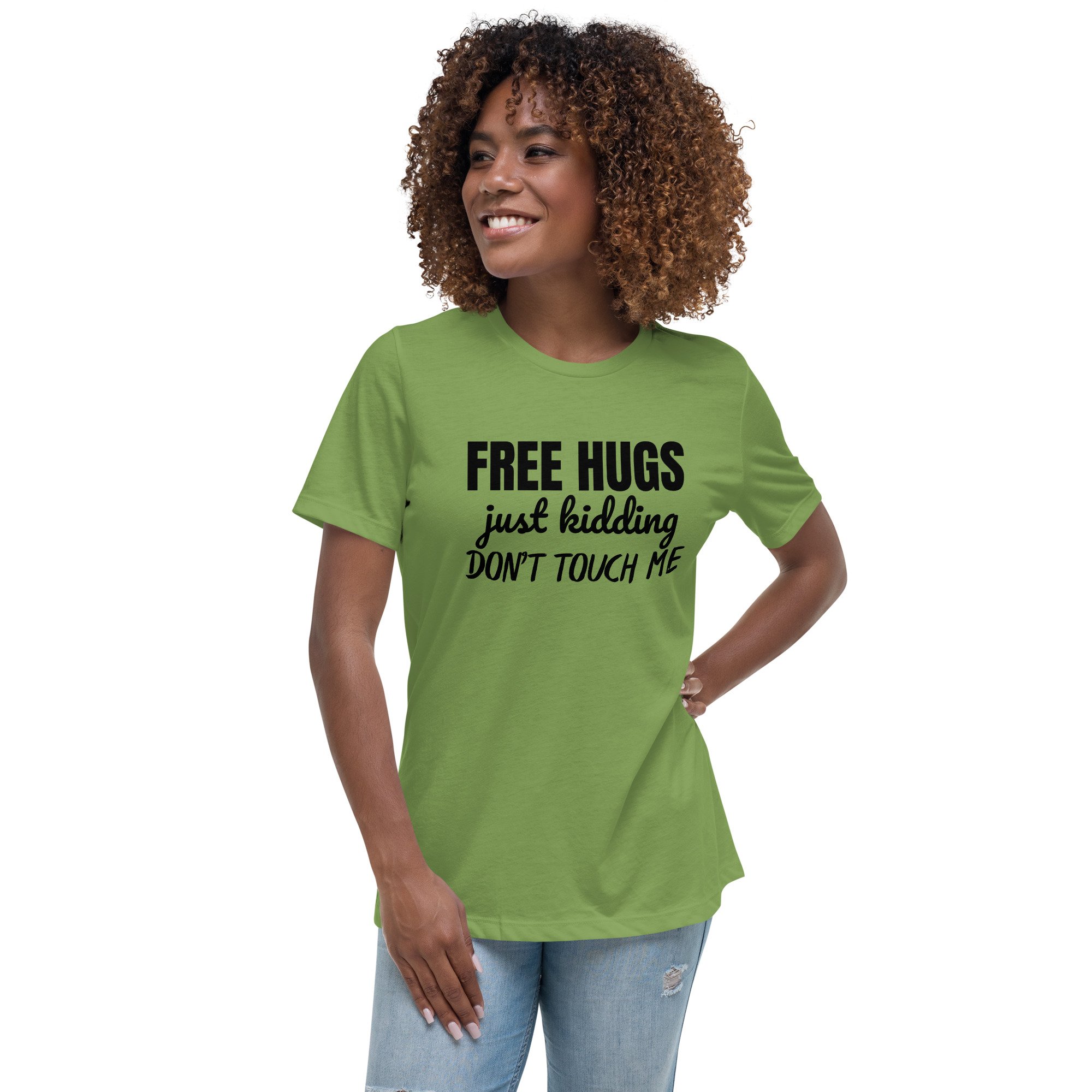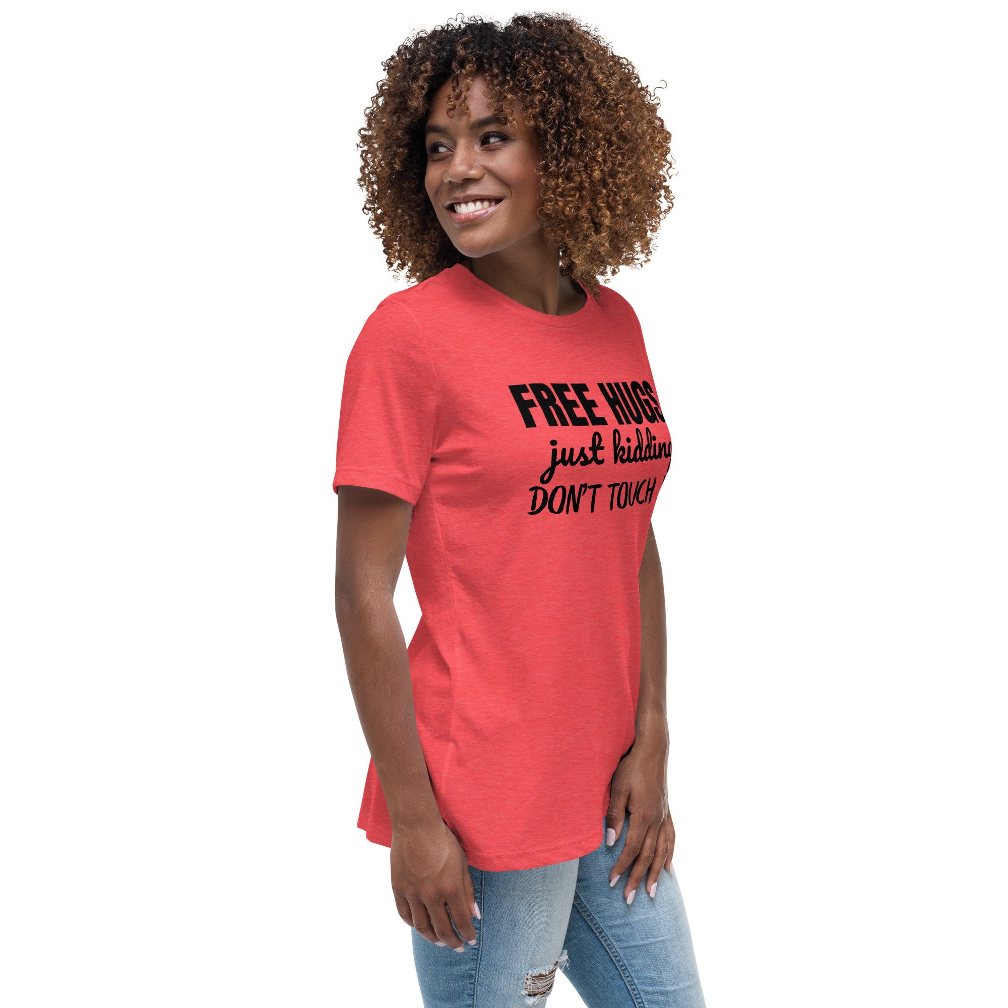 Women's Relaxed T-Shirt, Free Hugs Just Kidding Don’t Touch Me Shirt | Funny Anti Social Humor Tee
