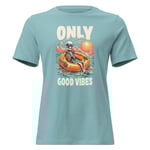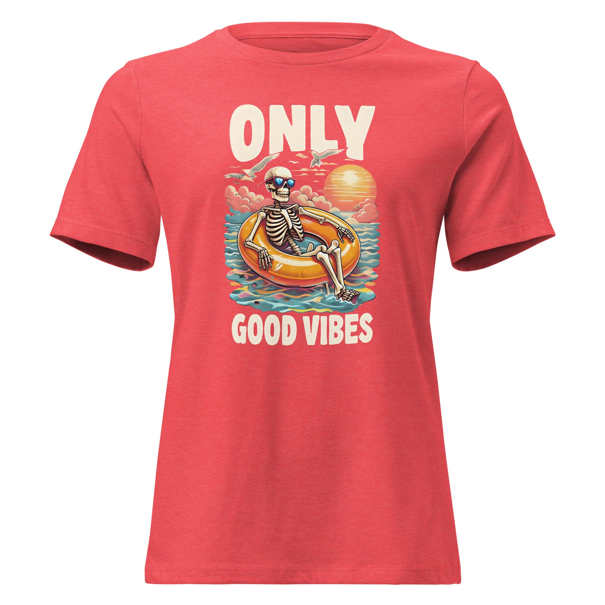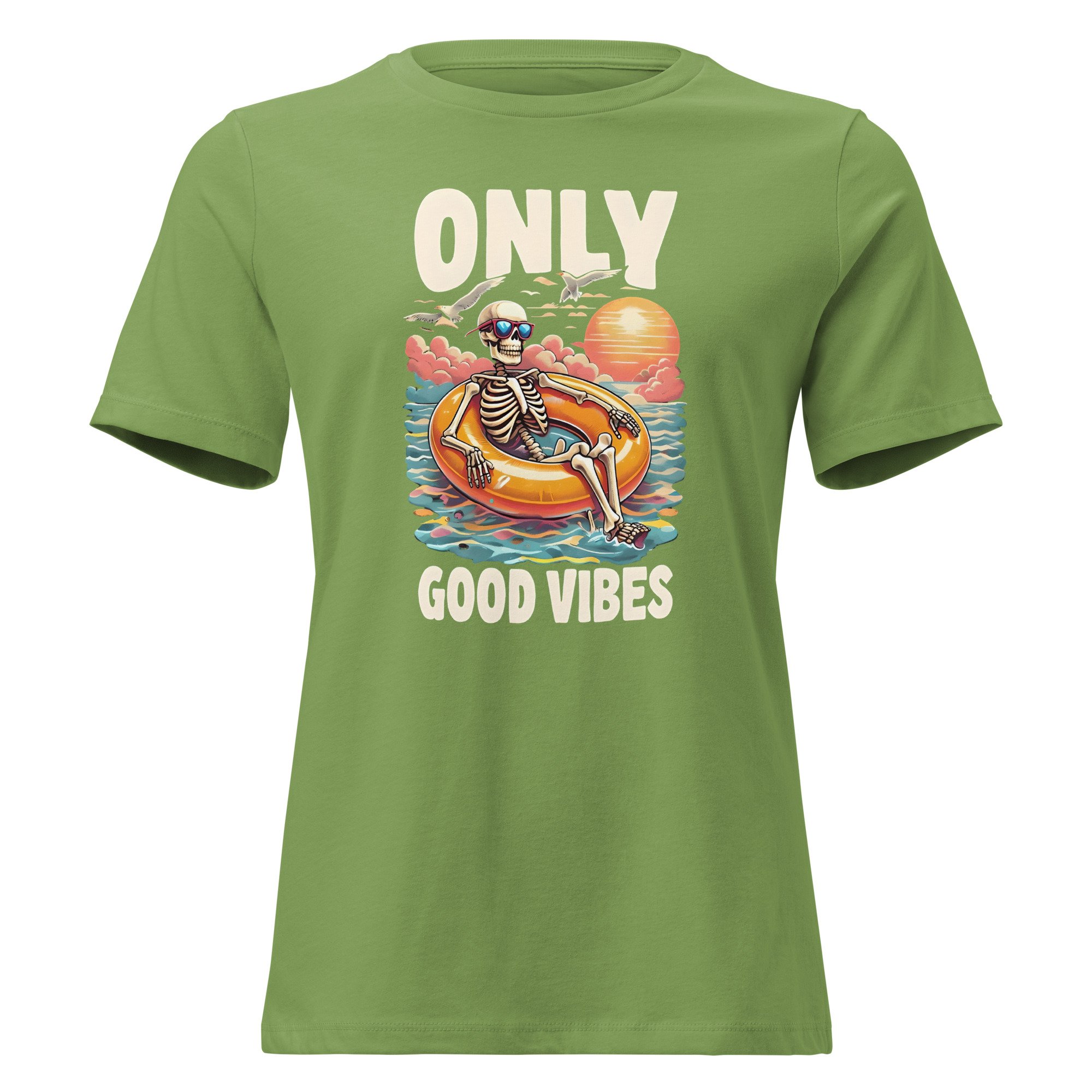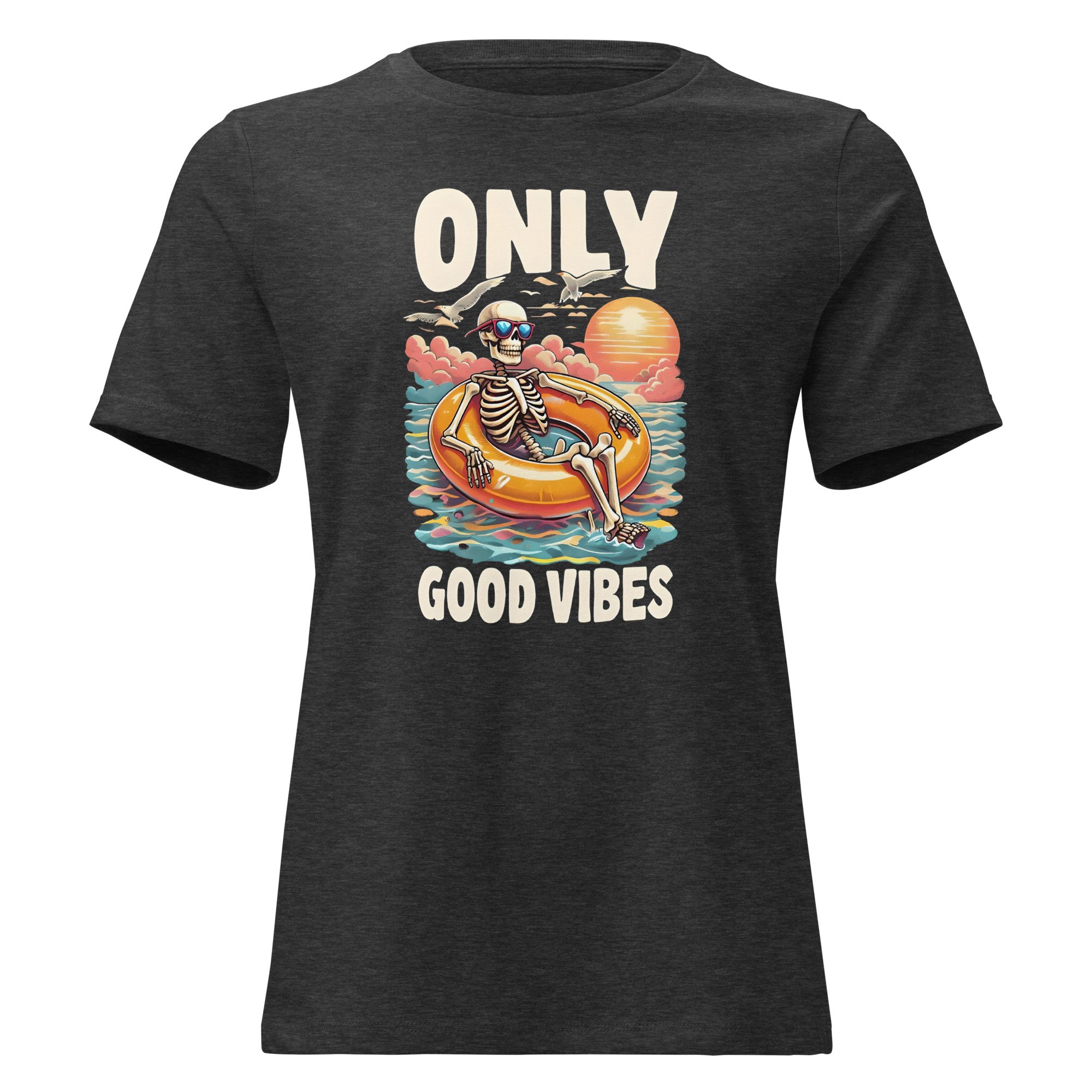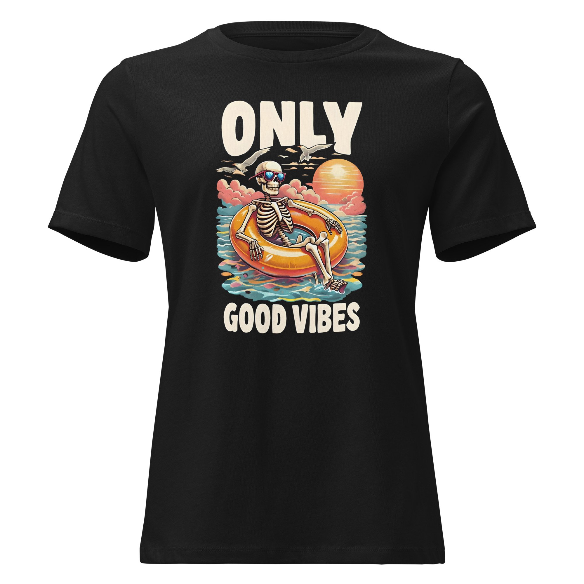Women's Relaxed T-Shirt, Good Vibes Skeleton Humor Tee