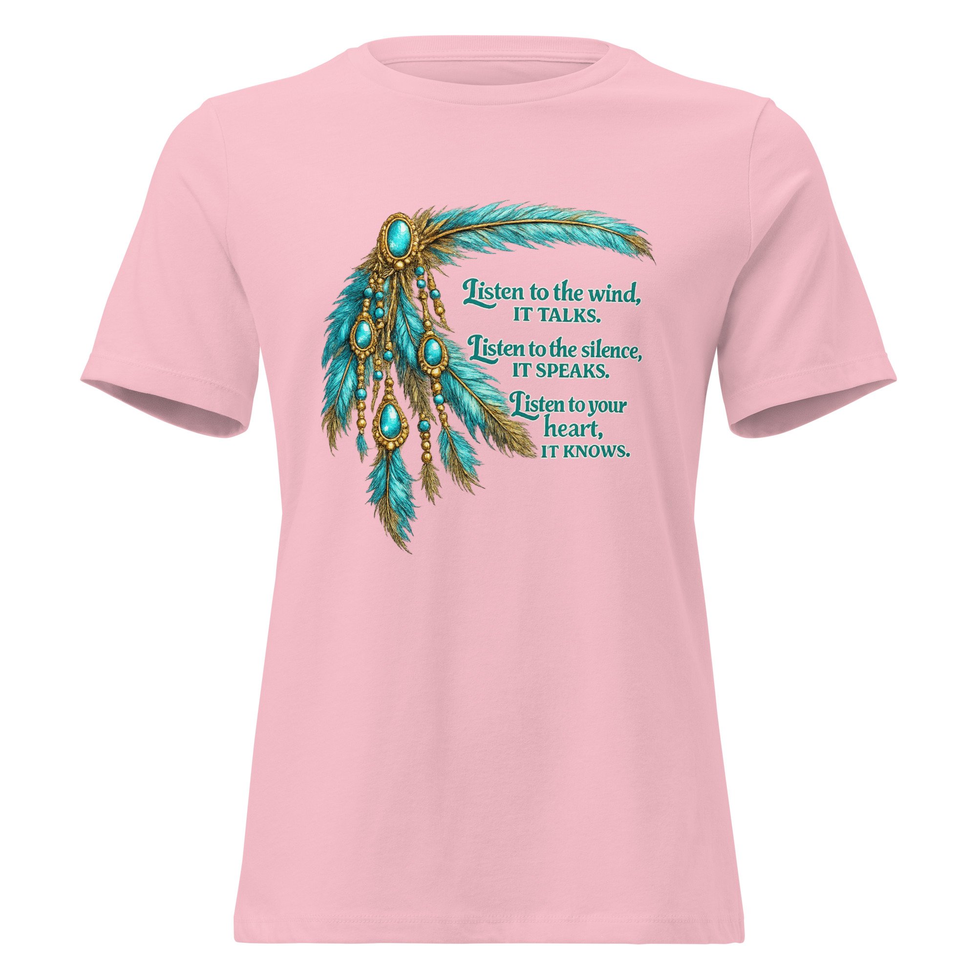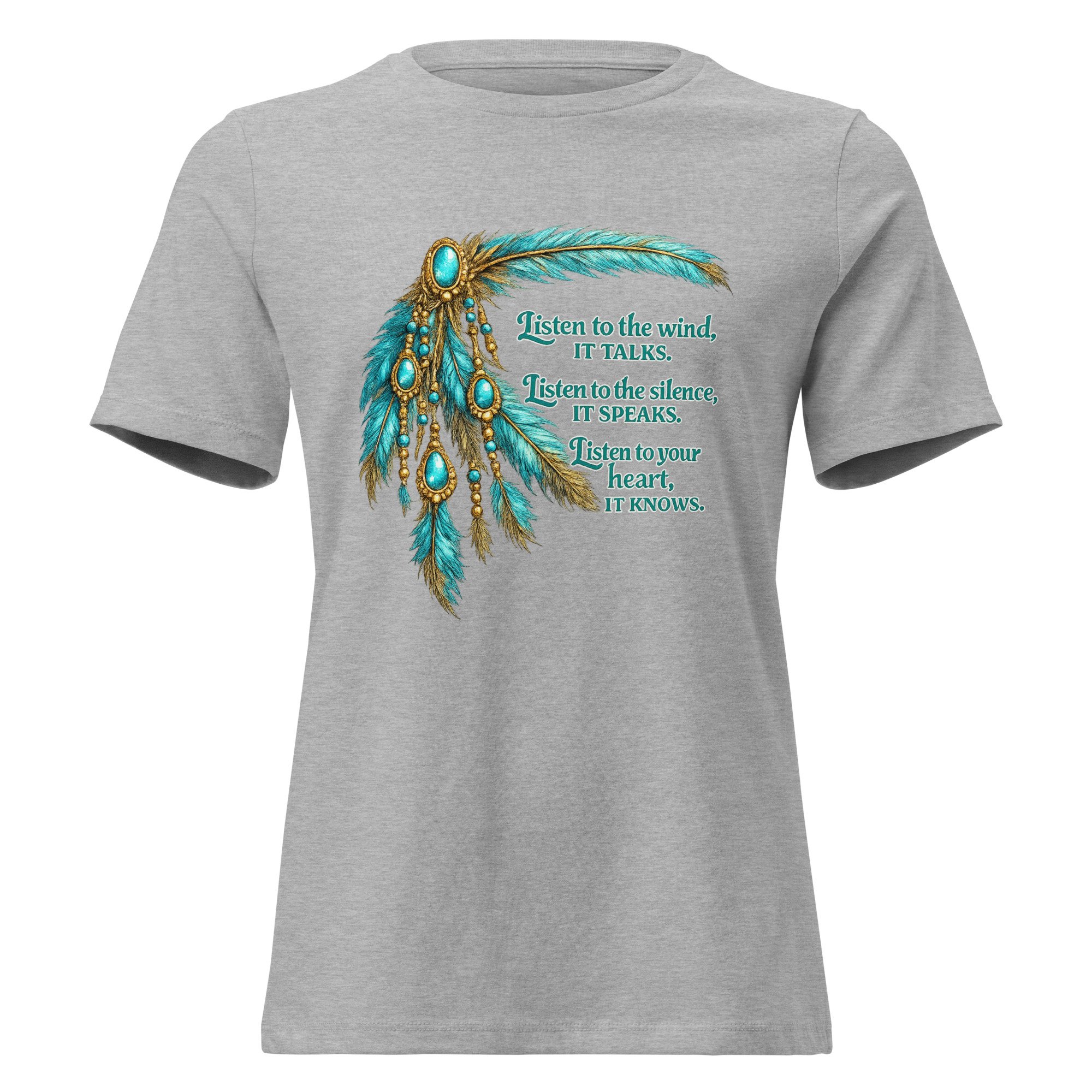 Listen to the Wind It Talks Feather Women's Tee – Turquoise Western Boho Inspirational Cowgirl Shirt