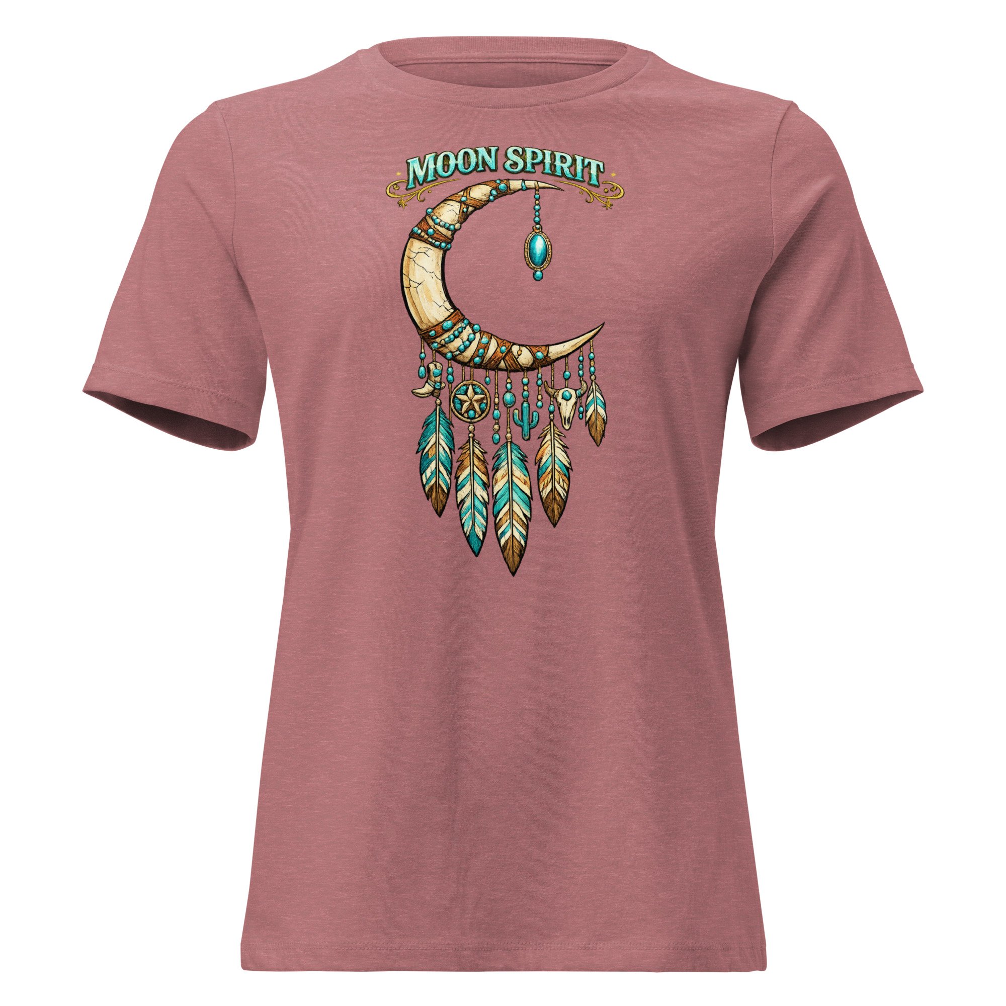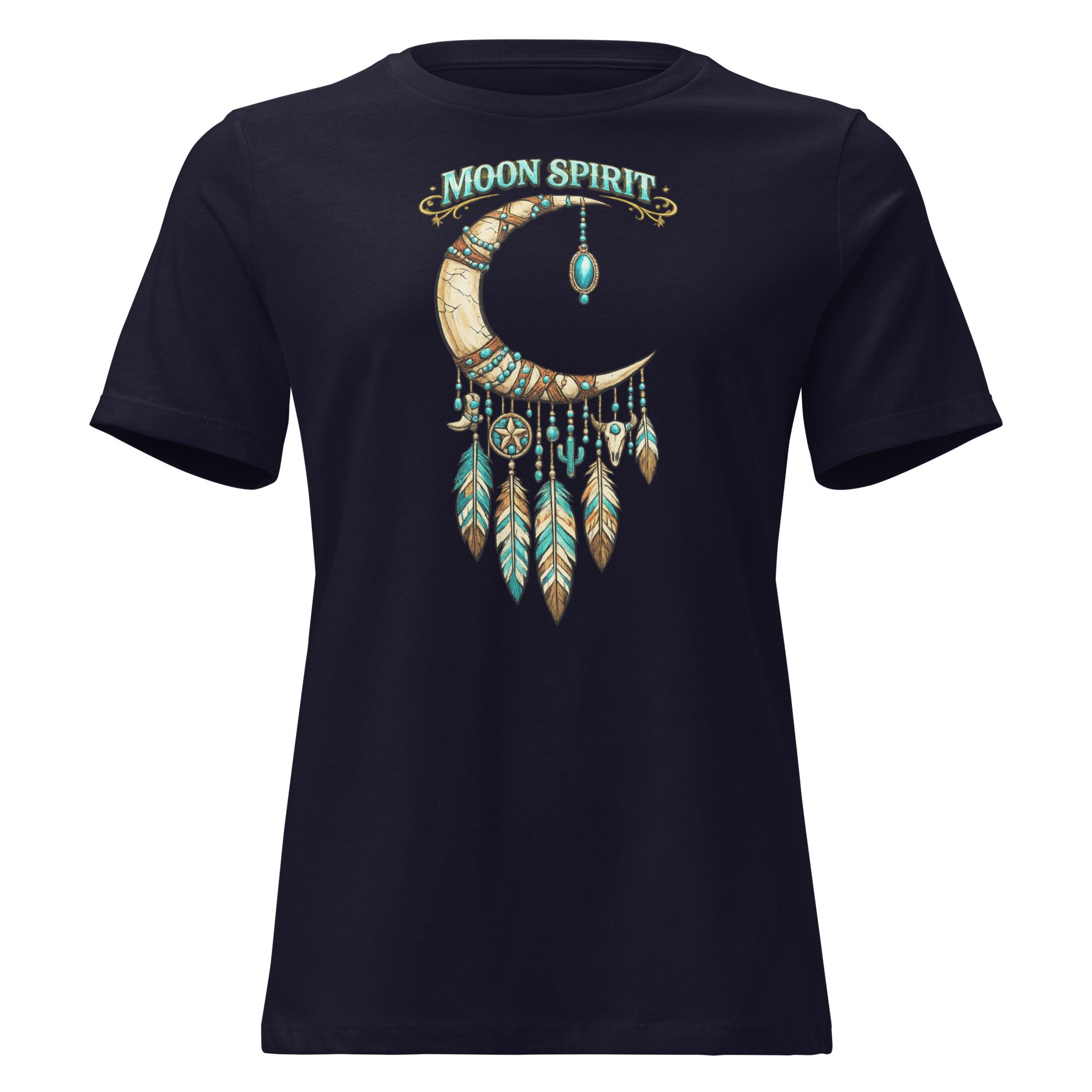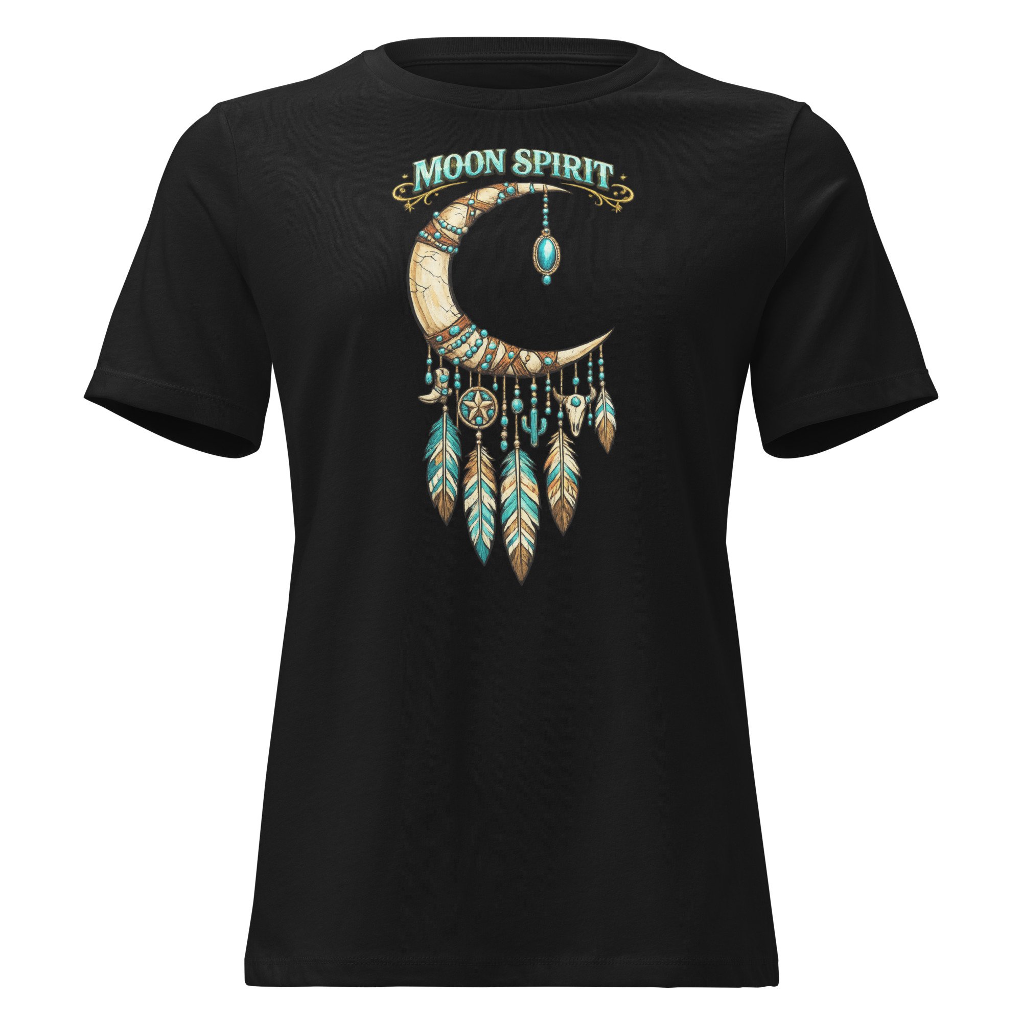 Moon Spirit Cowgirl Women’s Western Tee – Turquoise Feather Crescent Moon Boho Cowgirl Shirt