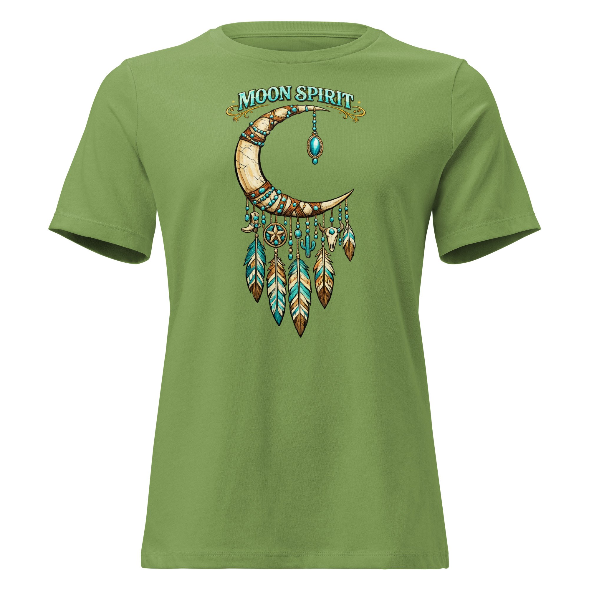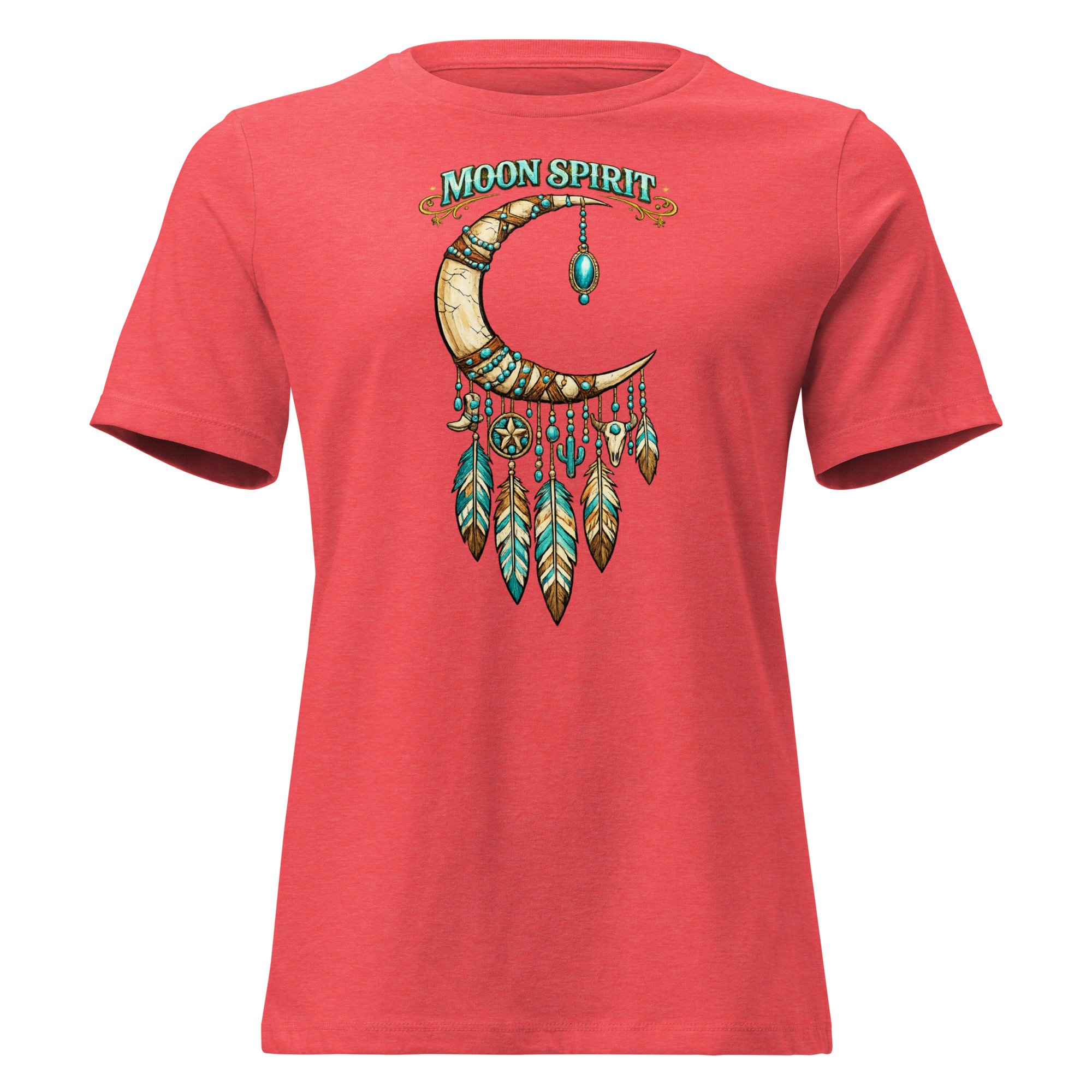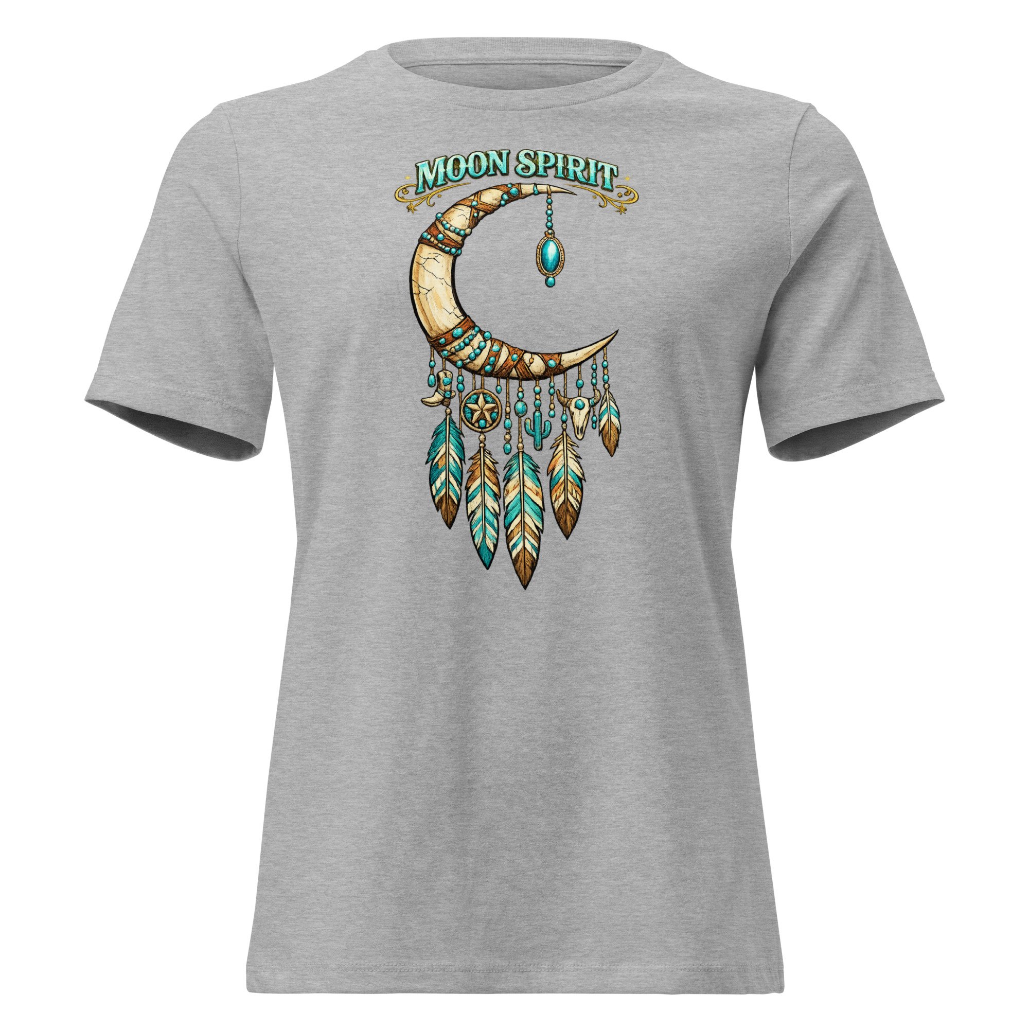 Moon Spirit Cowgirl Women’s Western Tee – Turquoise Feather Crescent Moon Boho Cowgirl Shirt