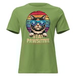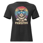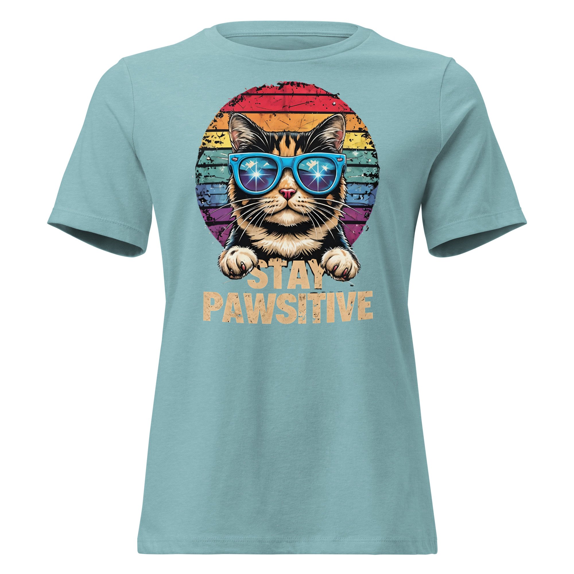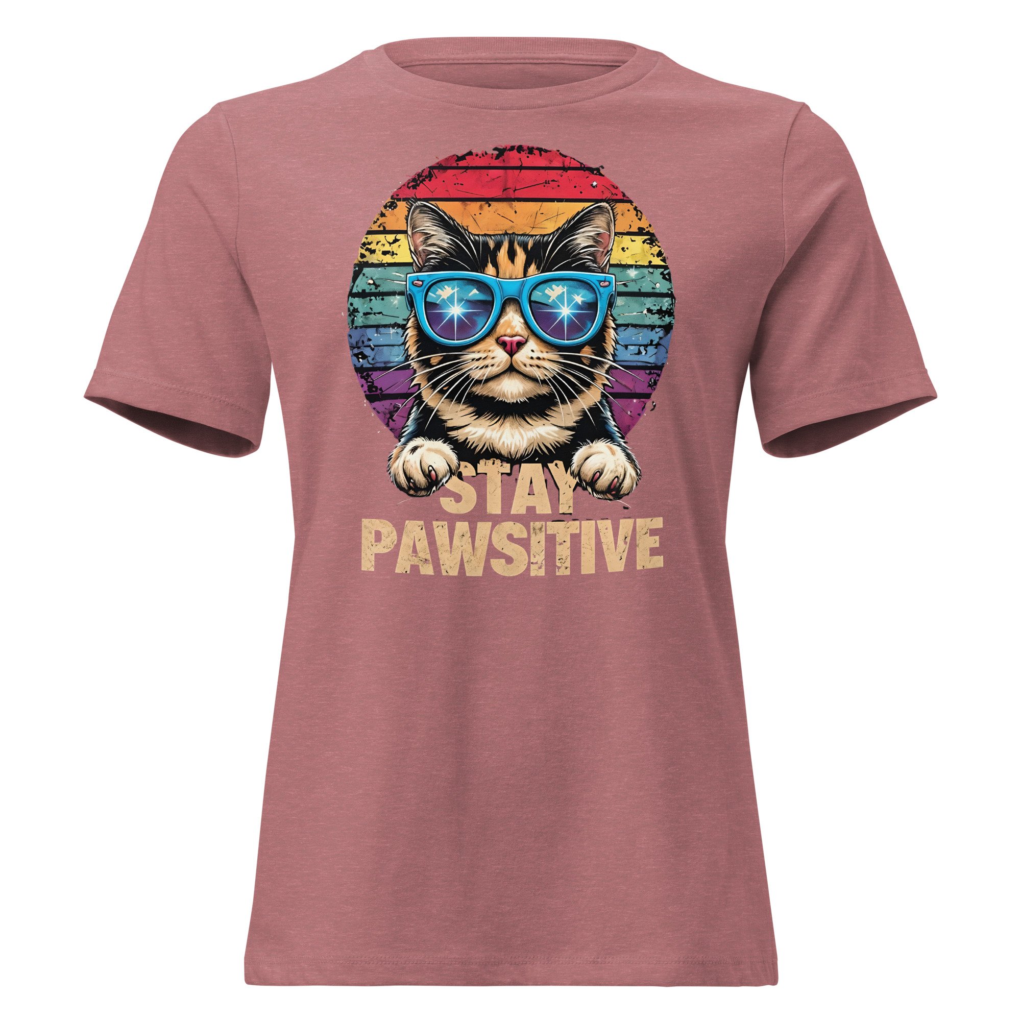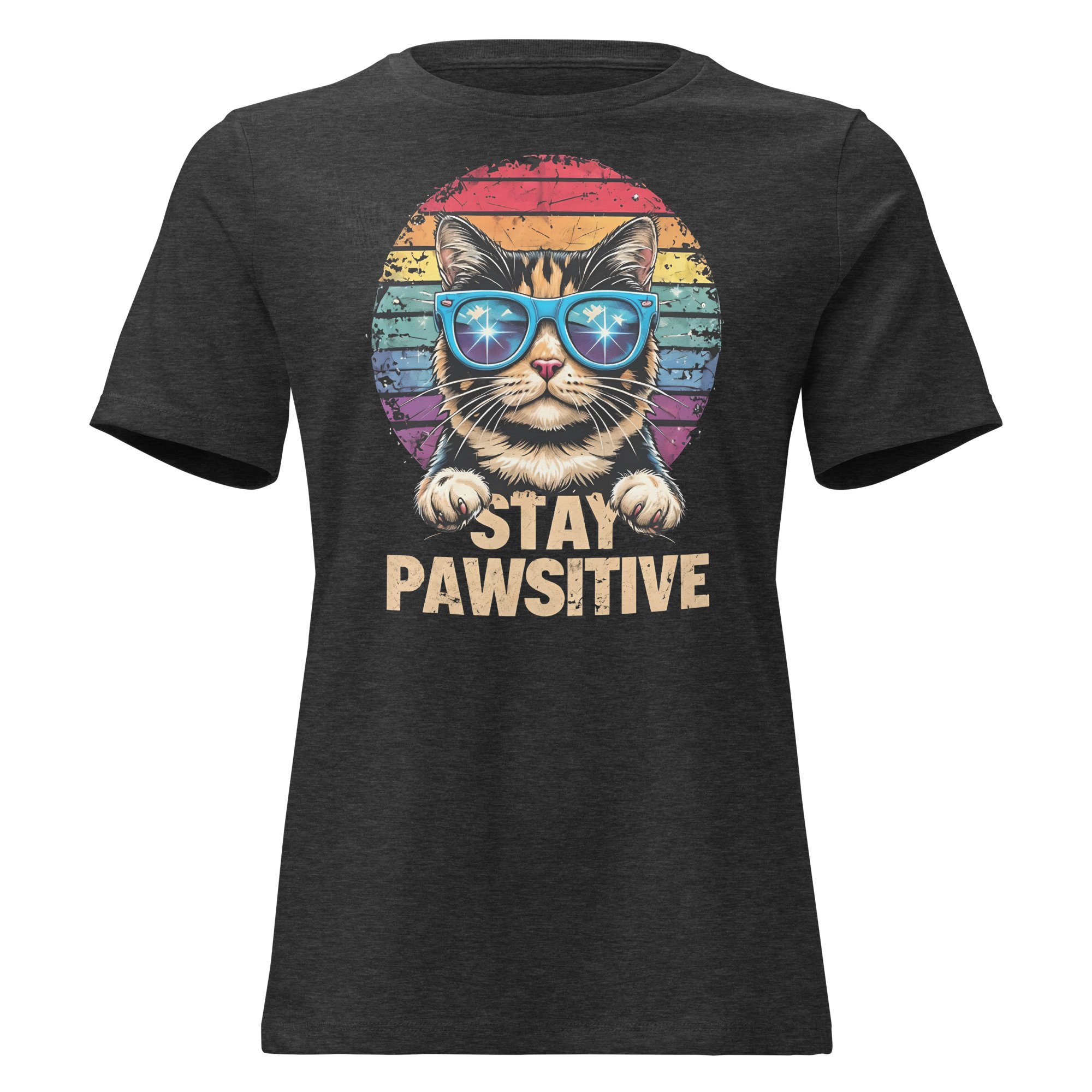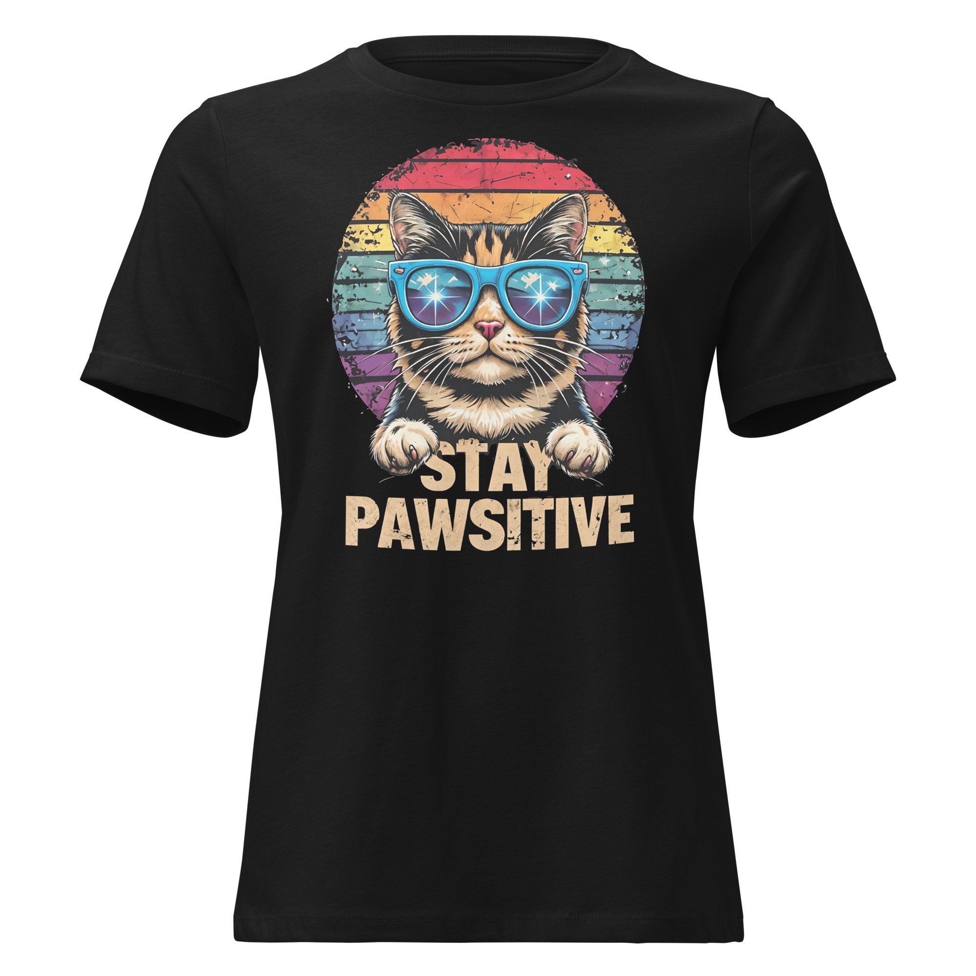 Stay Pawsitive Cat Women's Shirt – Cute Retro Cat Graphic Tee | Positive Cat Lover Shirt
