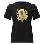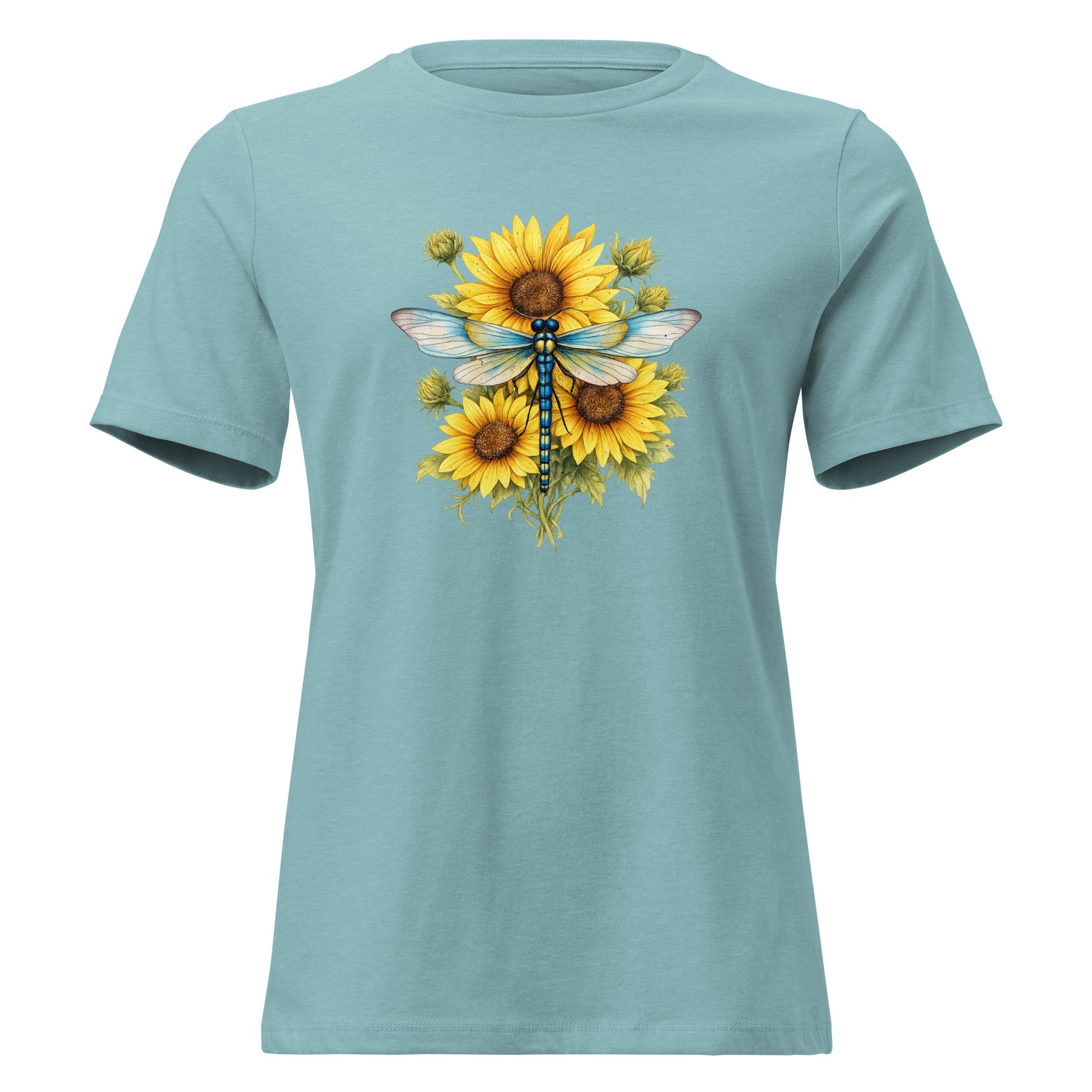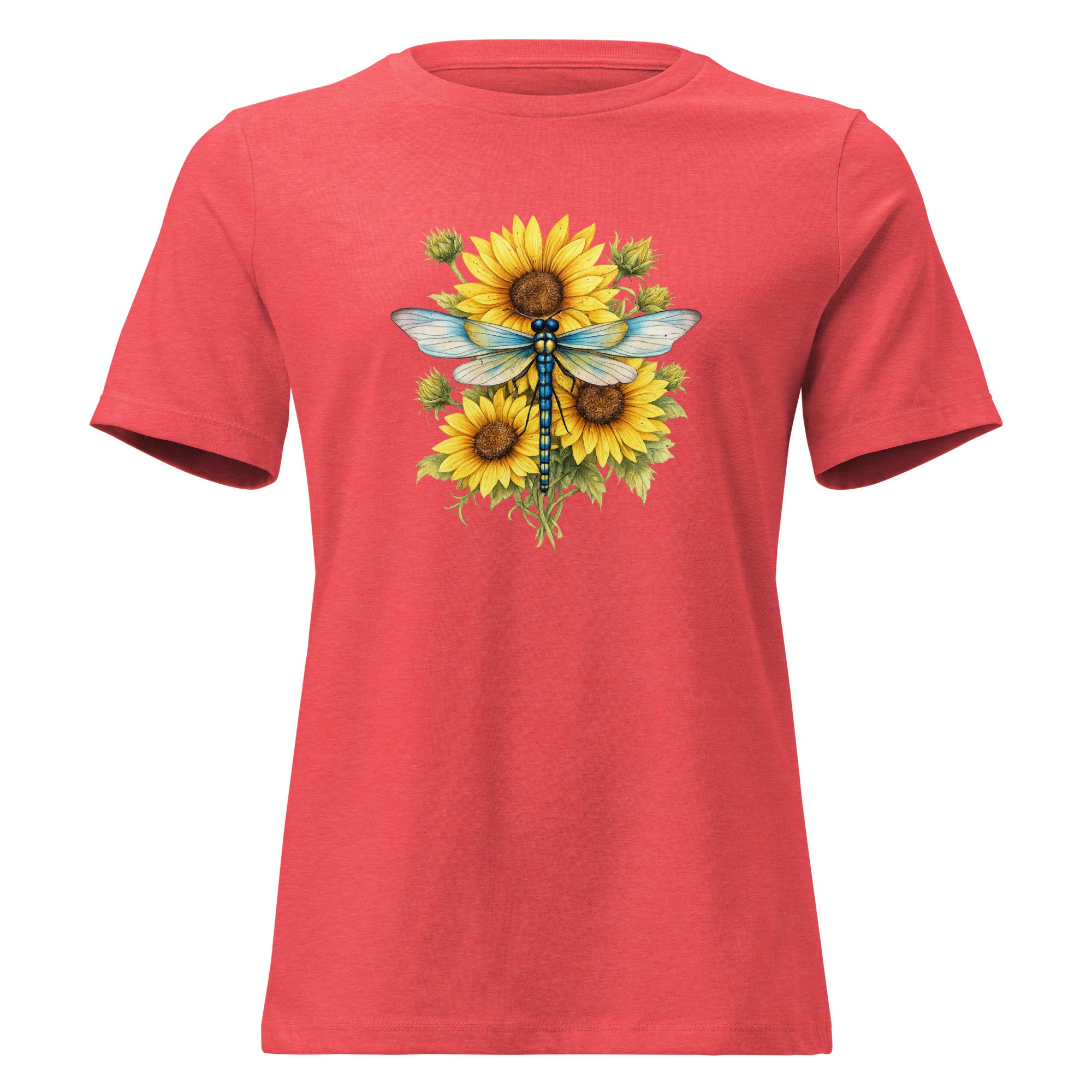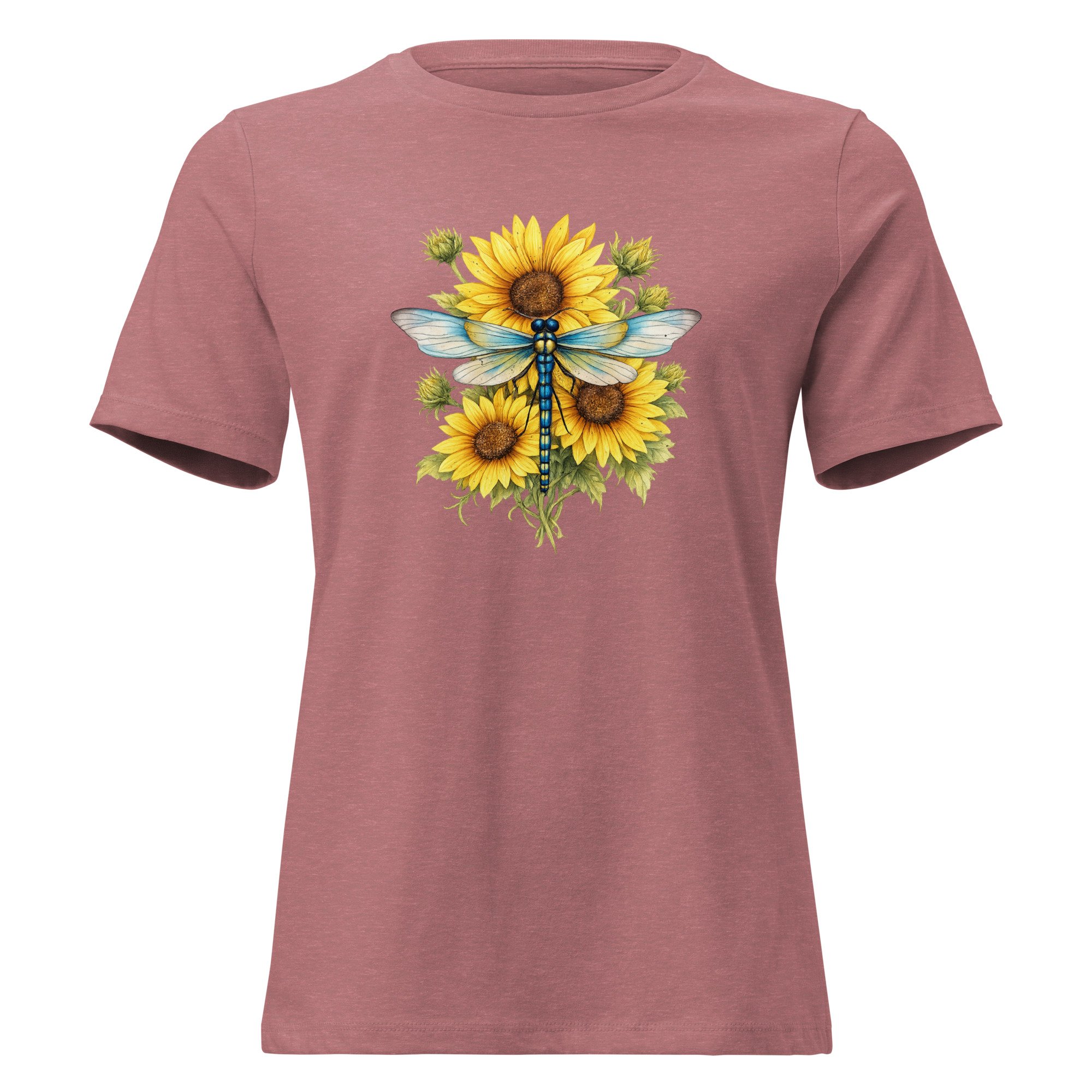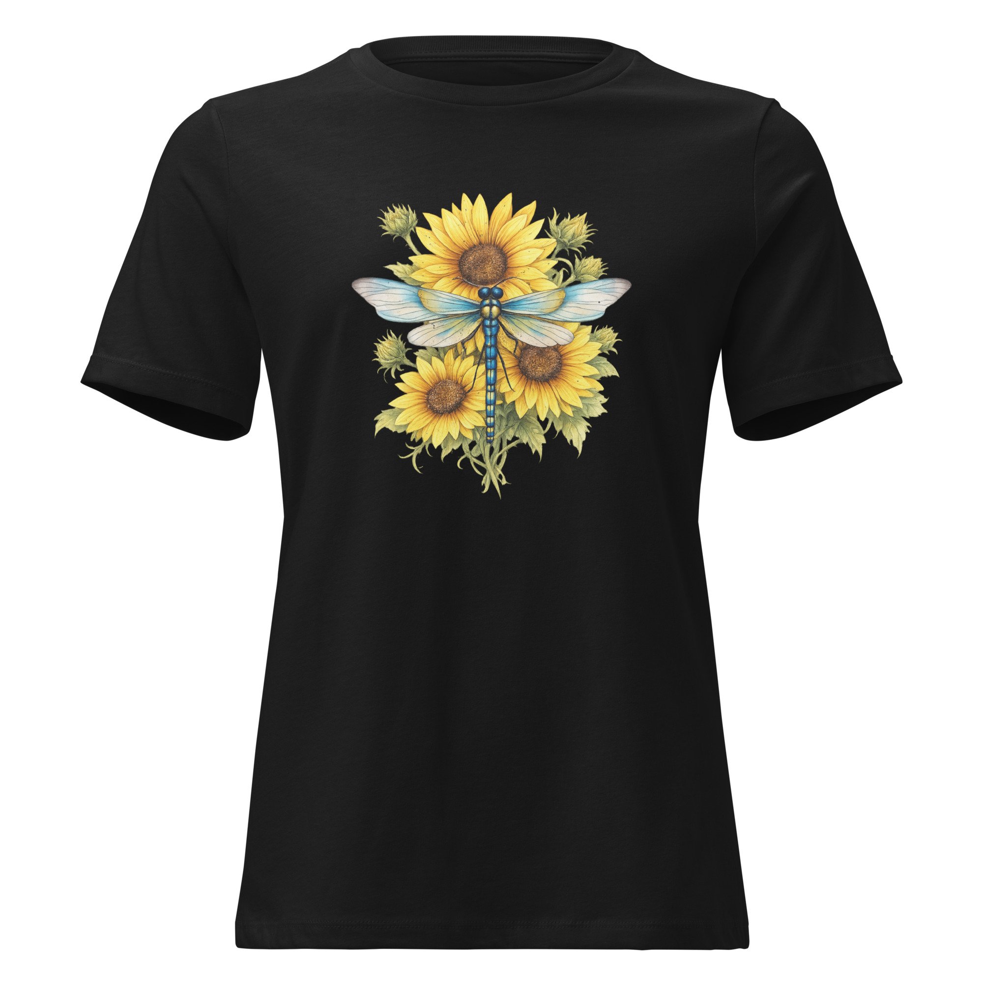 Women's Relaxed T-Shirt, Sunflower Dragonfly Bouquet Tee